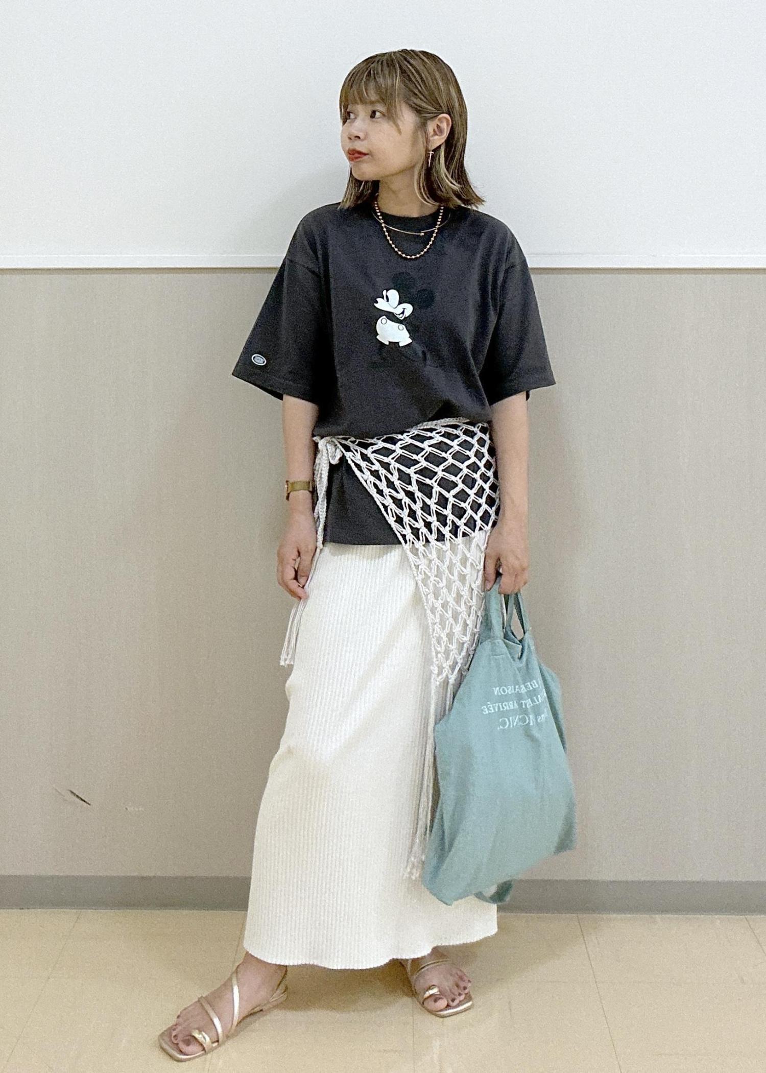 ミッキーのTシャツをメインにモノトーンカラーで大人っぽくまとめました。