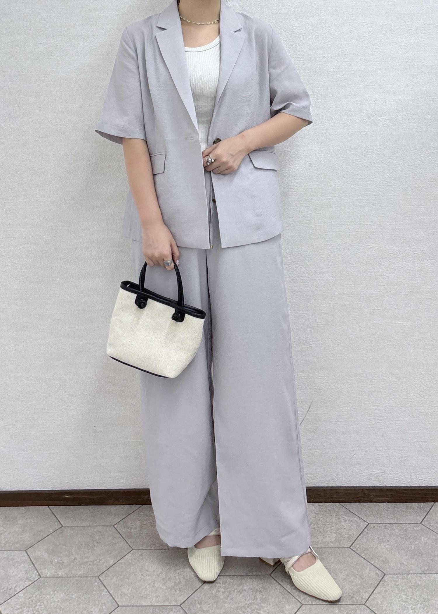 ・程よいシボのある素材なのできれい目過ぎないのもポイント。