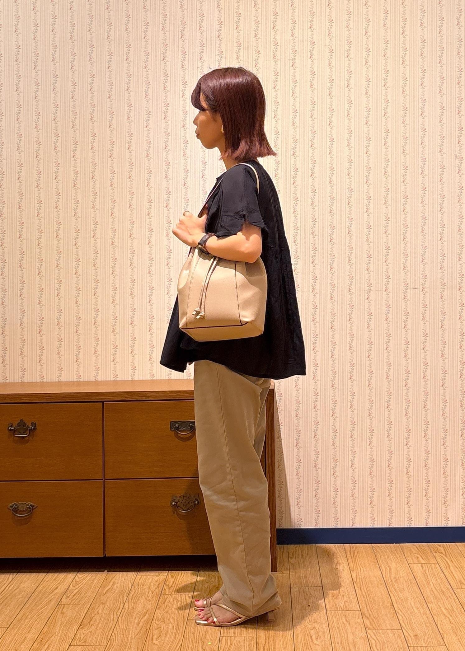 ミドルサイズで大きすぎず、500mlのペットボトル、長財布も入る大きさです。 -