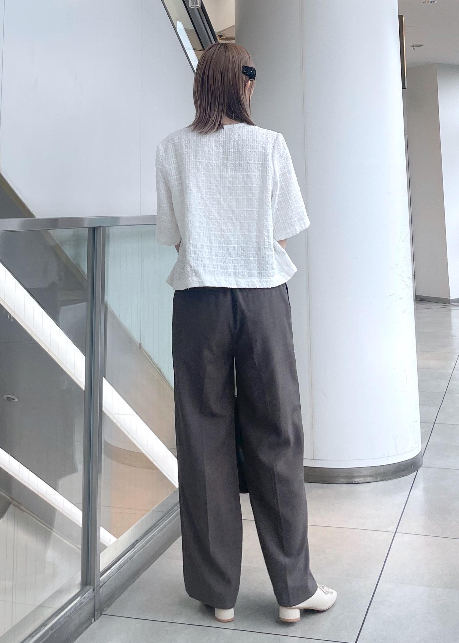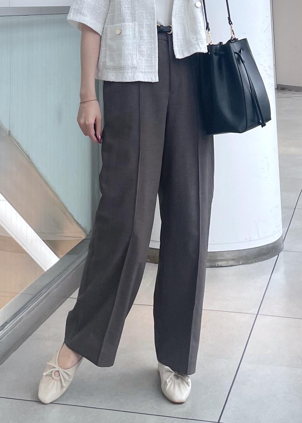 アウトレットROPÉ PICNIC【UVカット・速乾】【リネンライク・シリーズ】ピンタックワイドスラックスパンツ/セットアップ対応ダークブラウン / 36¥3,993レビュー裏地は中間くらいまで付いており、涼しく着られます。センターシームが入っており足がまっすぐ長く見えます。ワイドストレートなので、腰周りはコンパクトめなシルエット。