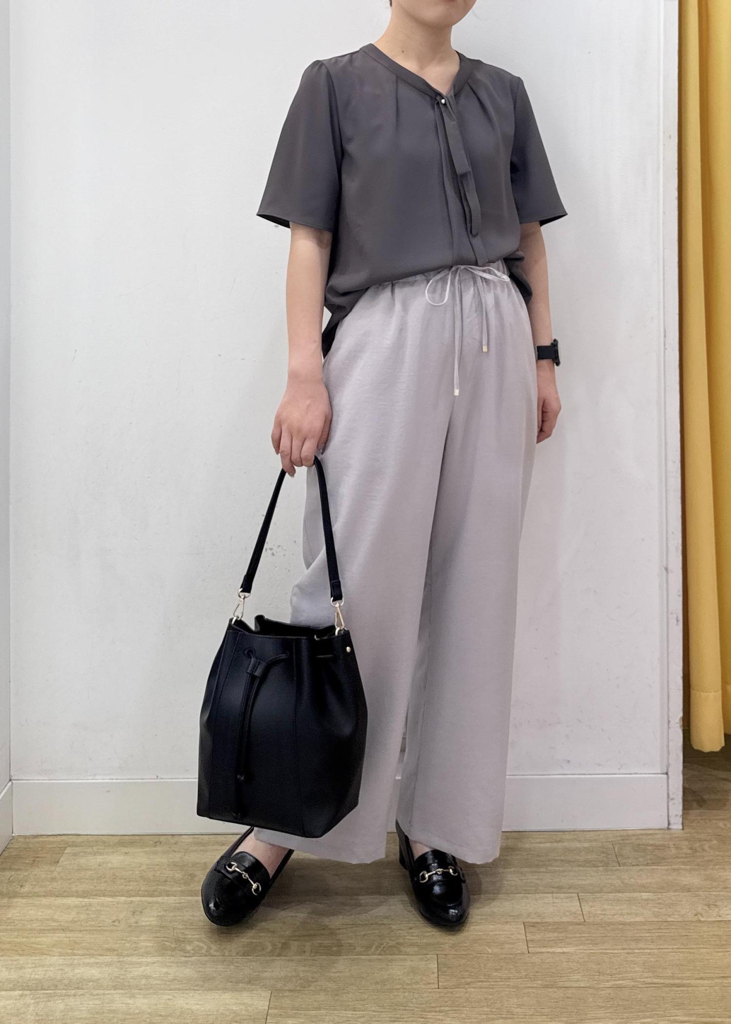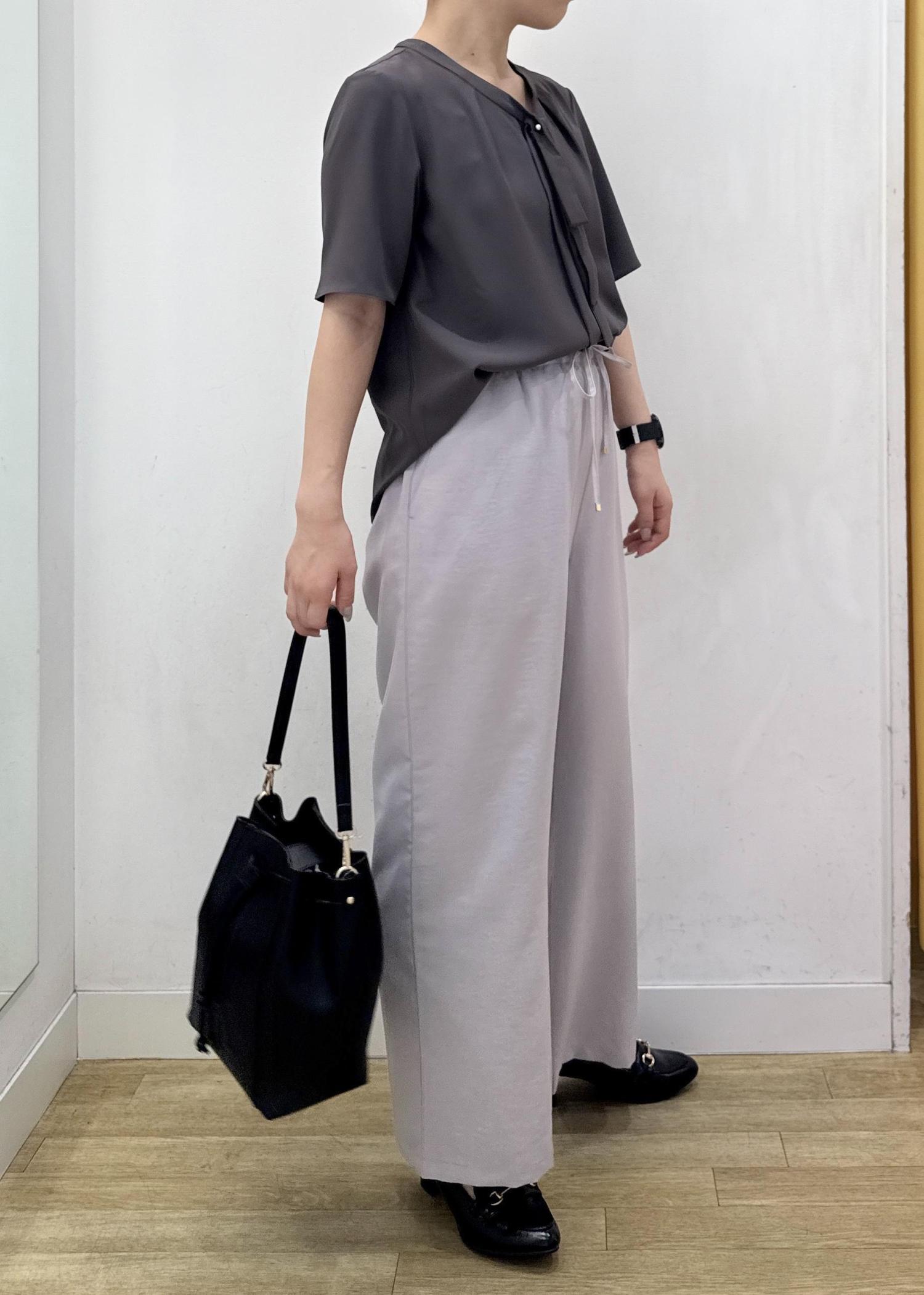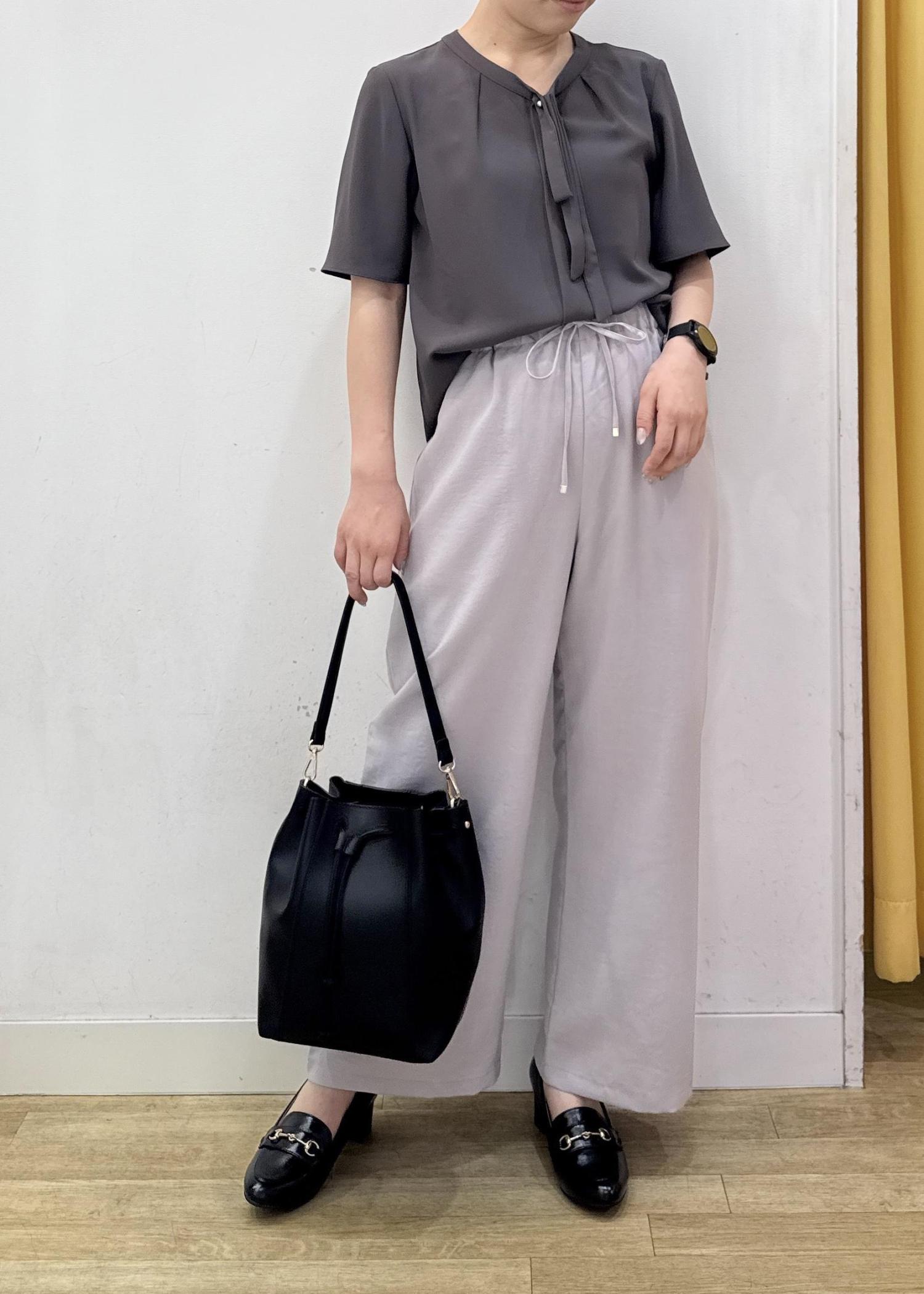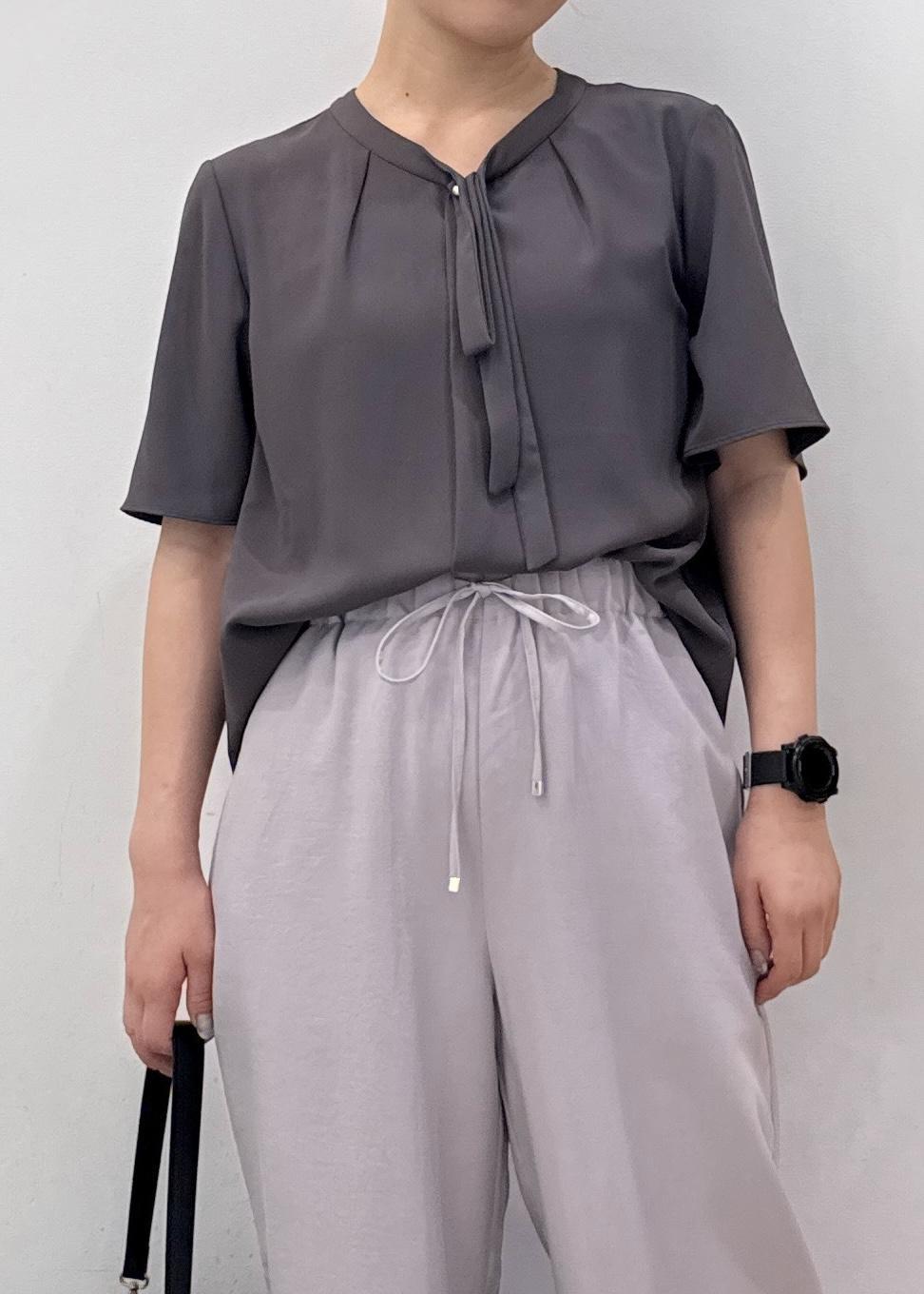 ROPÉ PICNIC2サイズ展開/メタルボタンリボンタイハーフスリーブブラウス/通勤対応チャコール / 36¥4,389レビュー36サイズで肩まわりはジャストサイズ、身幅は身体のラインを拾い過ぎない少しゆとりのあるサイズ感で着られました。