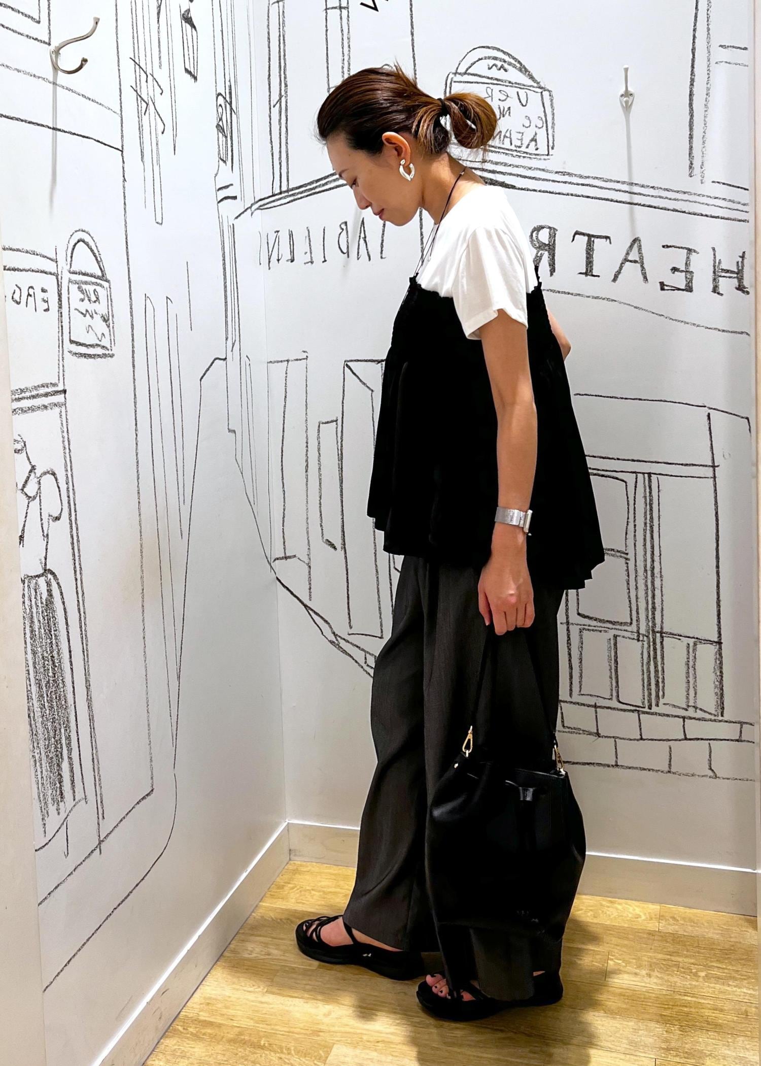 ROPÉ PICNICテンセルシャンブレータックワイドスラックス/通勤対応ブラック / 40¥6,490レビュー光沢感がありセンタープレスでキレイめカジュアルにぴったりです。