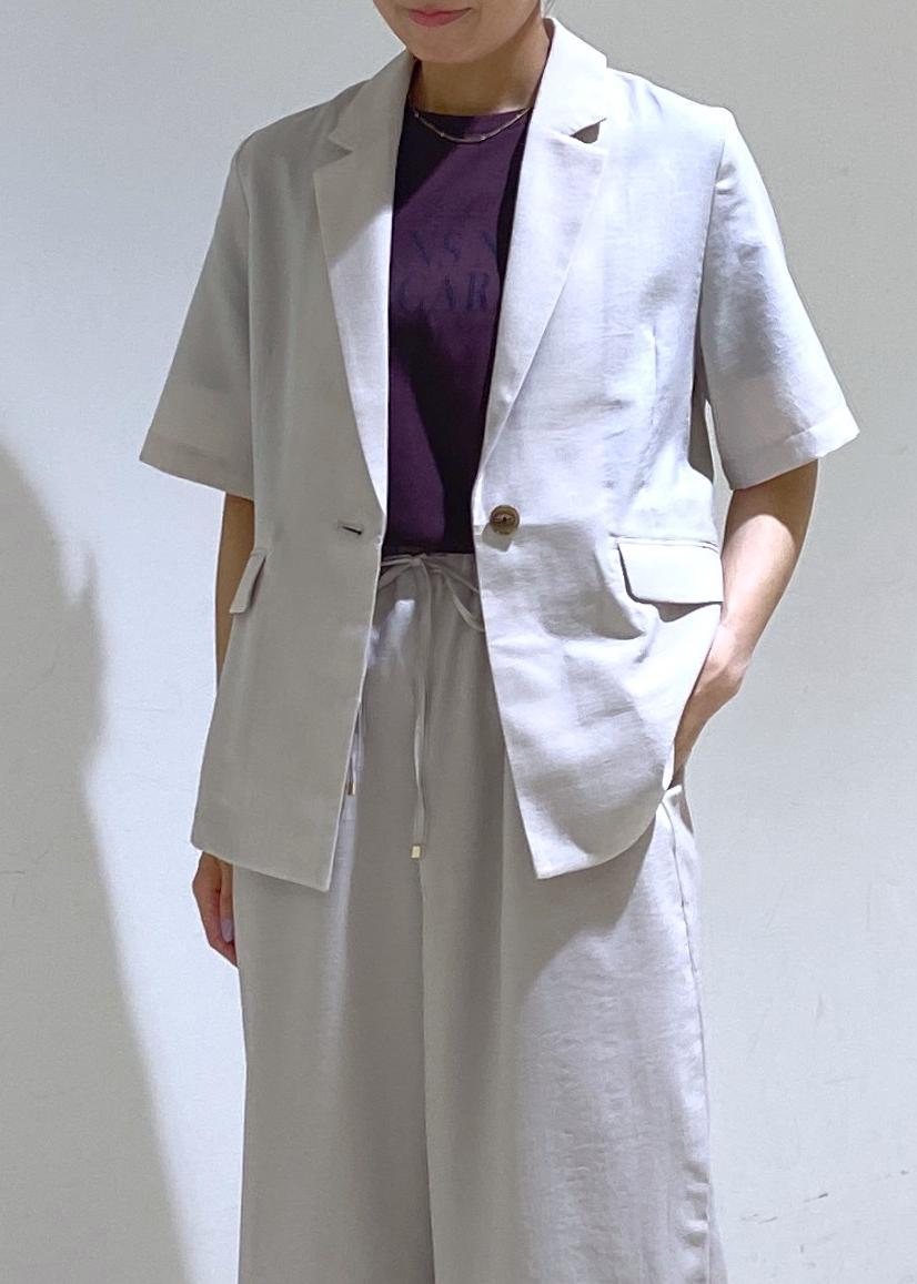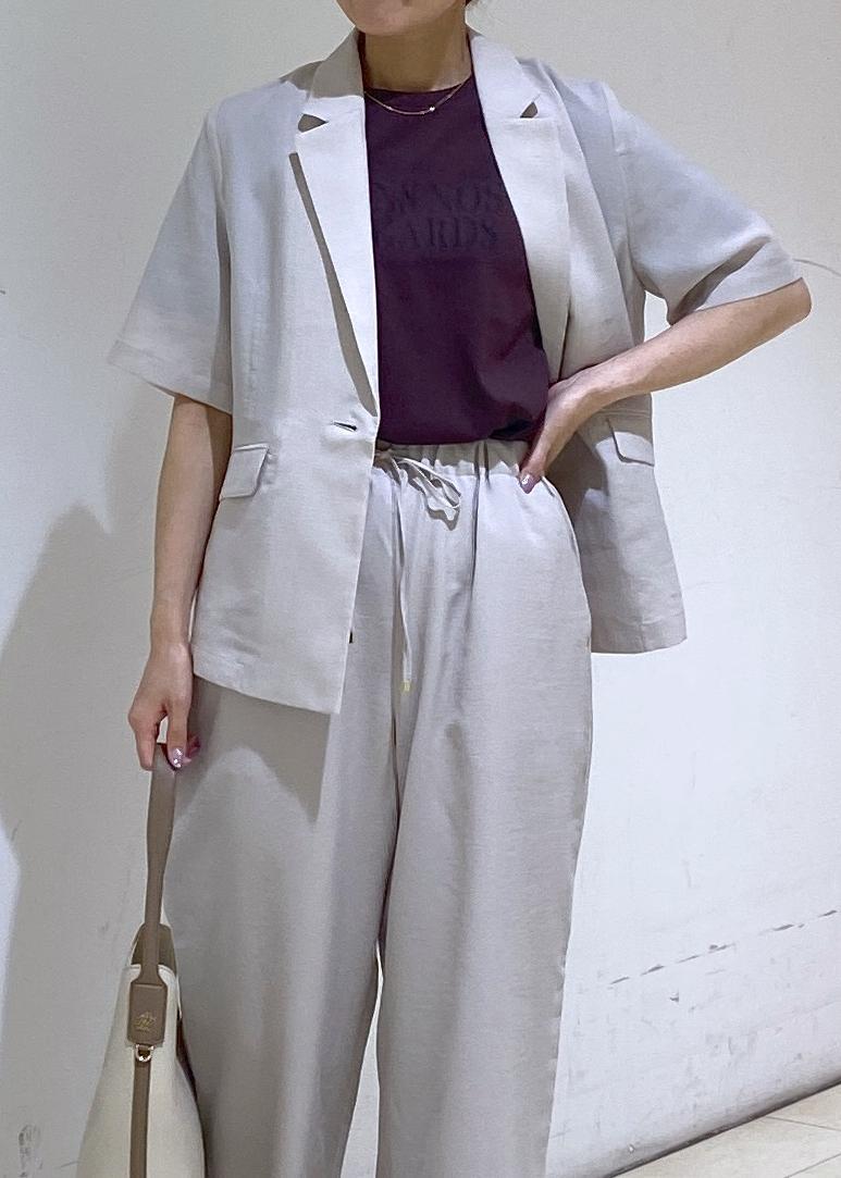 サラッと涼しげなベージュのセットアップに