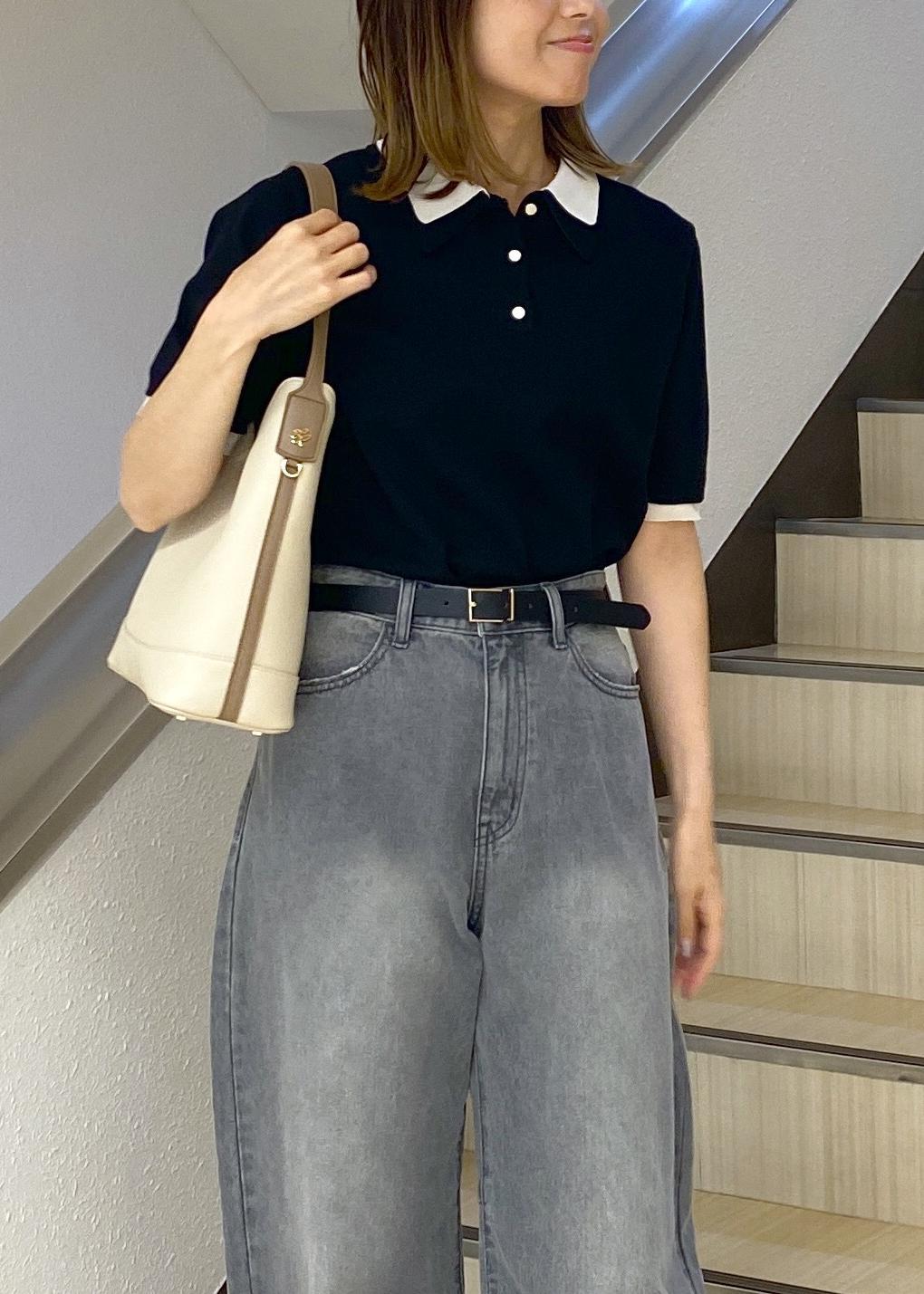 レイヤード風ニットポロコーデ