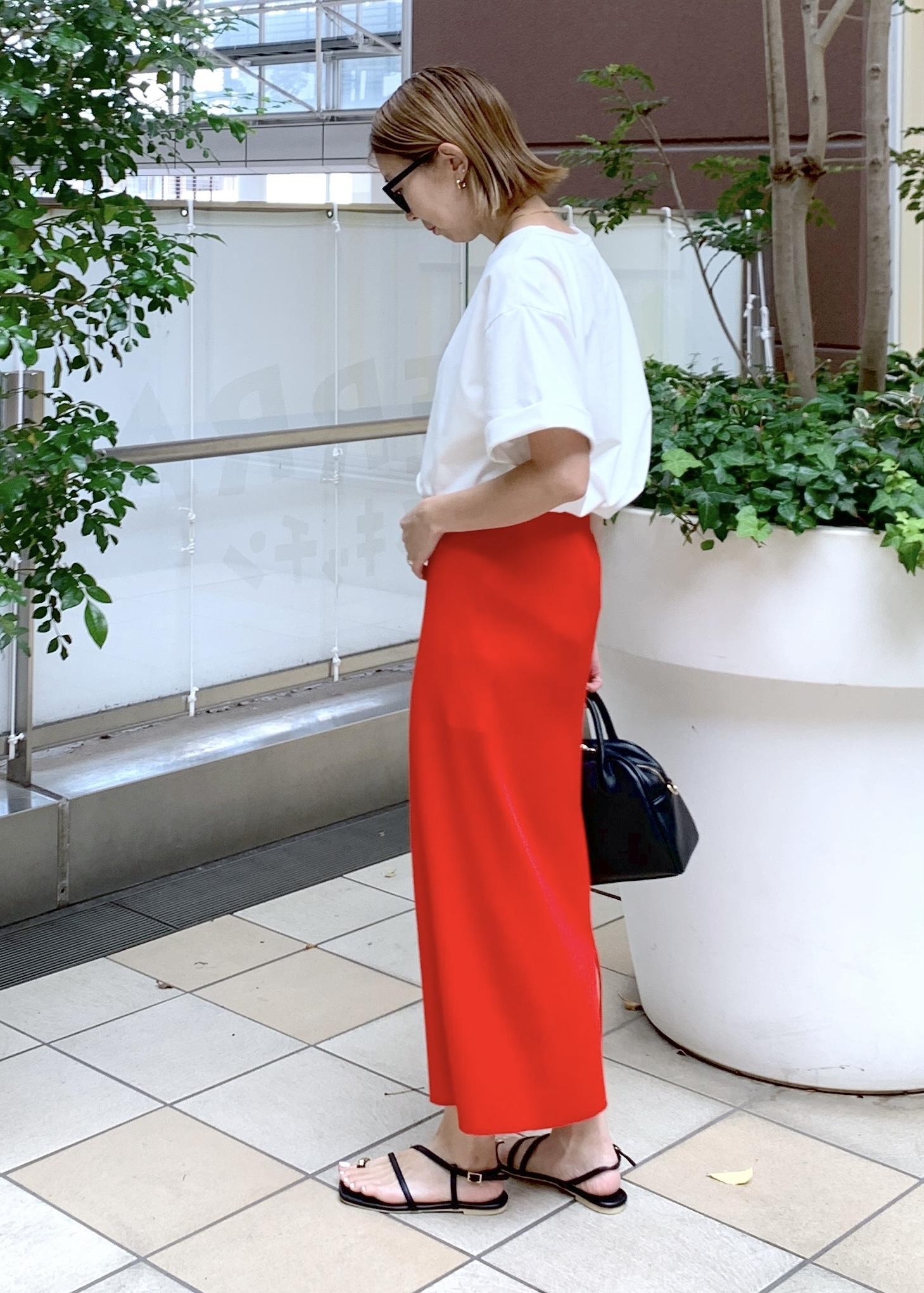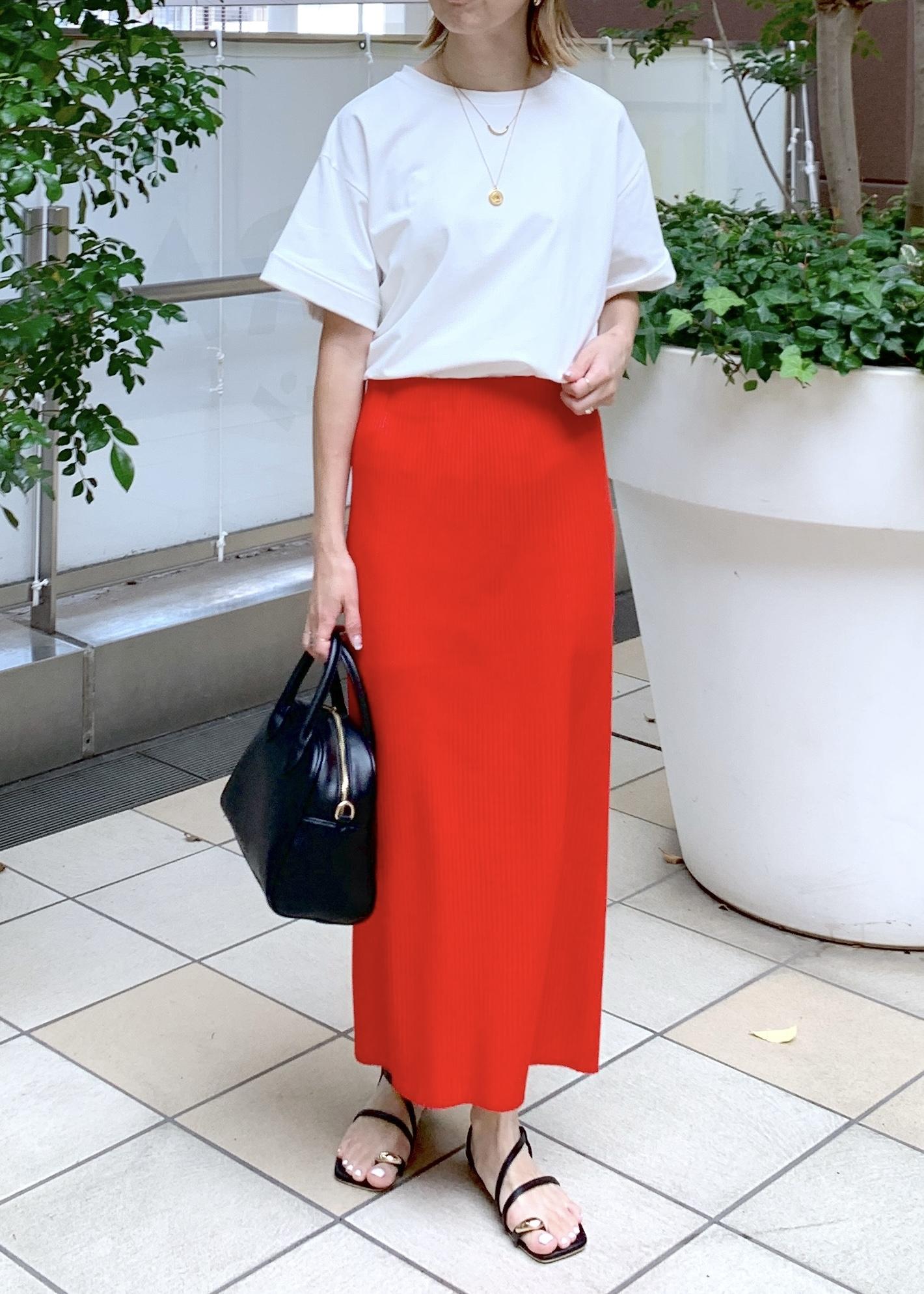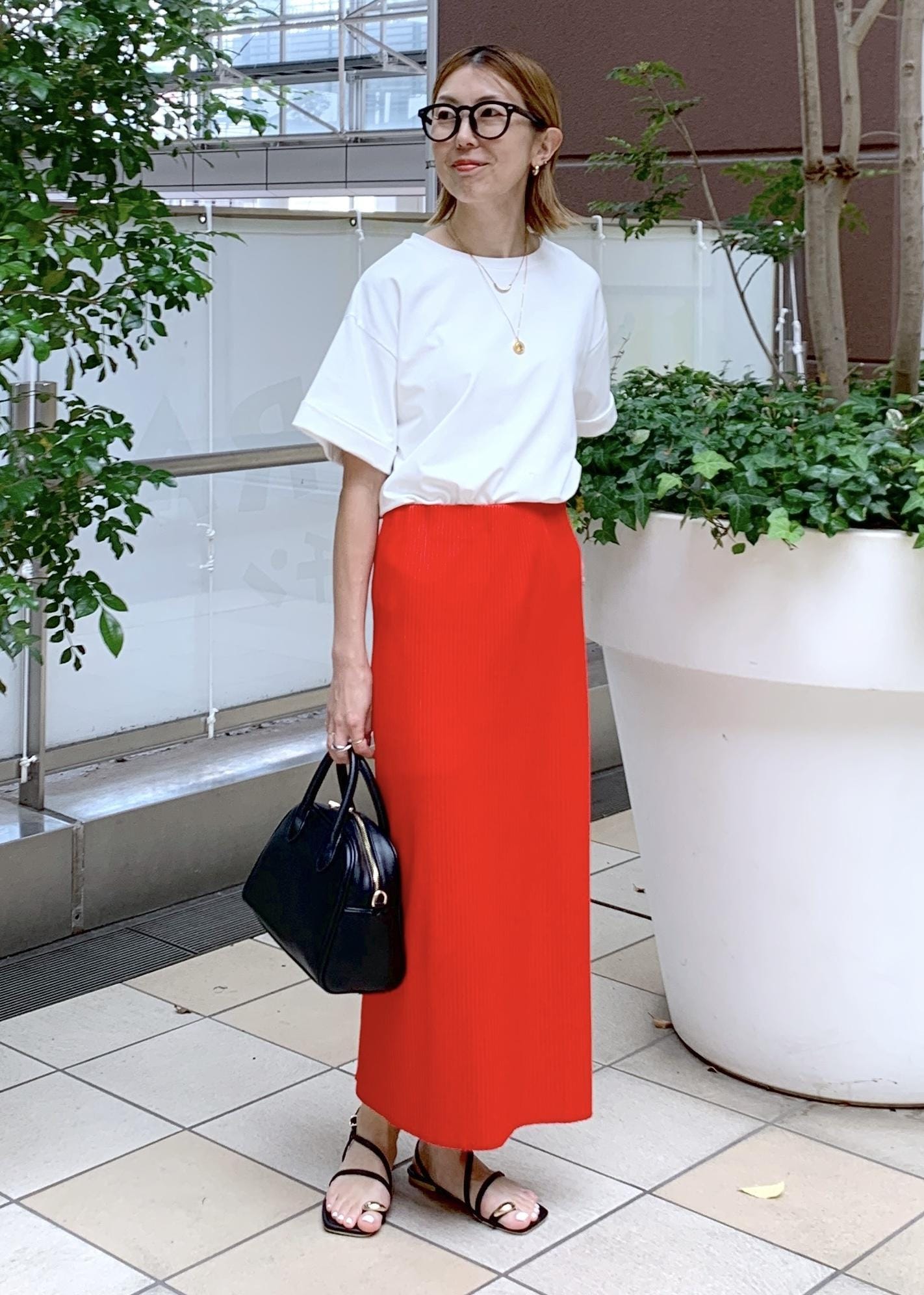 シンプルなトップスを合わせれば大人カジュアルなスタイリングに。