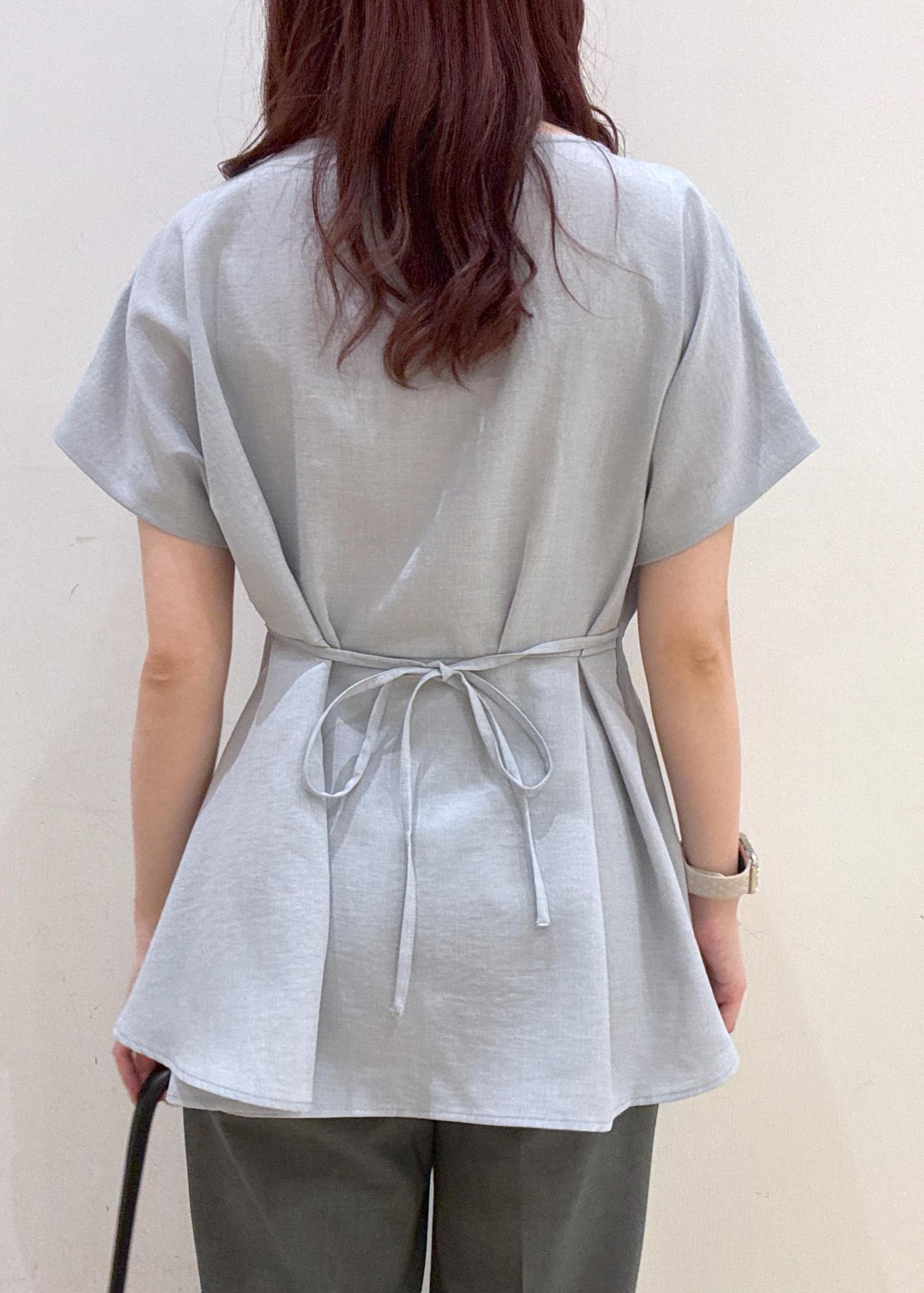 こちらのブラウスは前でも後ろでも縛っていただけるので、1枚で印象を変えて着ていただけます◎