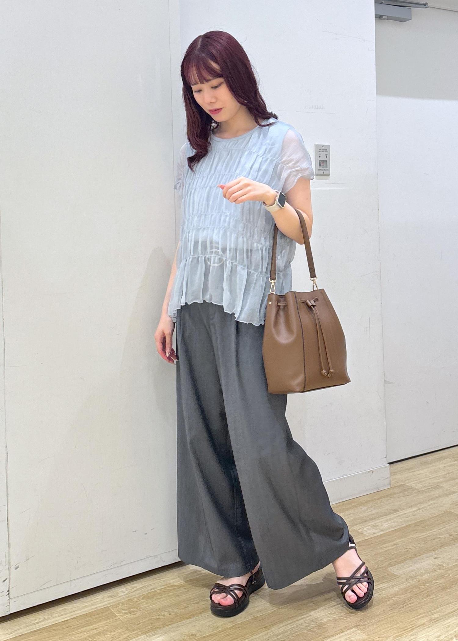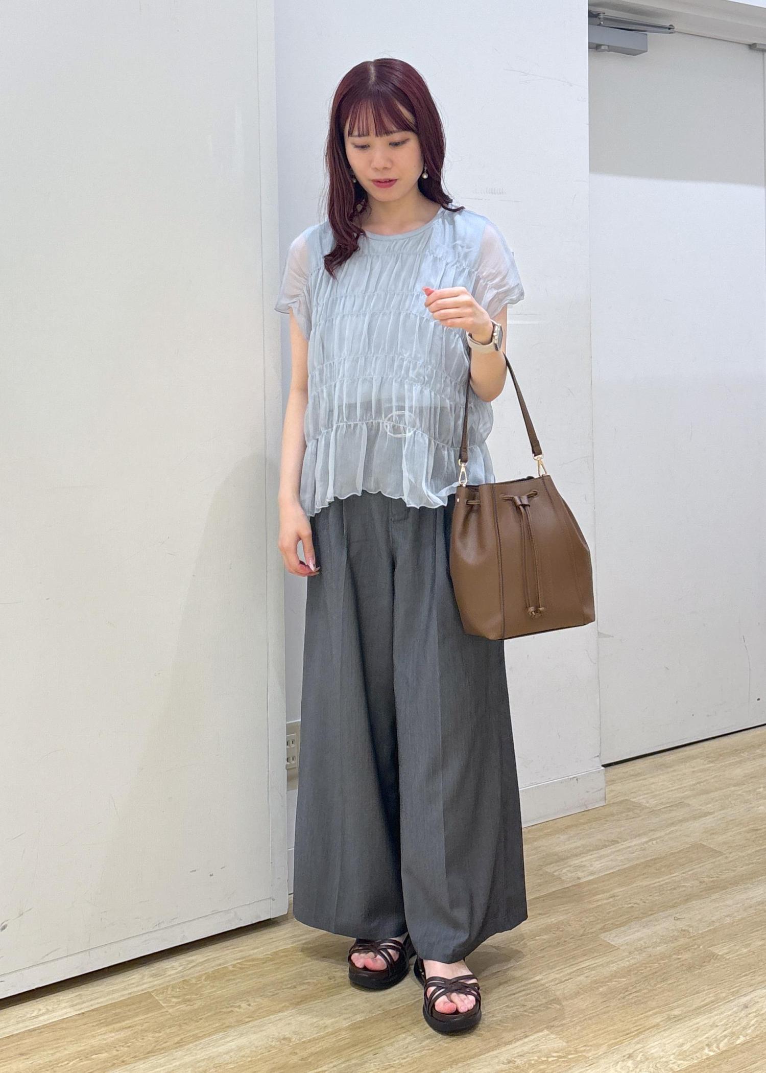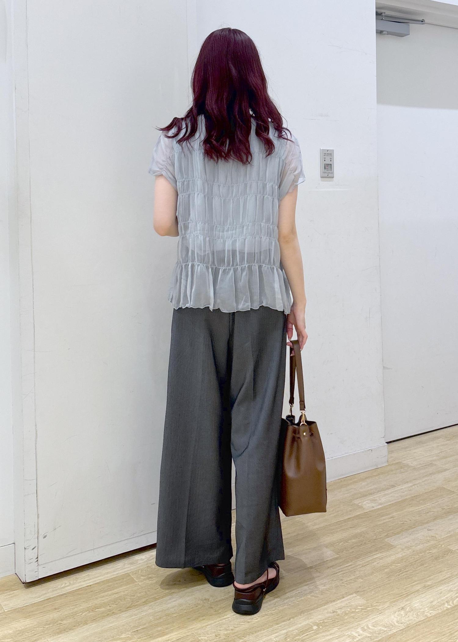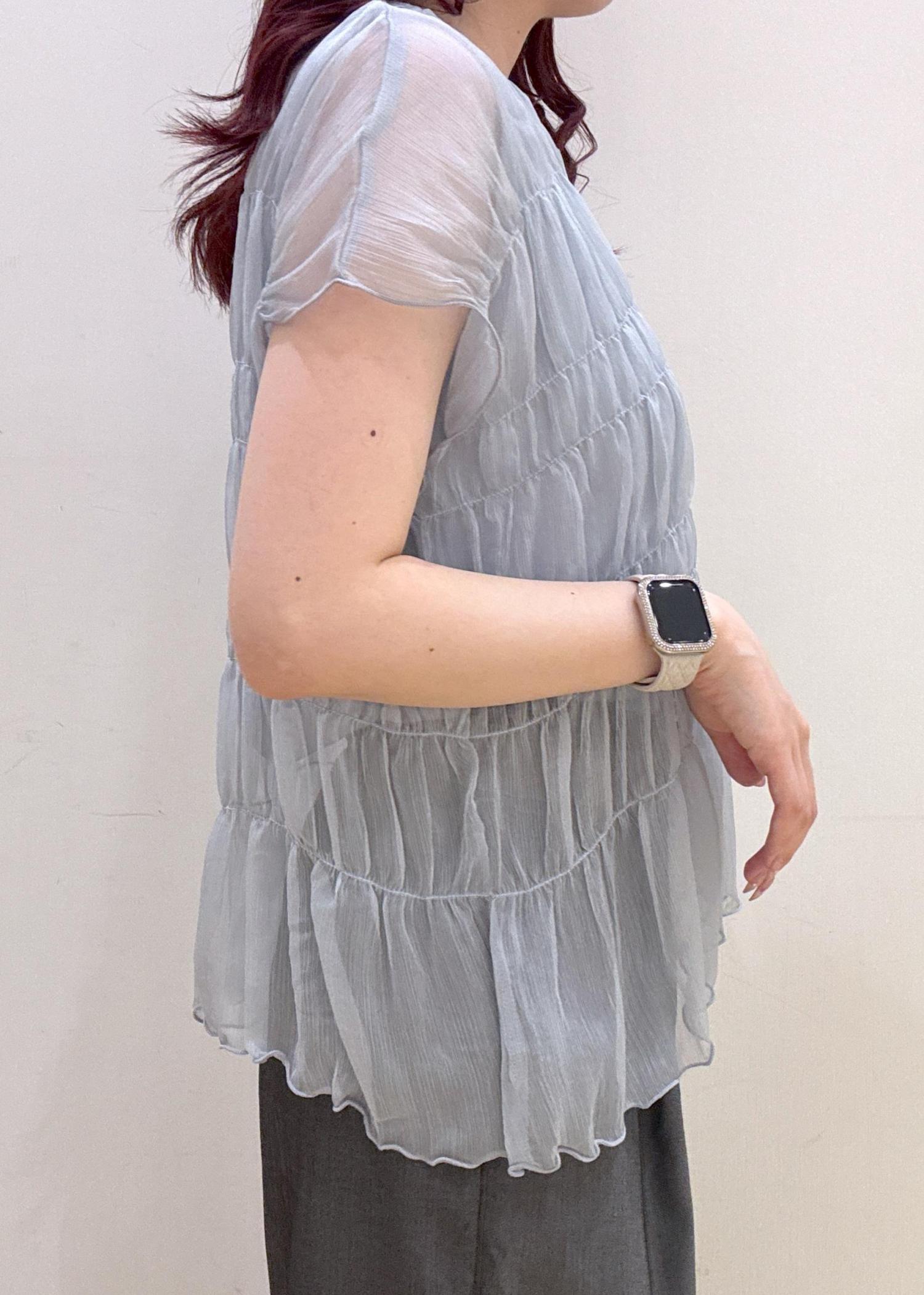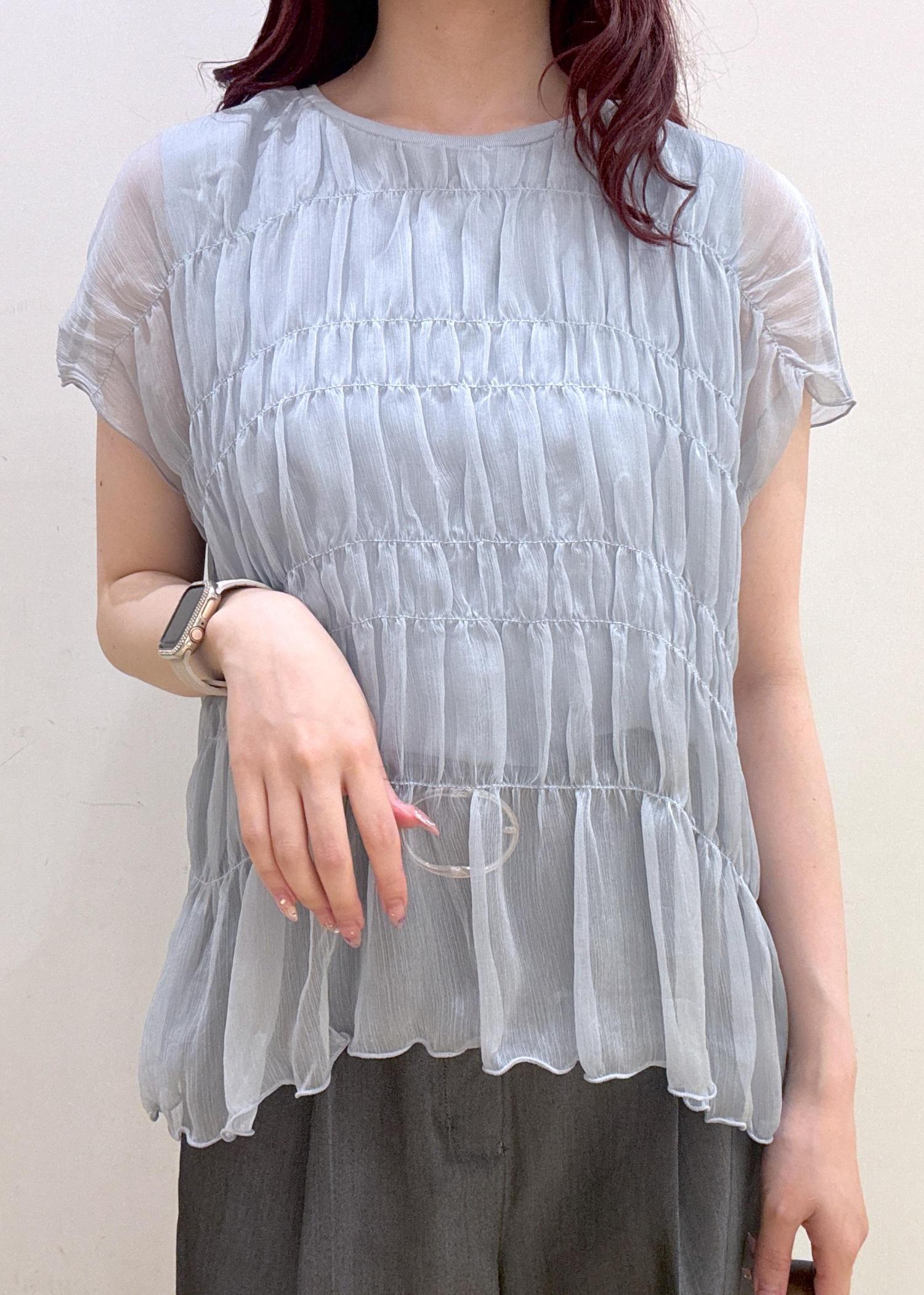 シャーリングデザインが涼し気で1枚でキマるブラウスです◎