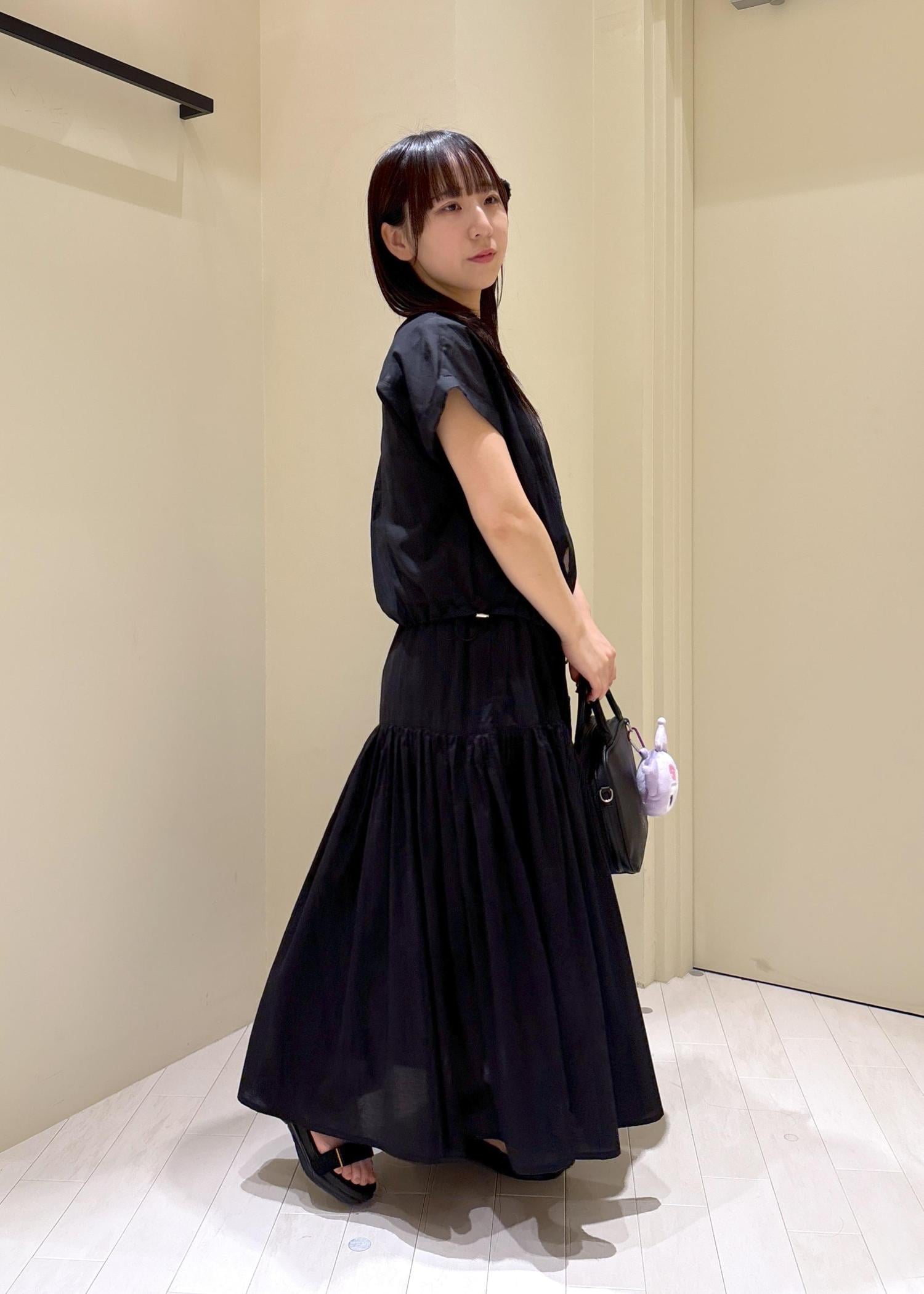 ウエストを絞るとスカートの長さを調整できるので、151cmの私でも擦らずに着ることができました! -