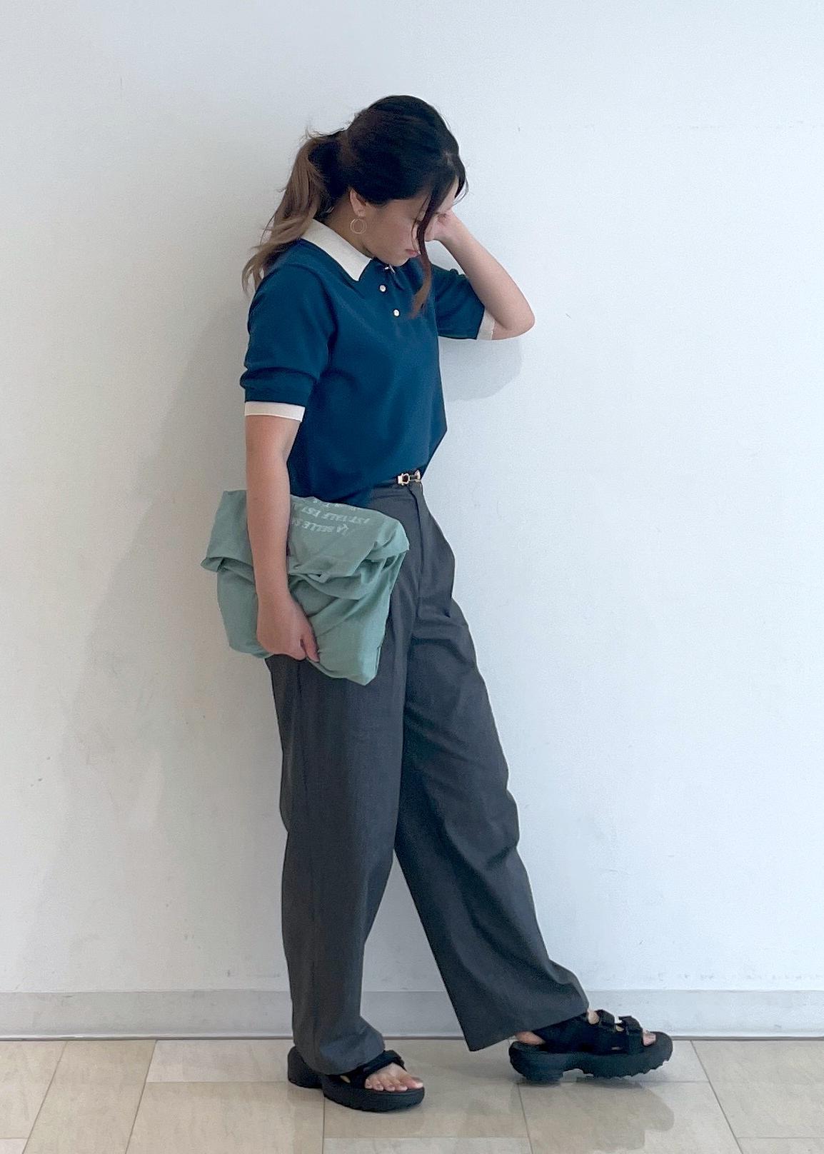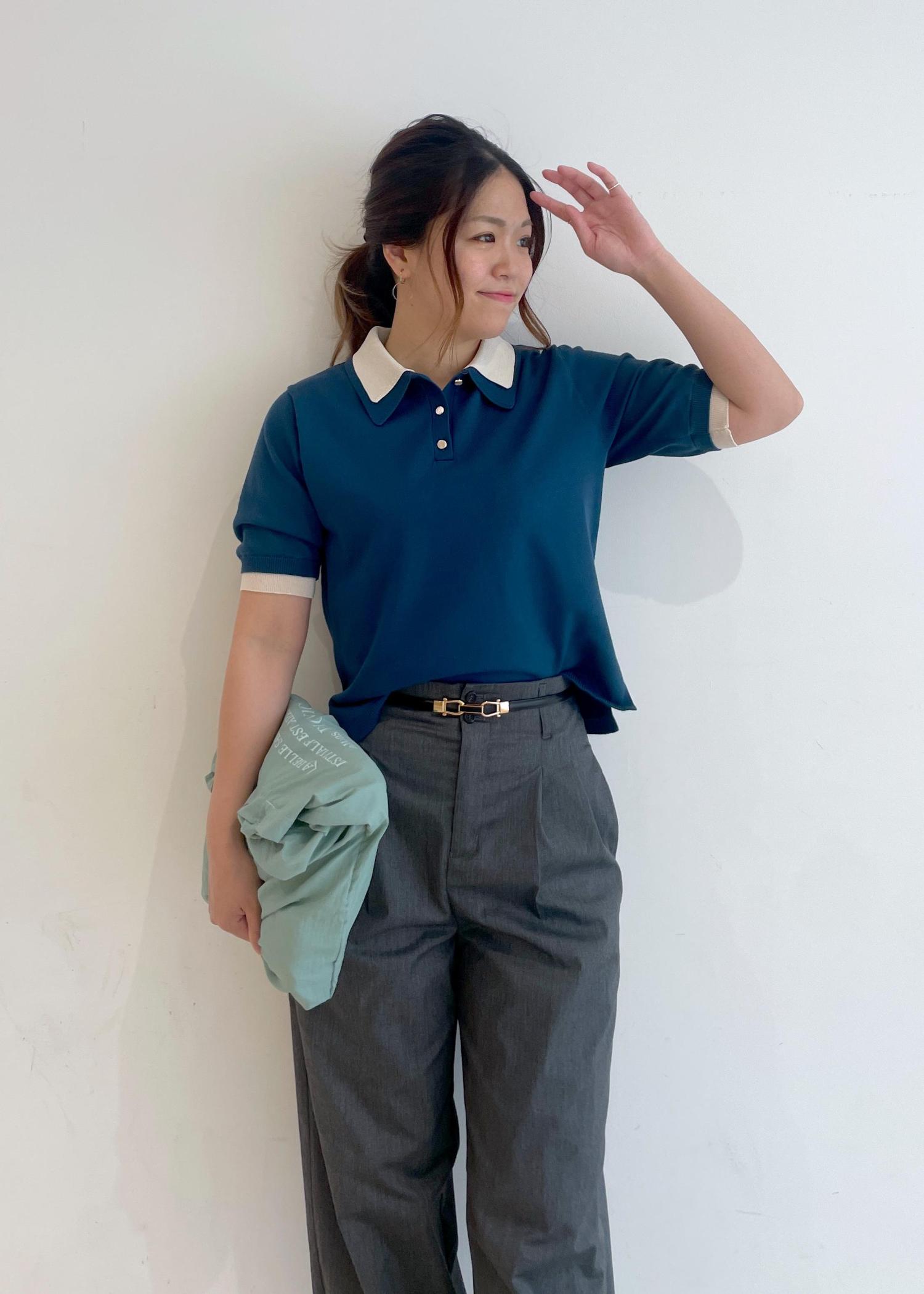 大人気のポロシャツを小物を変えてオフィスカジュアルでも使えるような、きれいめカジュアルにしました!