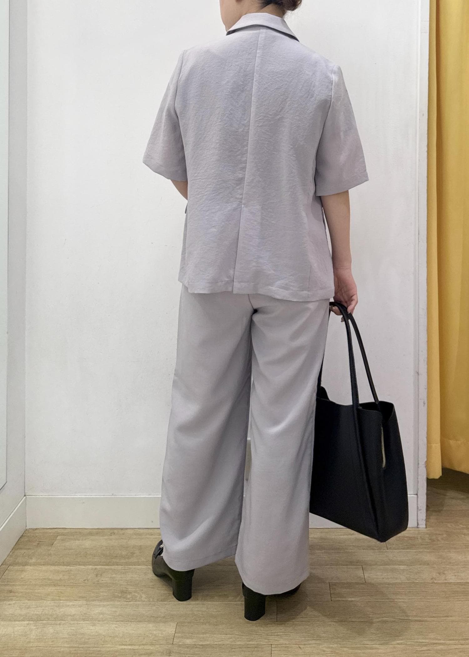ヒップが半分隠れるぐらいの着丈と、お袖は肘ぐらいの袖丈で二の腕をカバーできました。