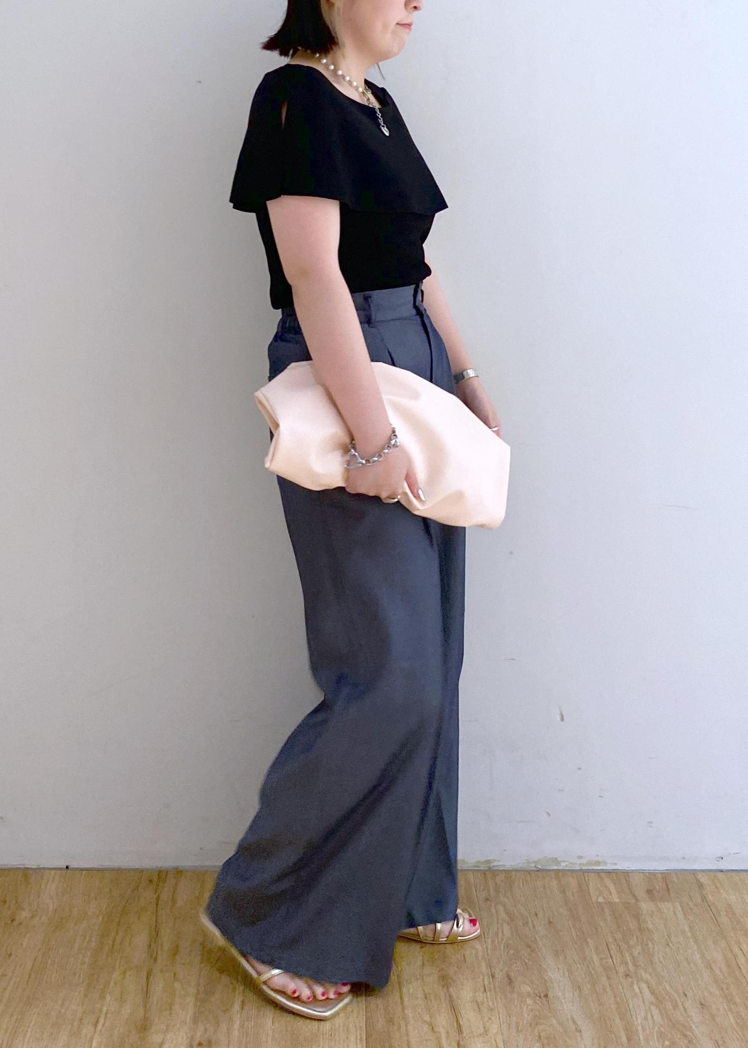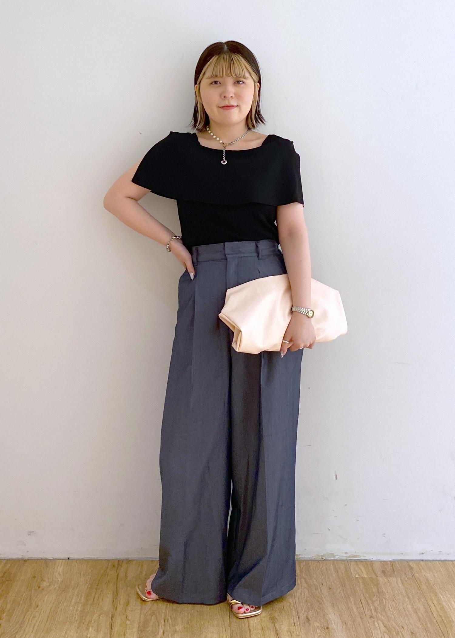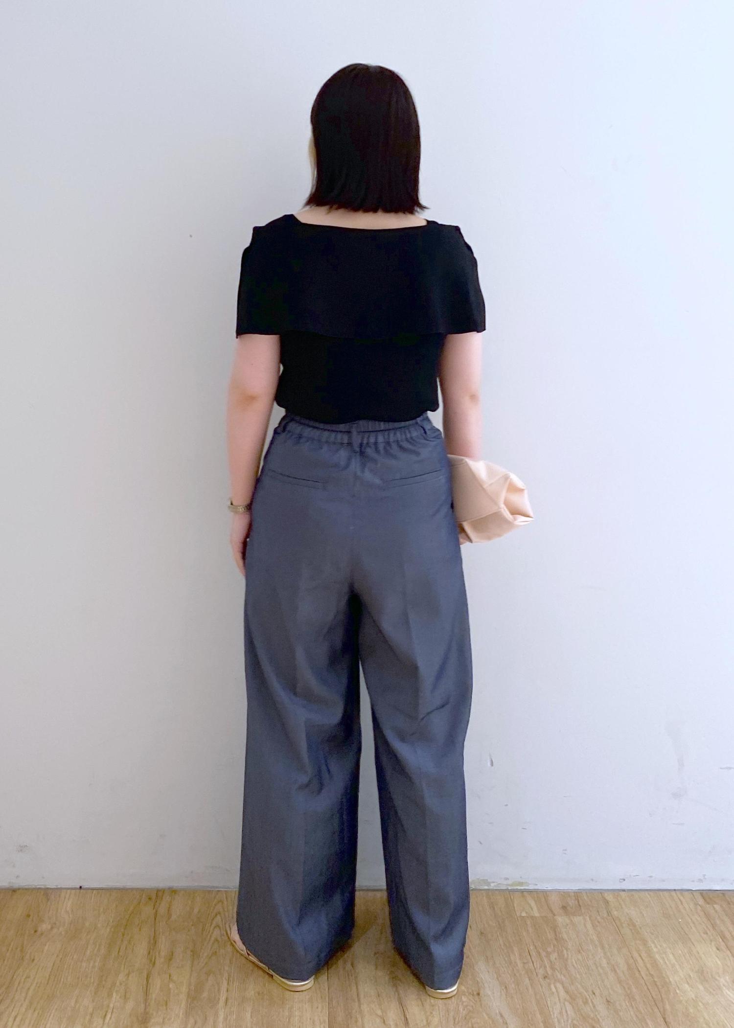 ROPÉ PICNICテンセルシャンブレータックワイドスラックス/通勤対応ネイビー / 38¥6,490レビュー156cmだと38サイズ着用で着丈は少し長めに感じました。ウエストはジャストサイズだったのでヒール合わせで着用するのがオススメです◎