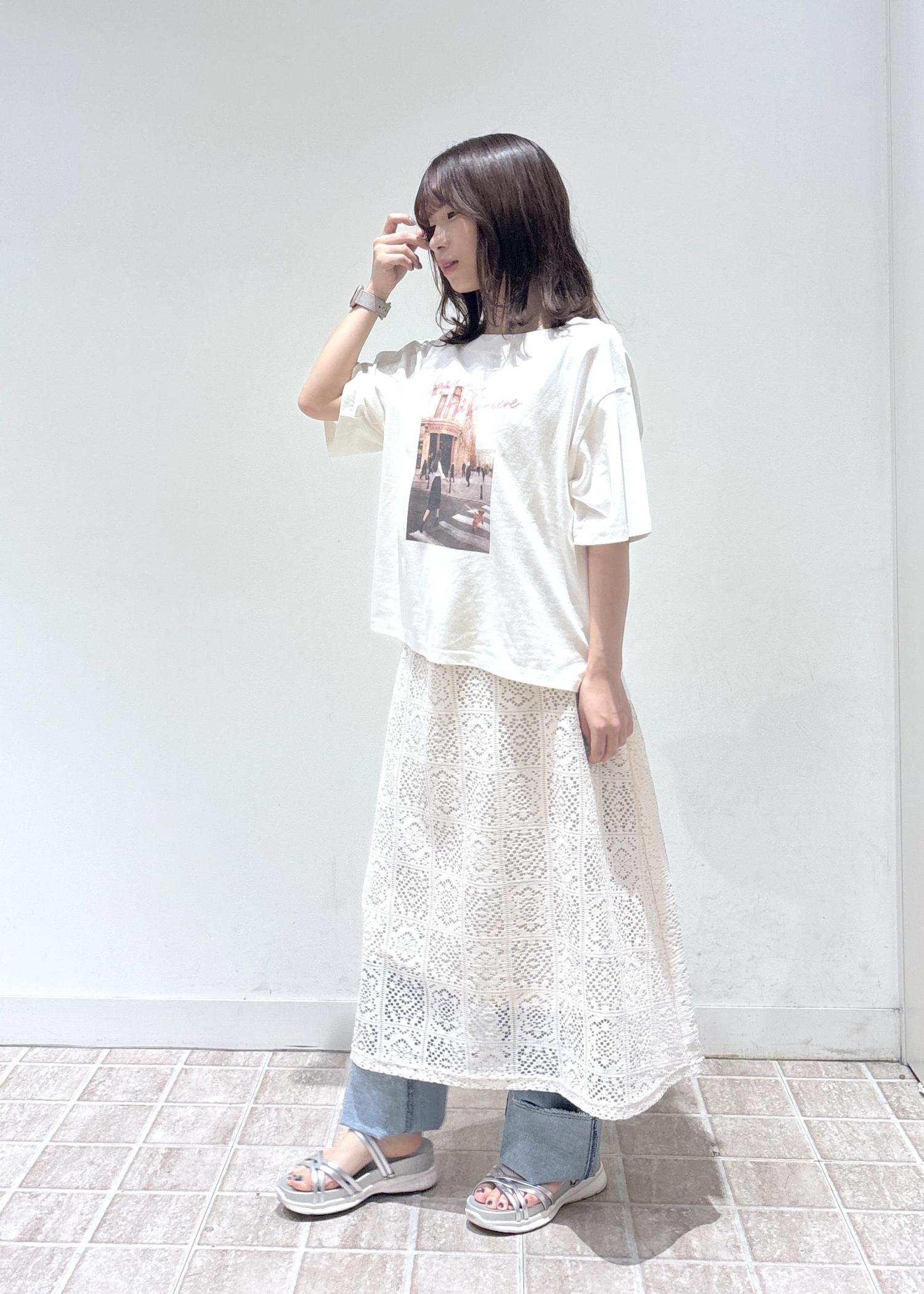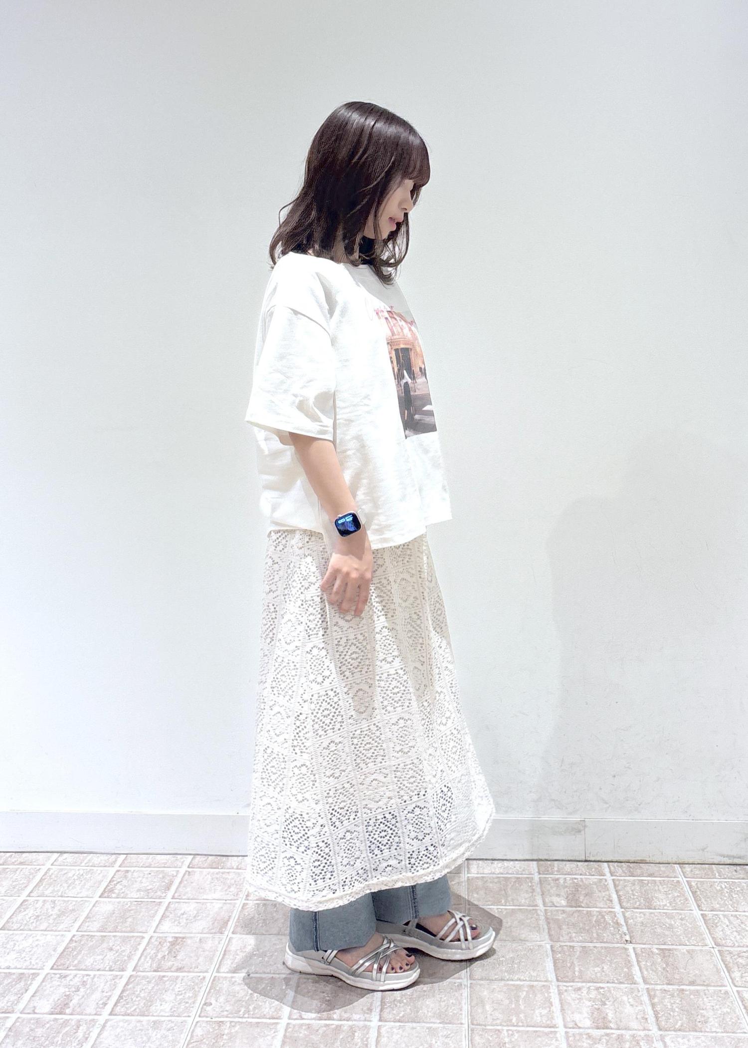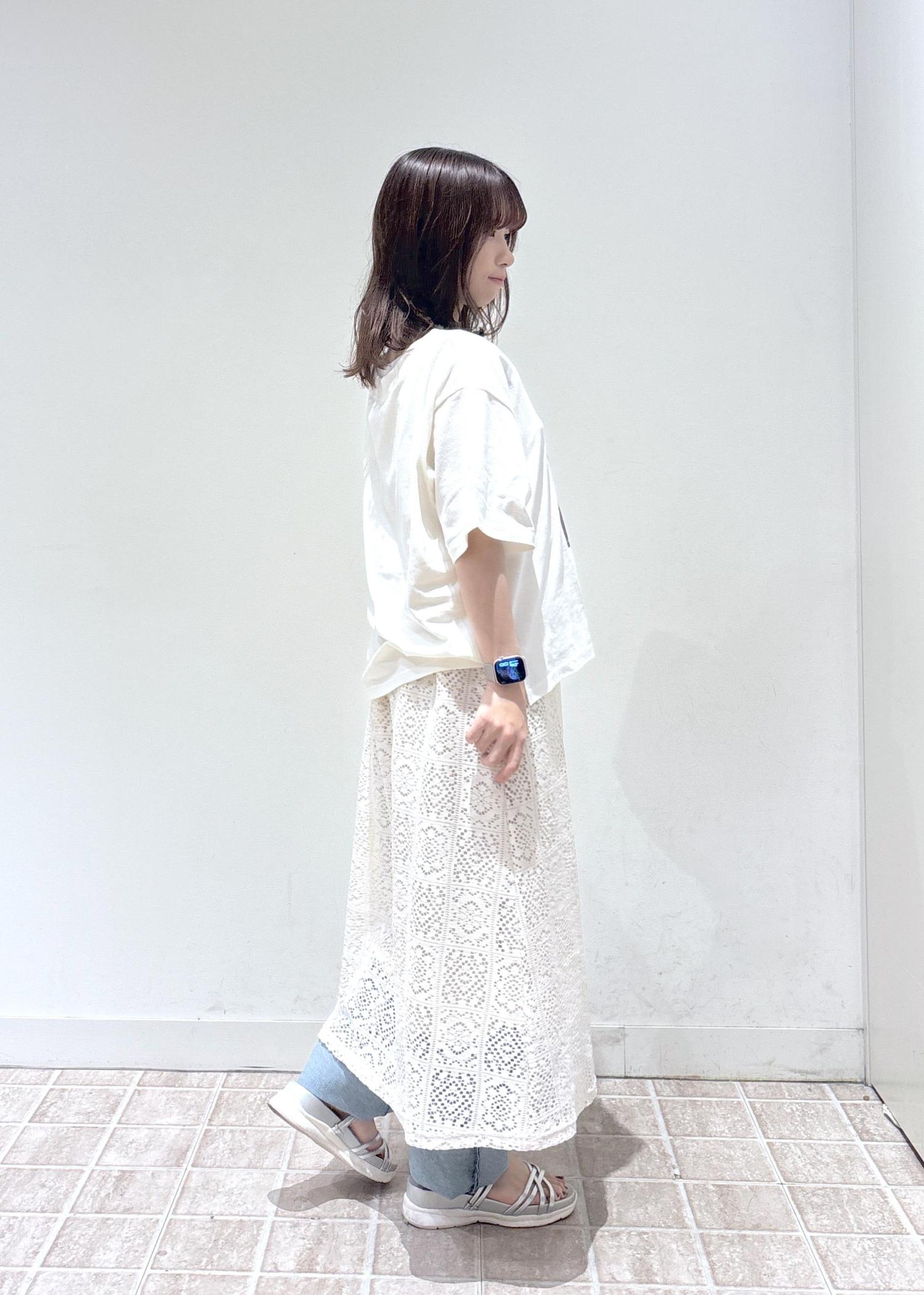 ボトムスをレイヤードしている分、足元はサンダルで軽さを出してあげると、夏らしく着て頂けると思います!