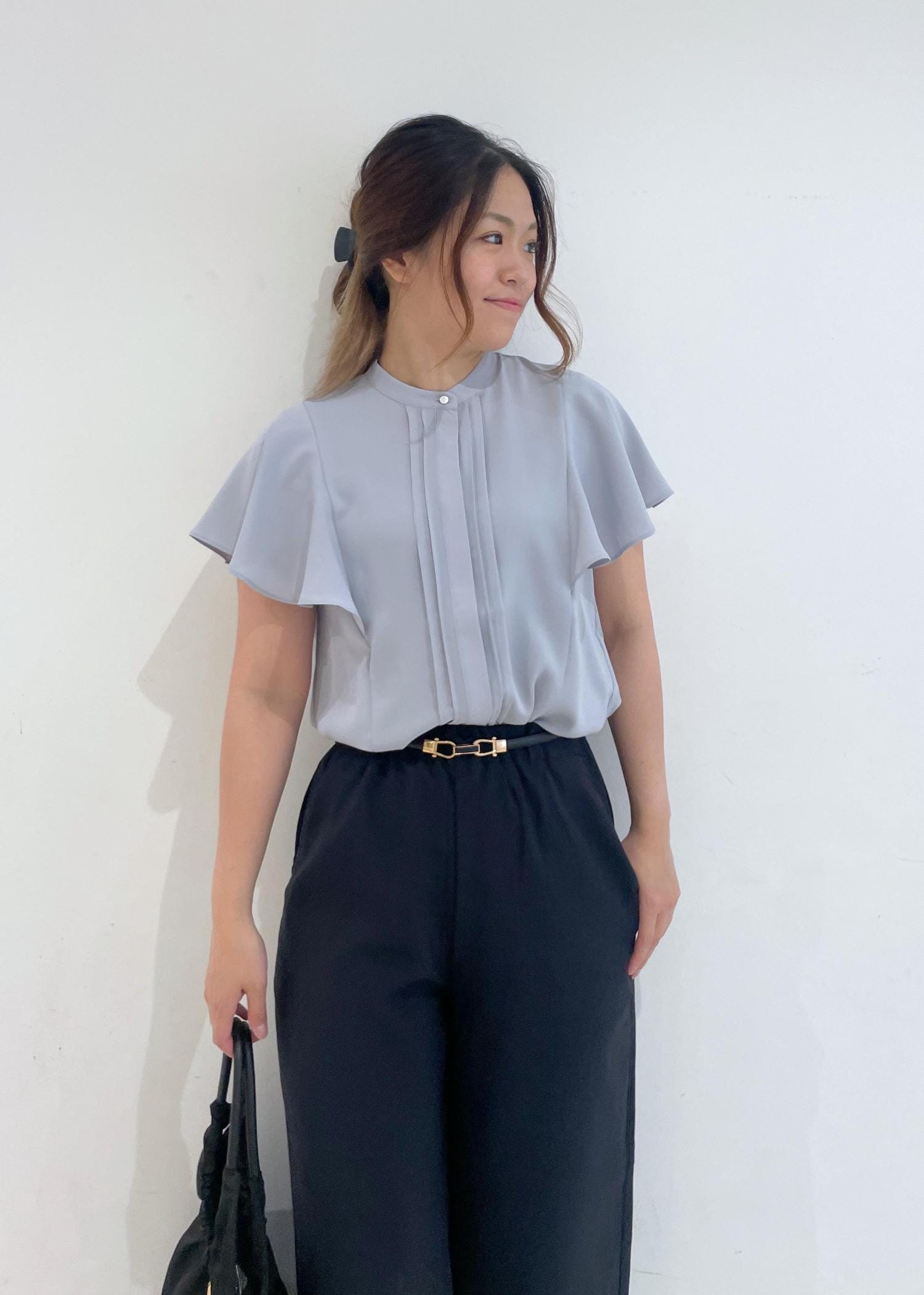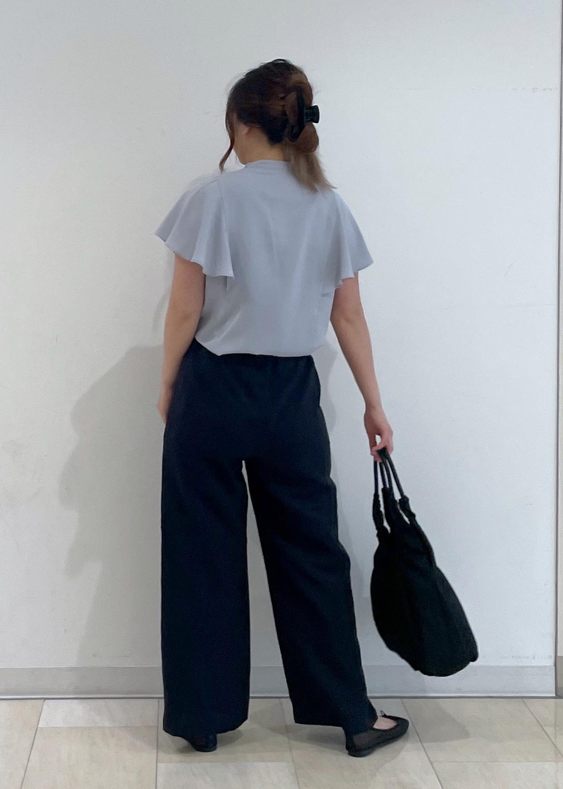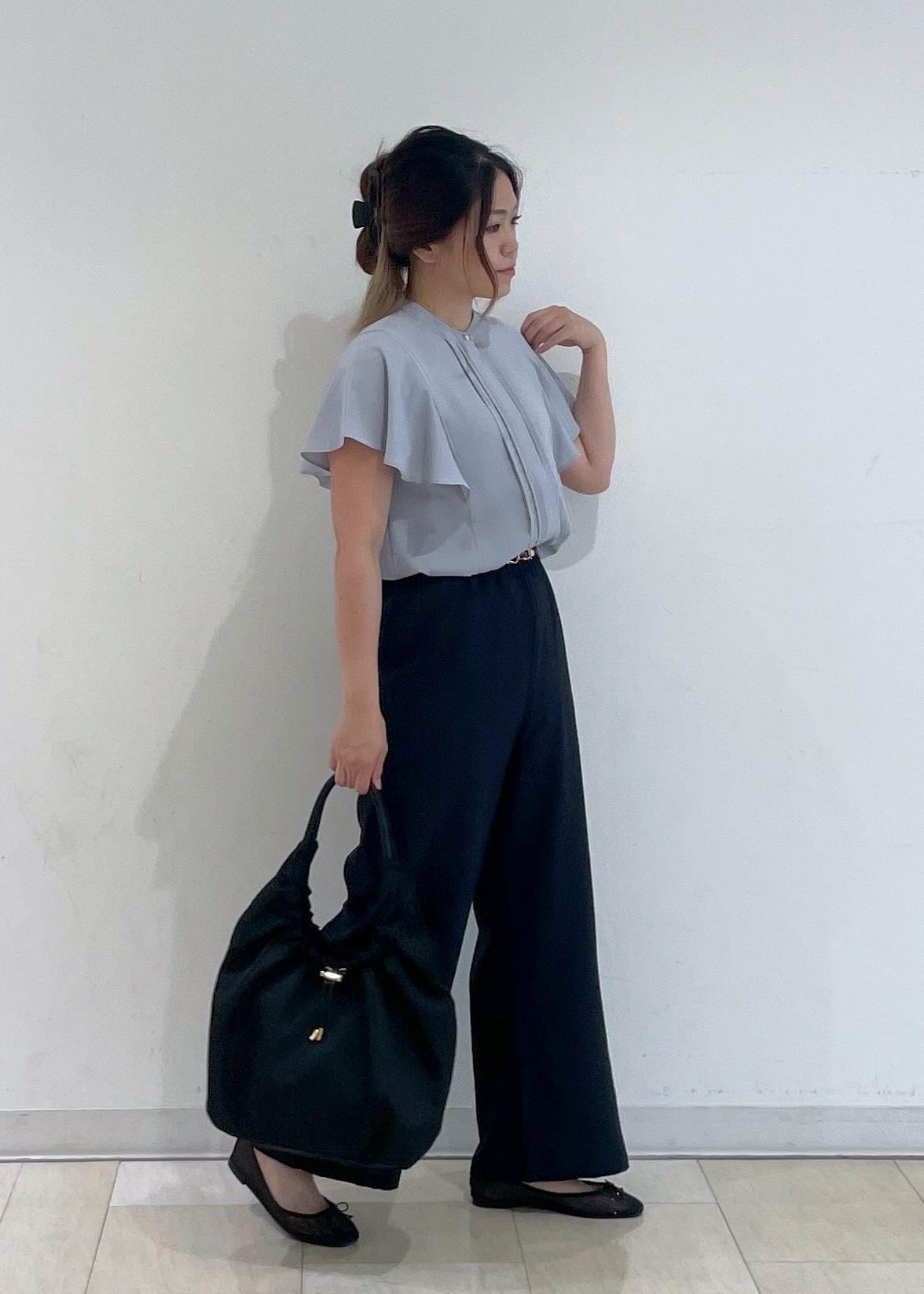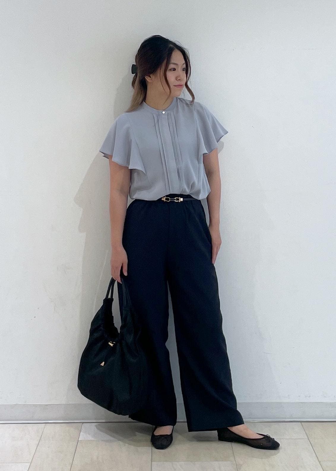 ブラウスにリラックス感のあるワイドパンツを合わせて、夏でも涼しくて楽に着れるお仕事コーデにしました!