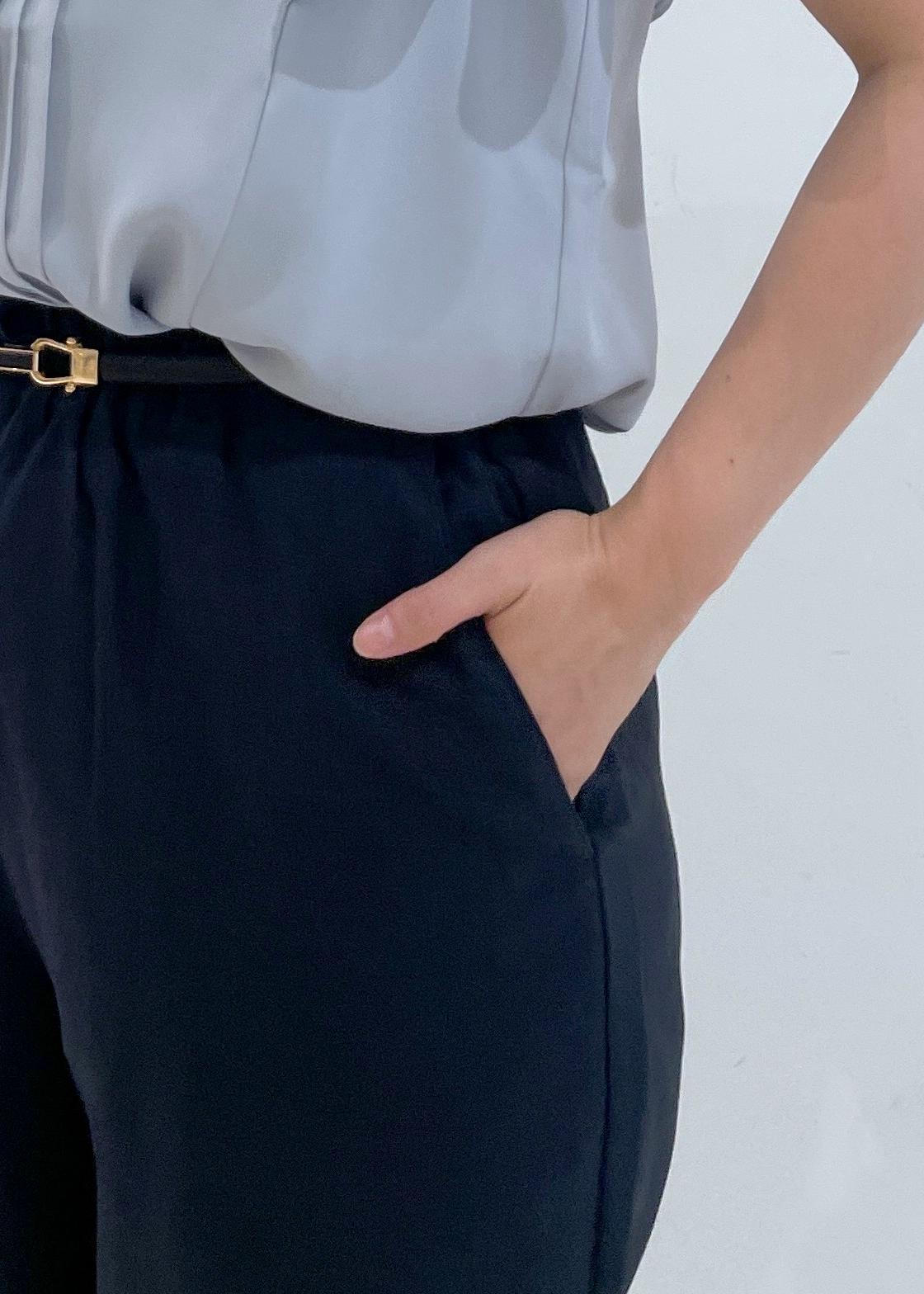 ウエストゴムで程よくワイドシルエットなので身体のラインを拾わず着れます◎