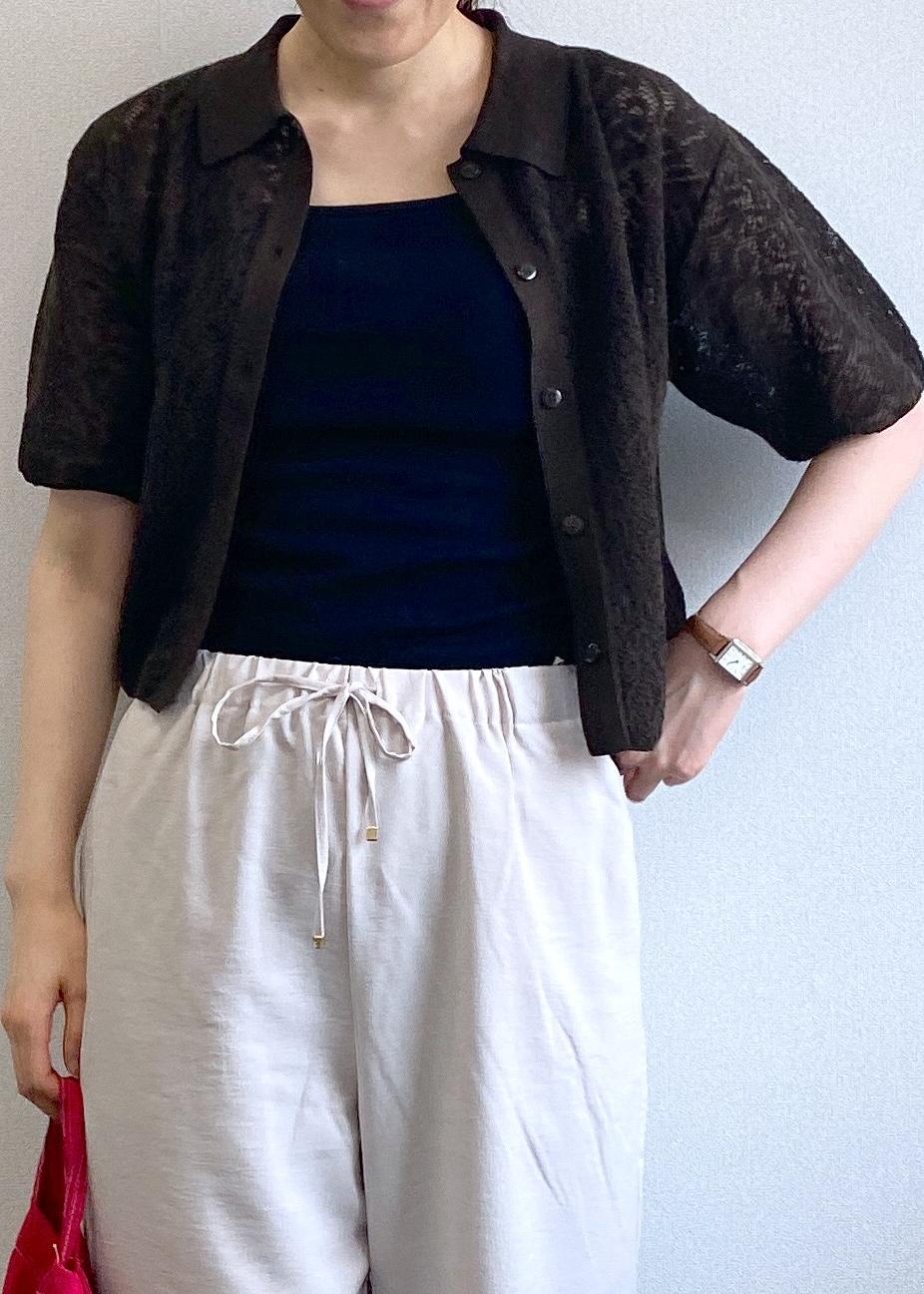 ROPÉ PICNICレース襟付きカーディガンダークブラウン / 38¥5,489レビュー細かなレースがかわいいカーディガン。程よい肌見せで涼しく、羽織るだけでシンプルコーデにワンポイントおしゃれな印象に♫