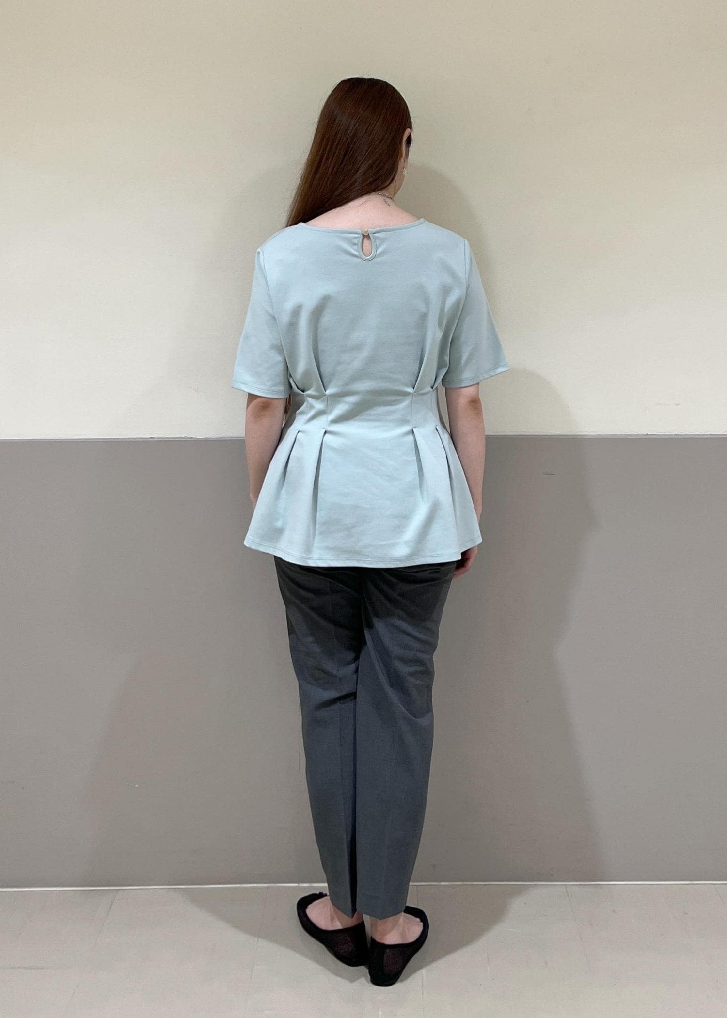 ペプラムシルエットで丈はしっかりあるので気になる腰回りもカバーしてくれます。 -