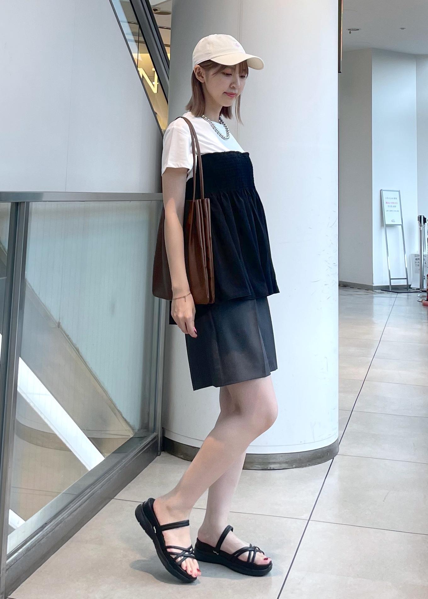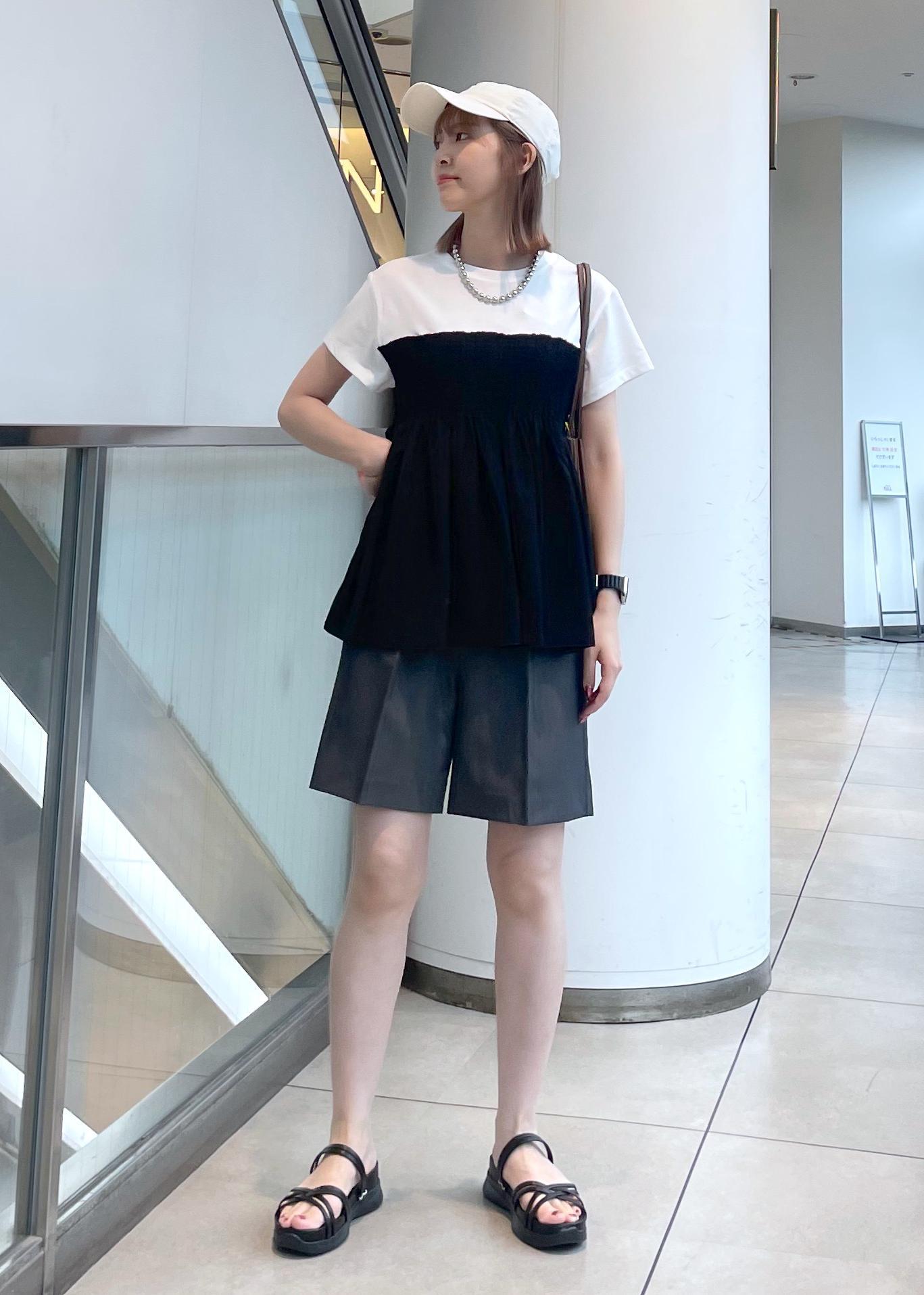 レジャーにピッタリなハーフパンツ×楽ちんサンダルを合わせ、涼しいスタイルにしました。