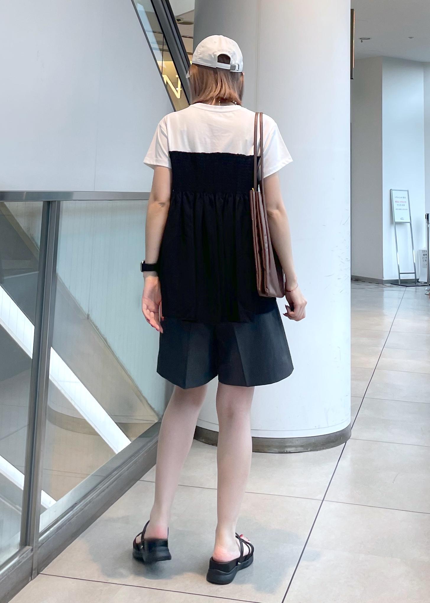ROPÉ PICNICシャーリングビスチェ風ドッキングカットソーブラック系 / 38¥3,599レビューTシャツ素材なのでサラッとしています。ギャザー部分もキツい感じはなかったです。