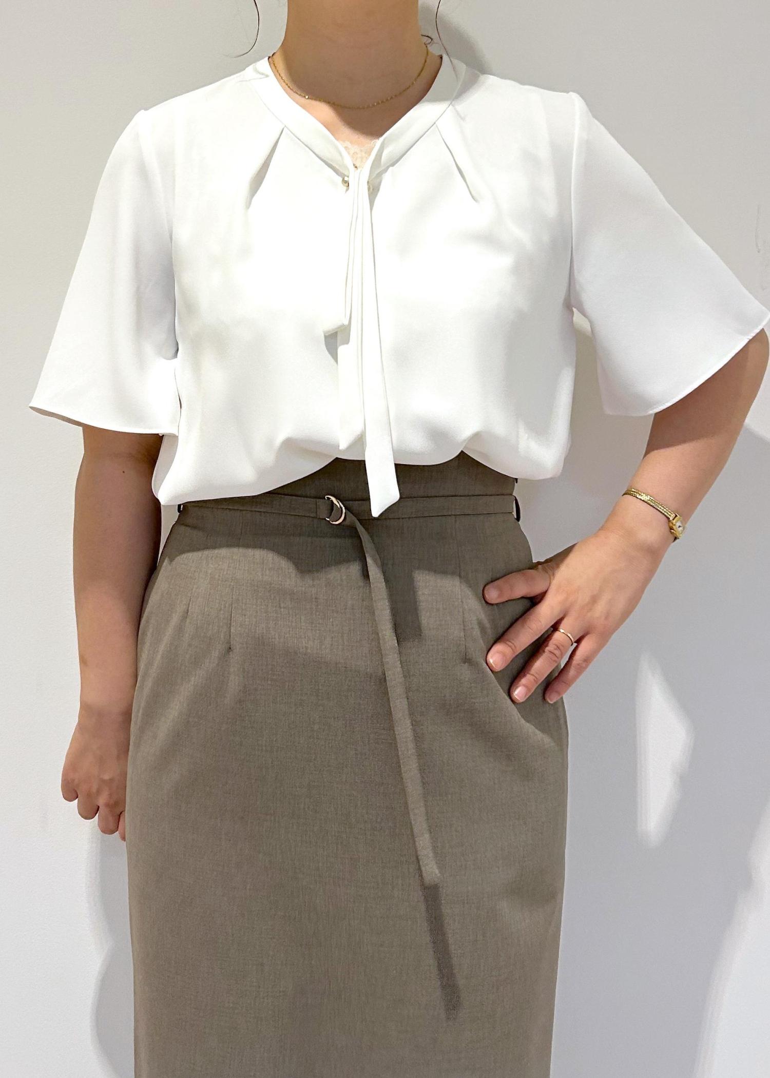 リボンタイハーフスリーブブラウスは、サラサラのドライタッチで、シワになりにくいのが嬉しいポイントです。