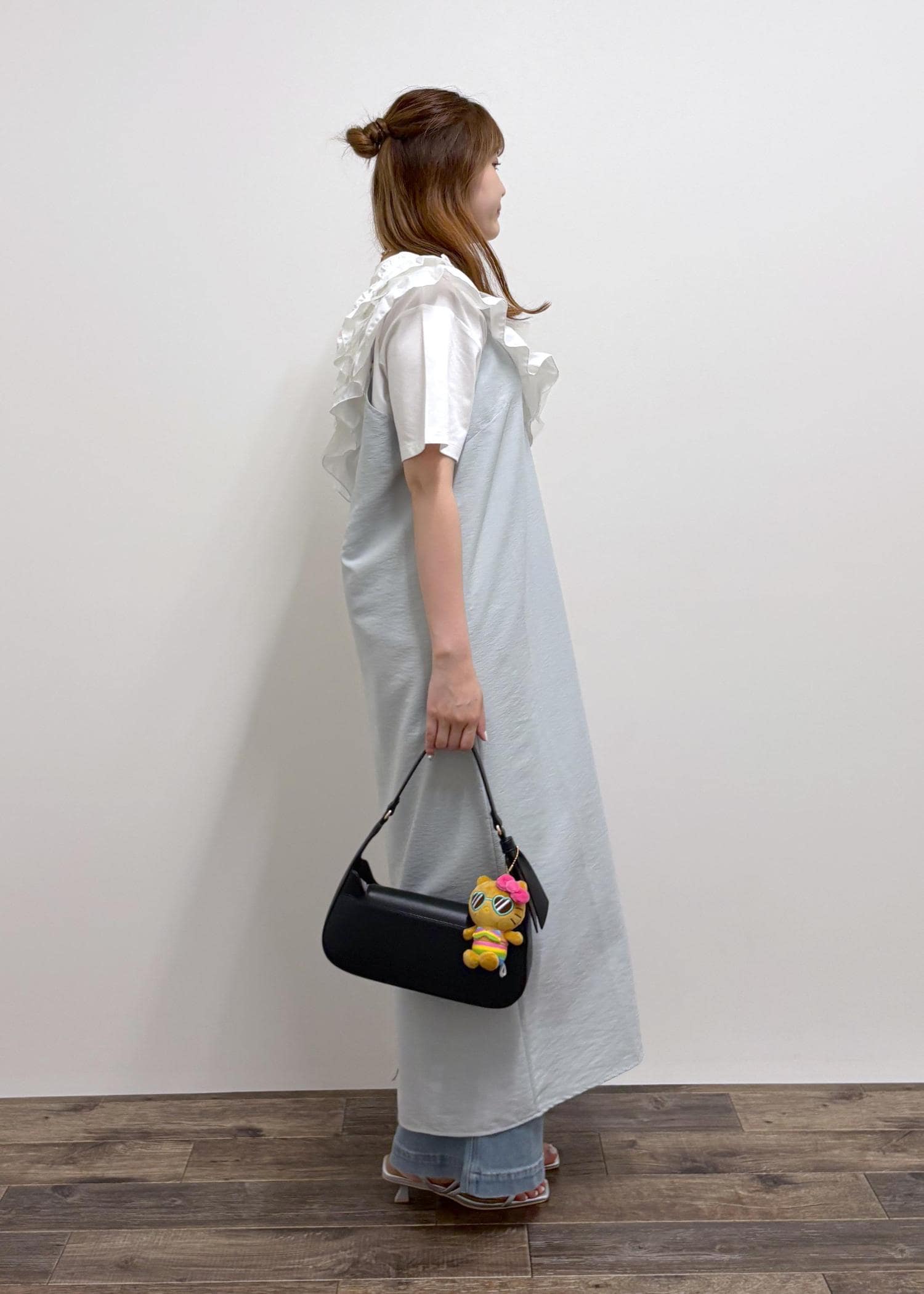 ハローキティの刺繍トップスがブルー系だったのでキャミワンピもブルー系に統一しました。