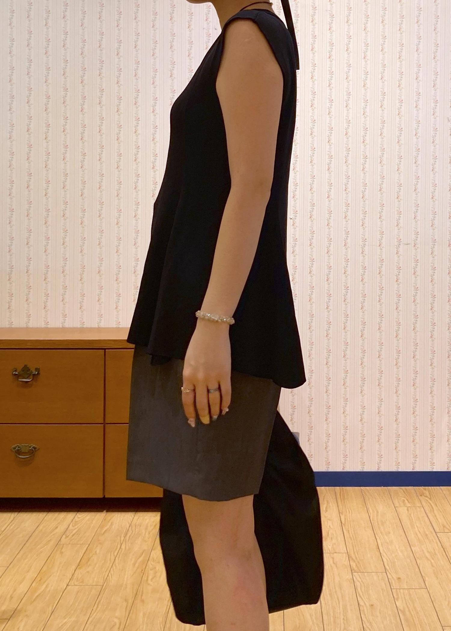 接触冷感機能付きで透け感もなく1枚でオシャレに着れます!綺麗なペプラムシルエットで体型カバーもできます。 -