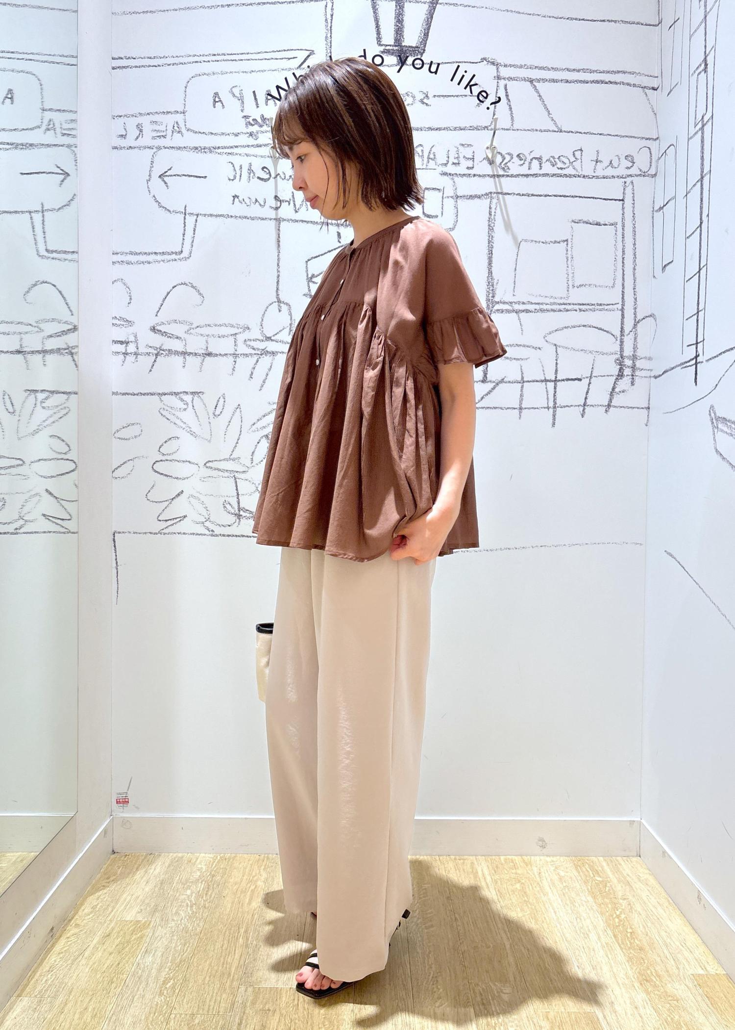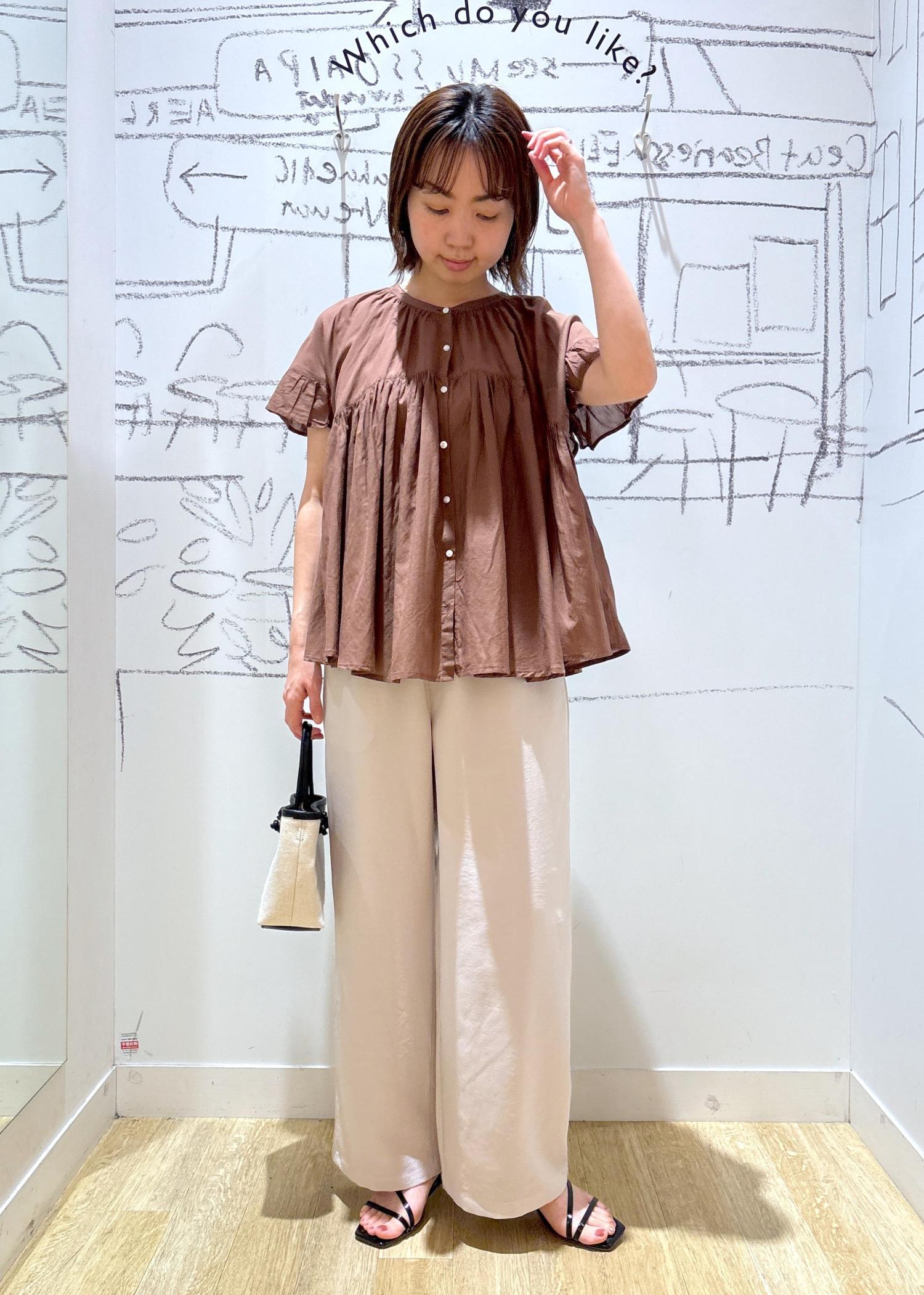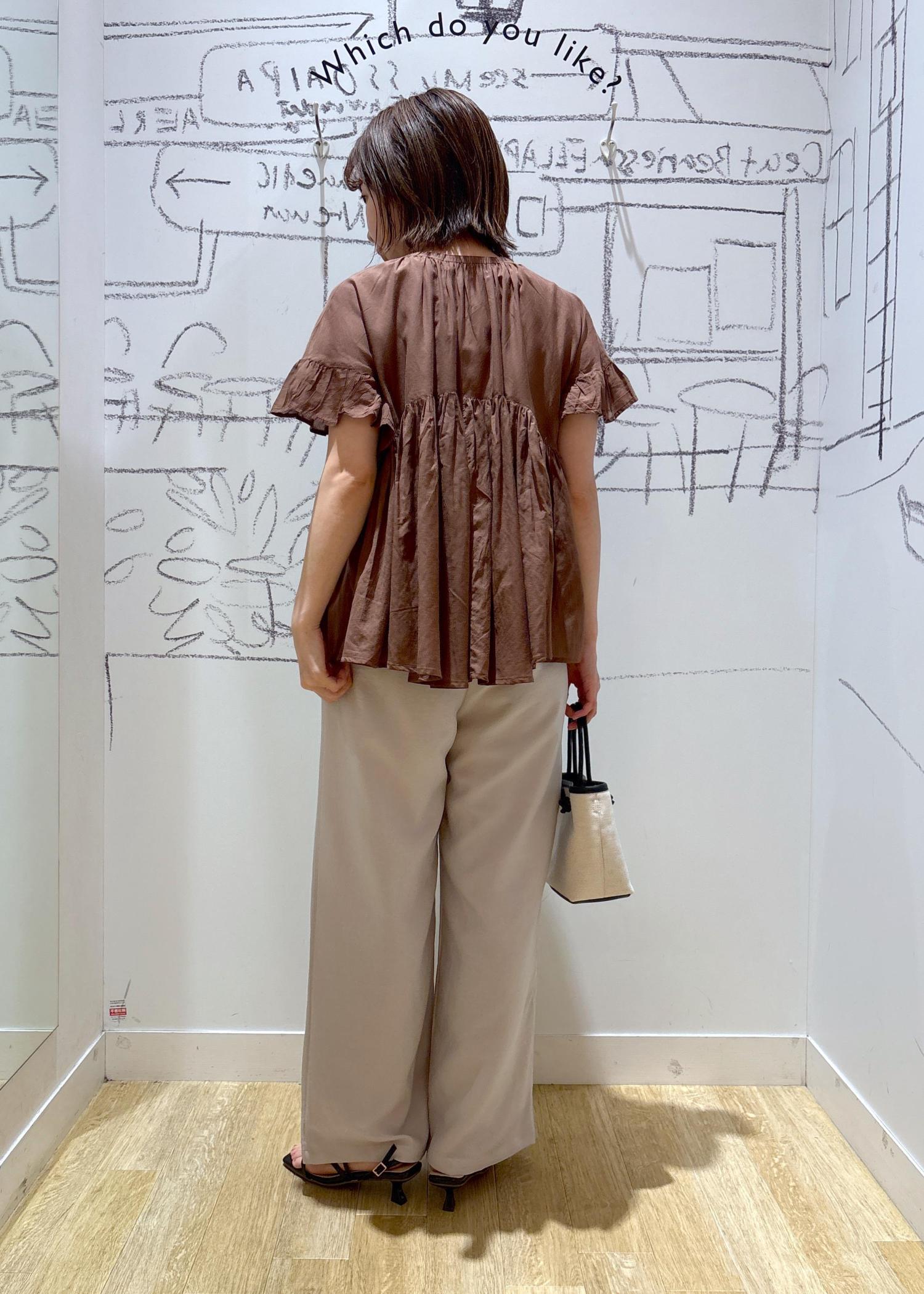 ゆったりとしたワイドシルエットでカラダのラインを拾いません。