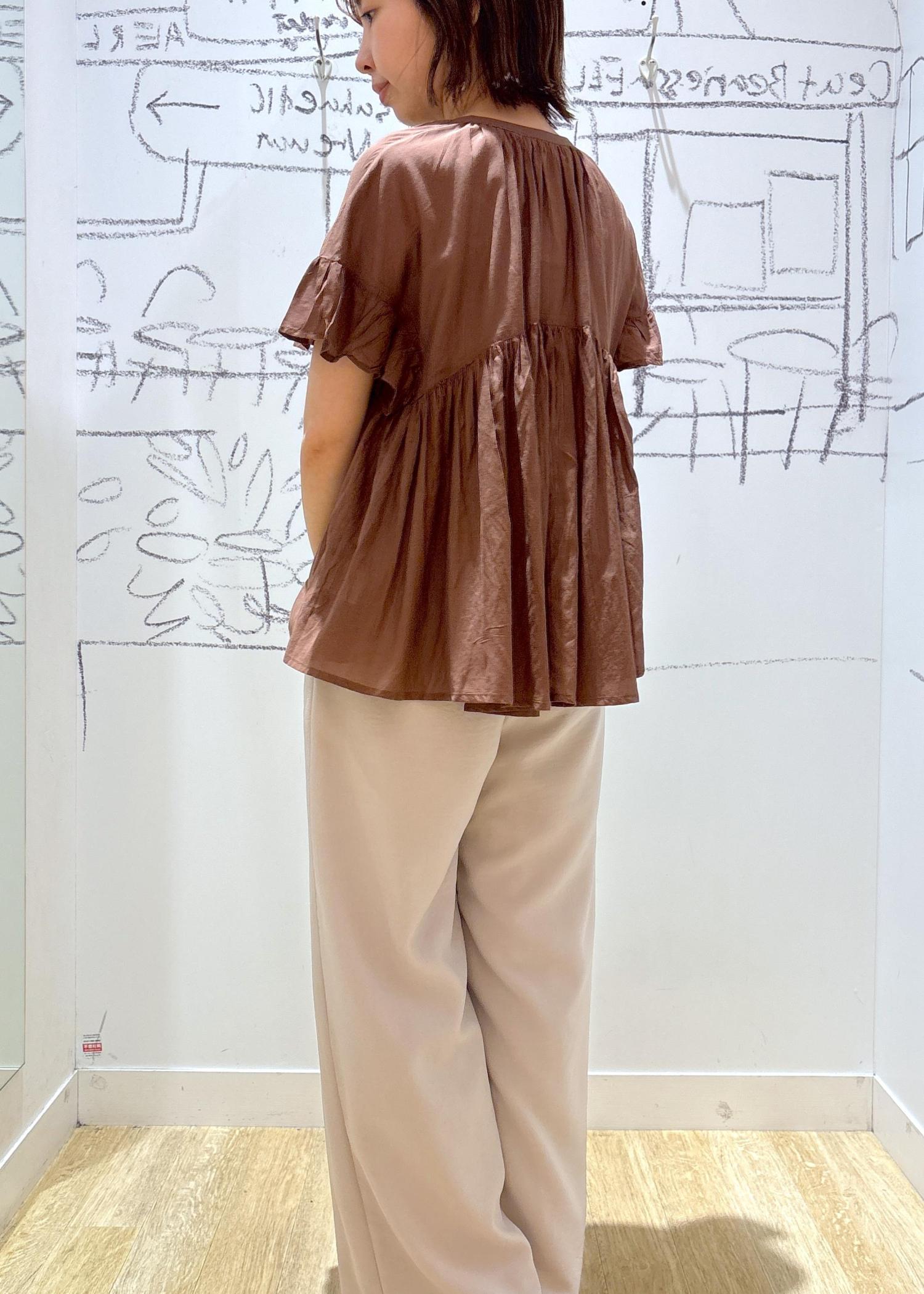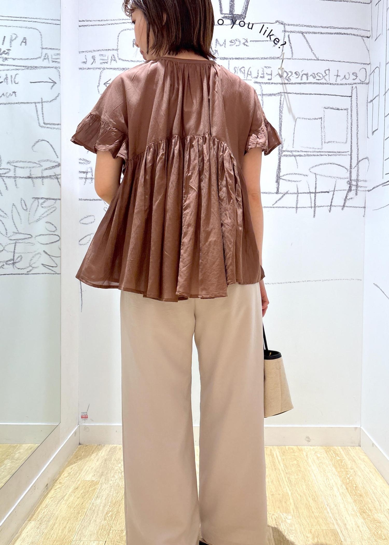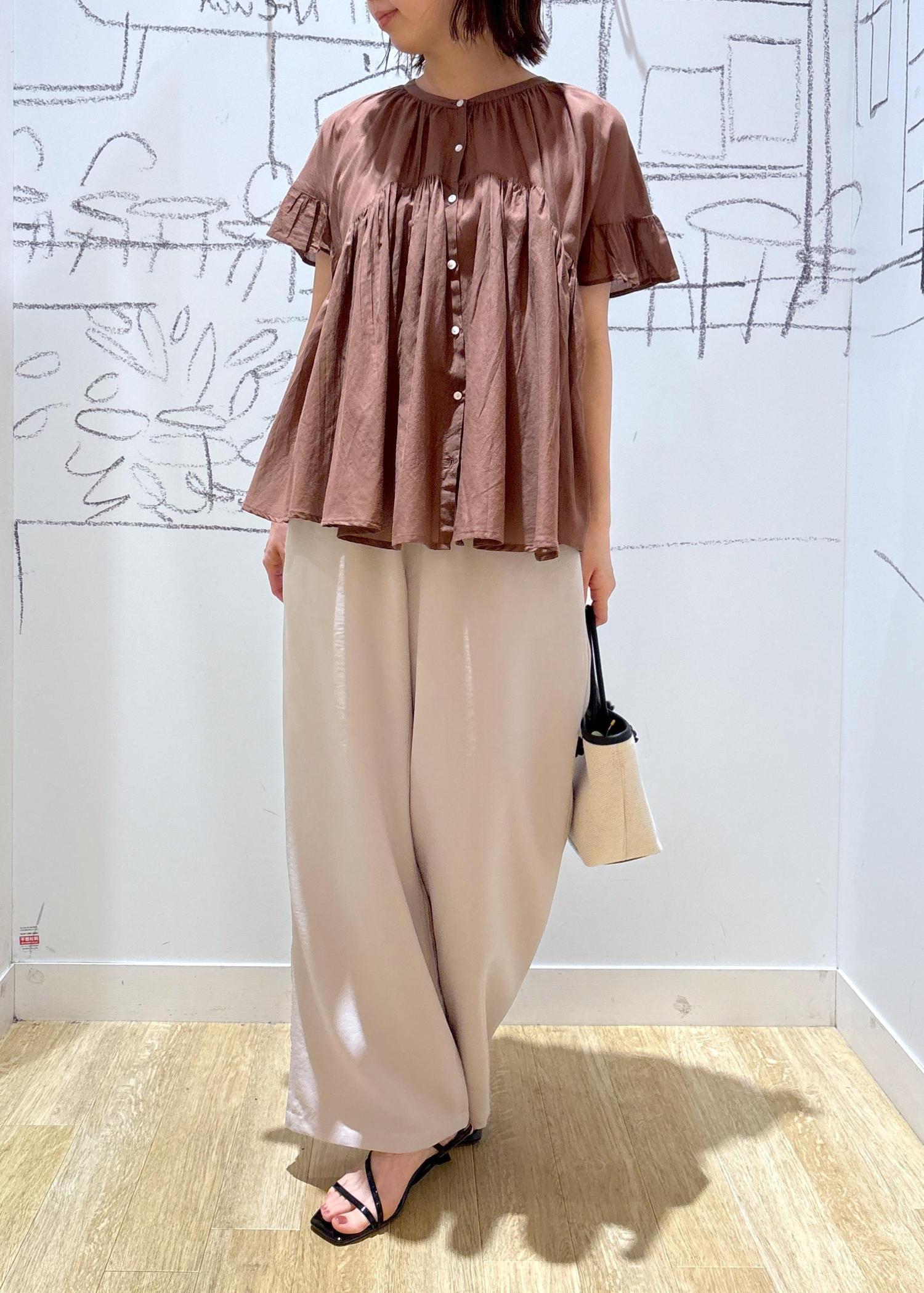 ゆったりとしたワイドシルエットでカラダのラインを拾いません。
