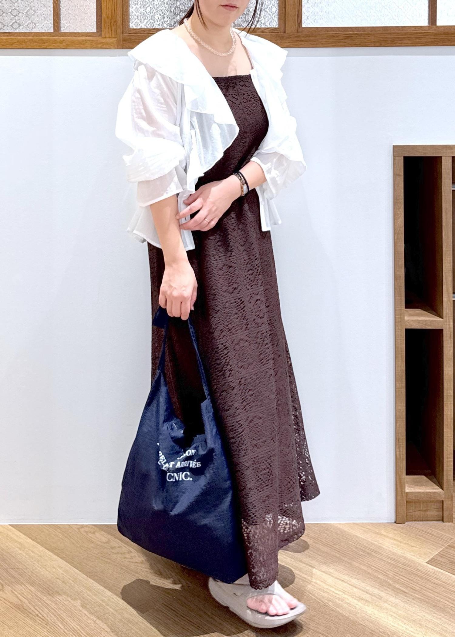レースワンピを今年らしさあるブラウンカラーで、