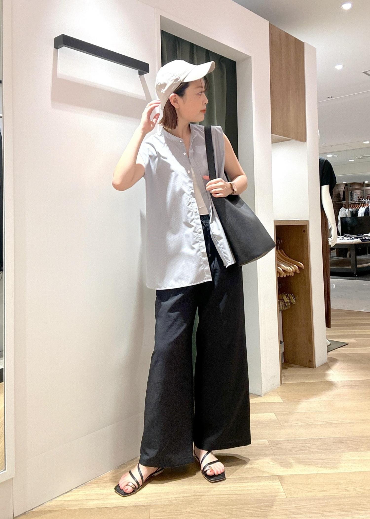 紫外線対策と、子供がいても動きやすい 涼しいを追求したスタイリングです! ラフすぎないサンダルや可愛いデザインのキャップでオシャレも楽しみましょう!