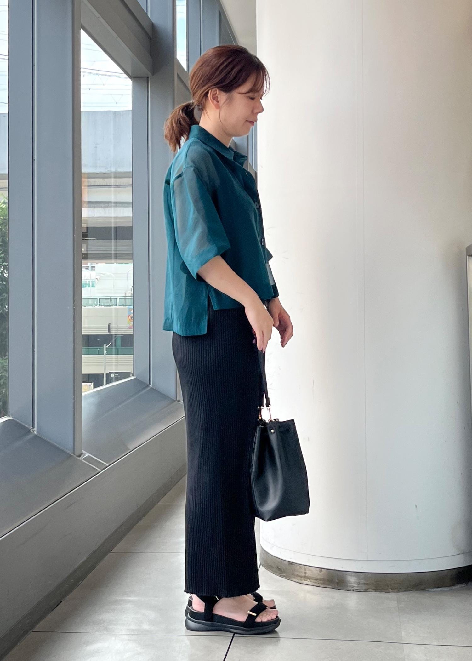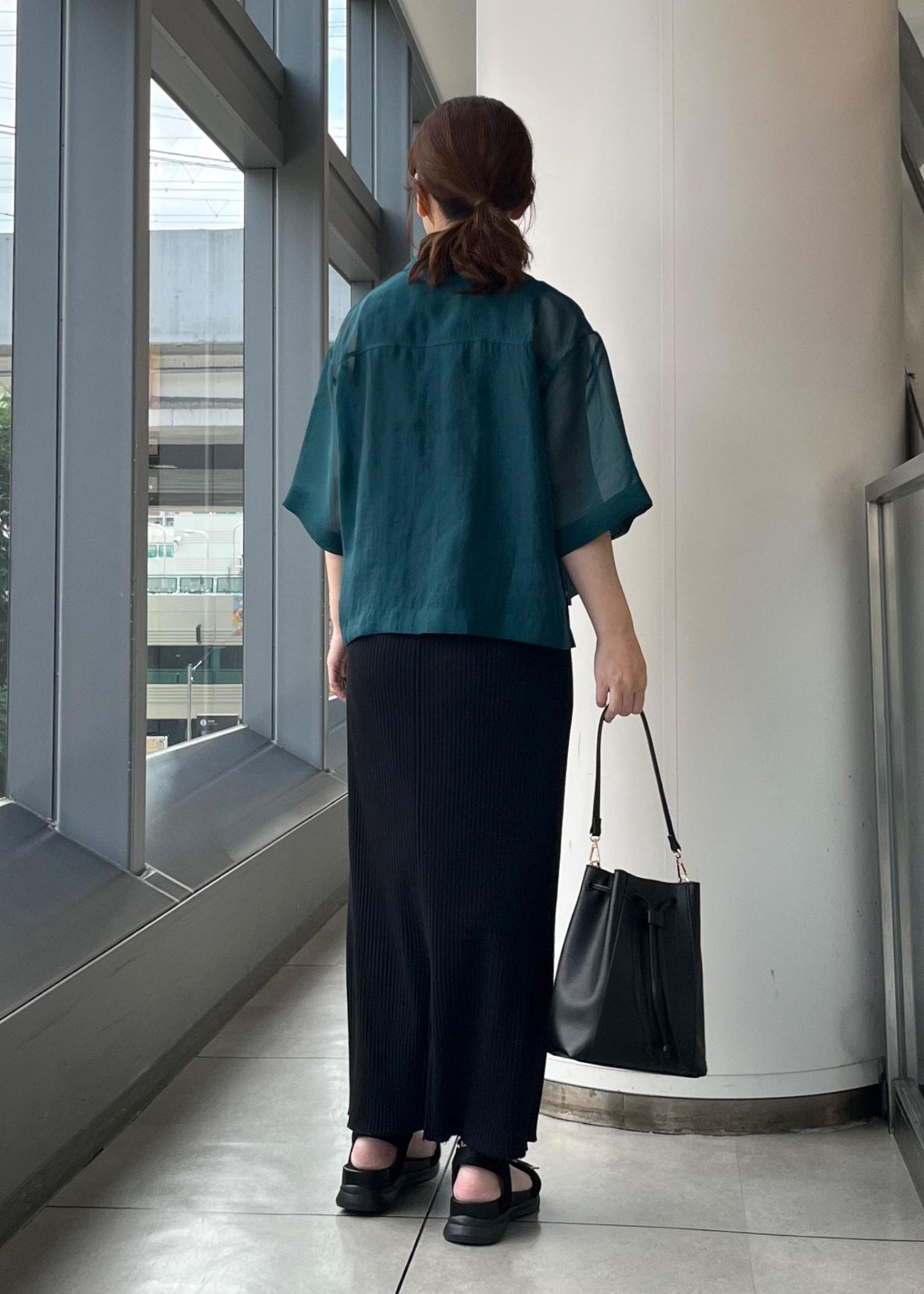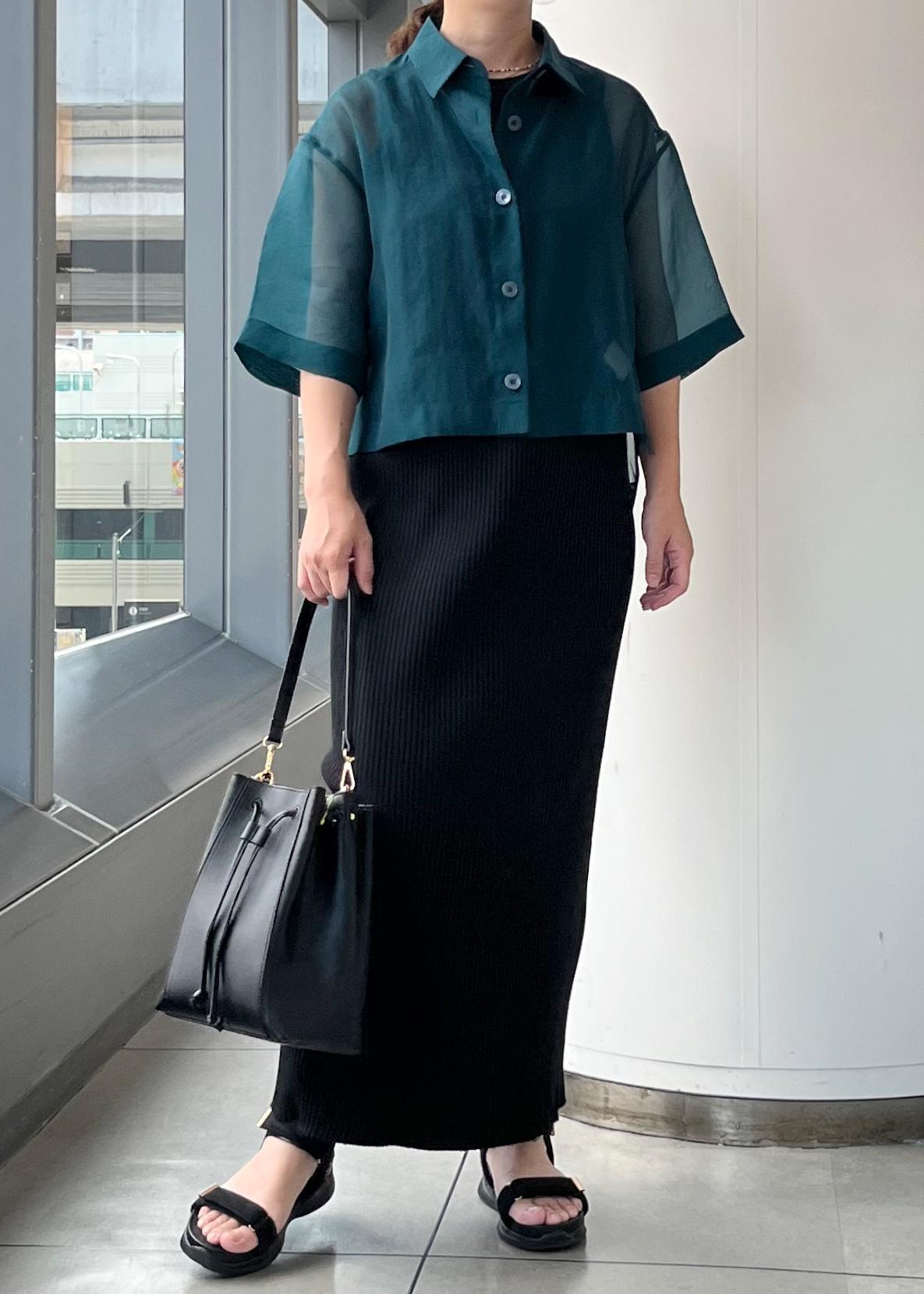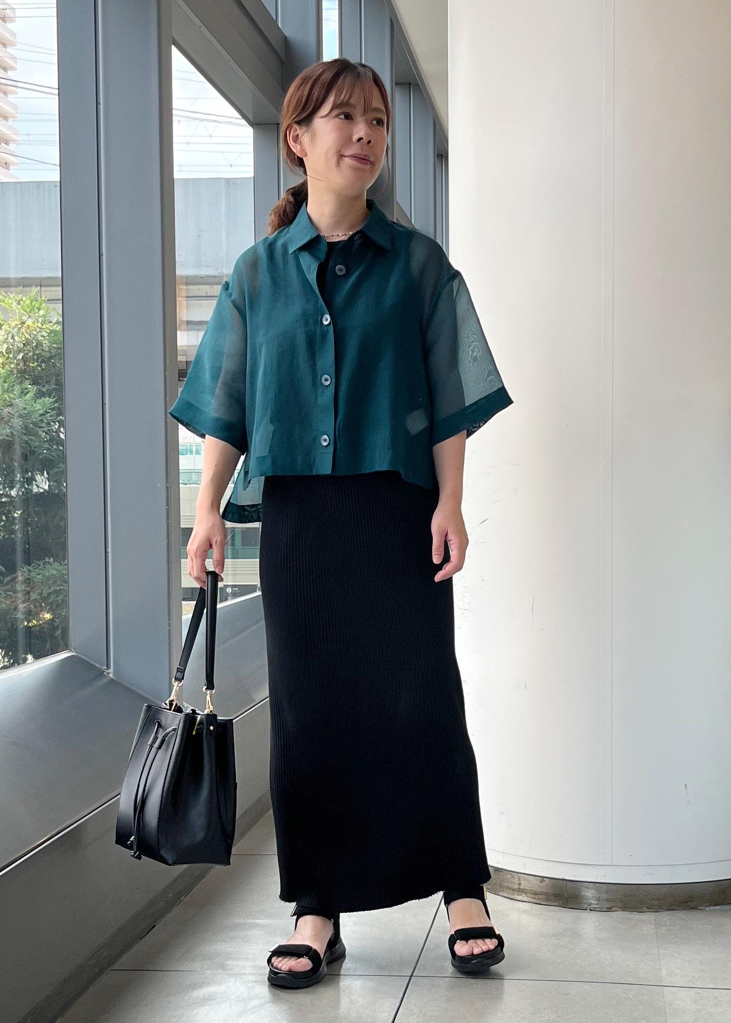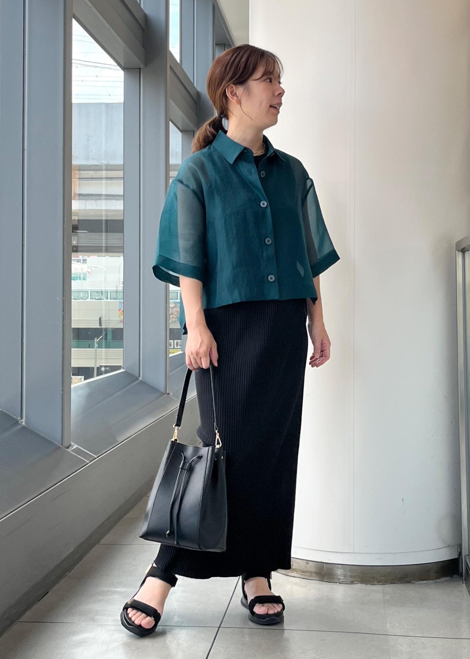 濃いめのグリーンにブラックを合わせて夏から初秋にかけてのスタイルです(^_^)