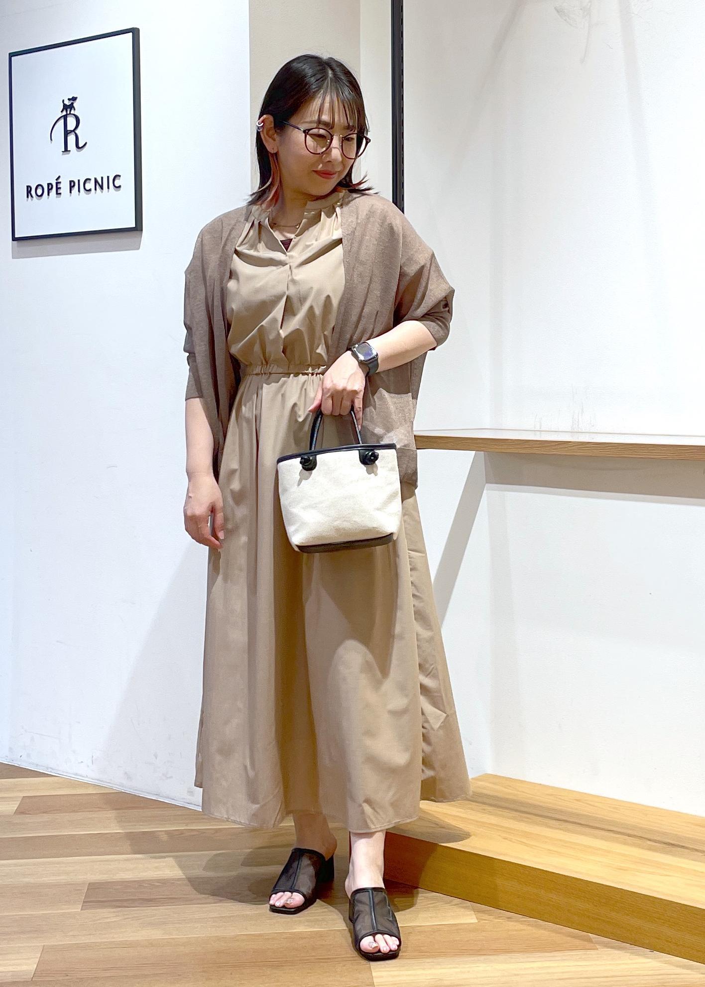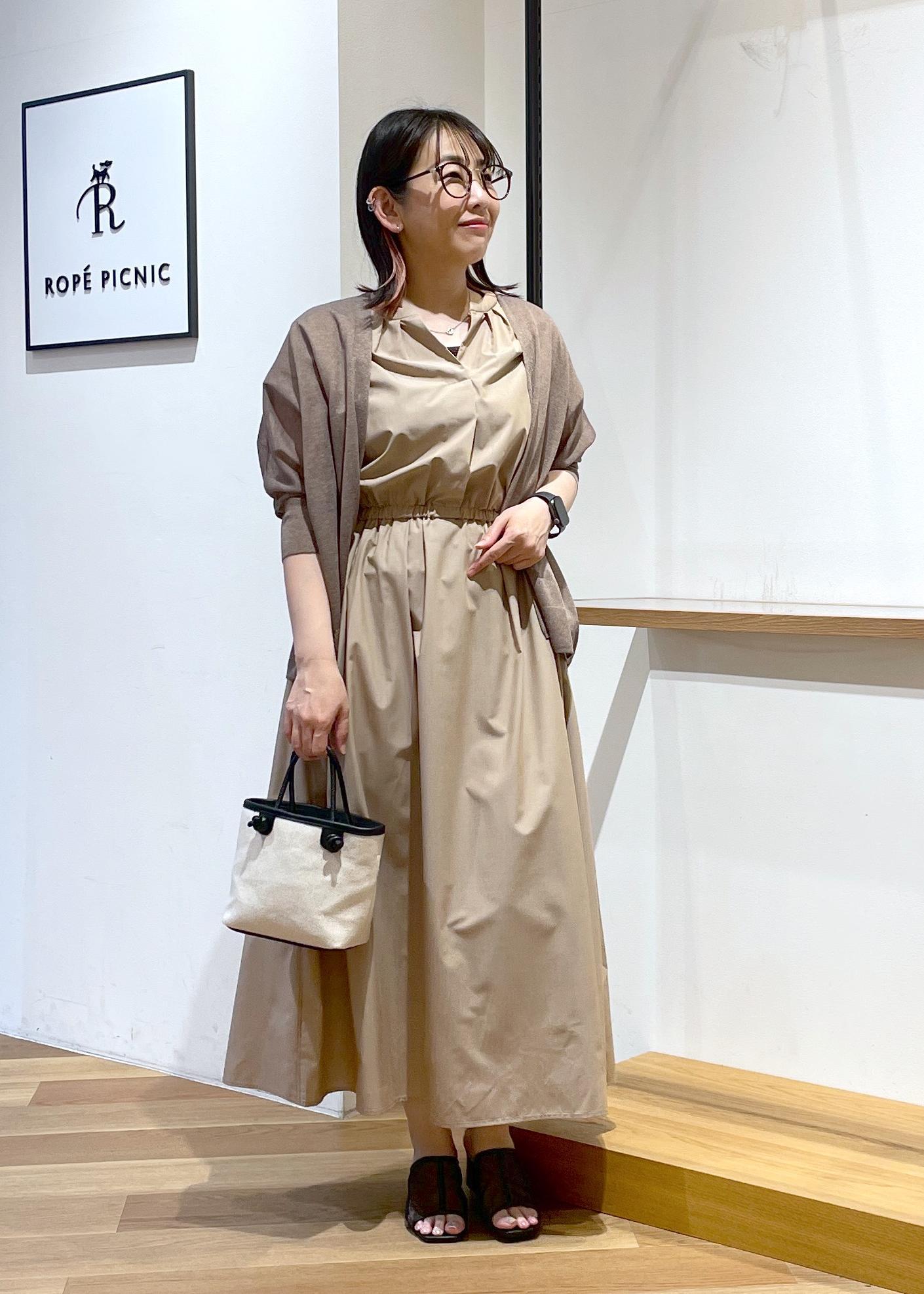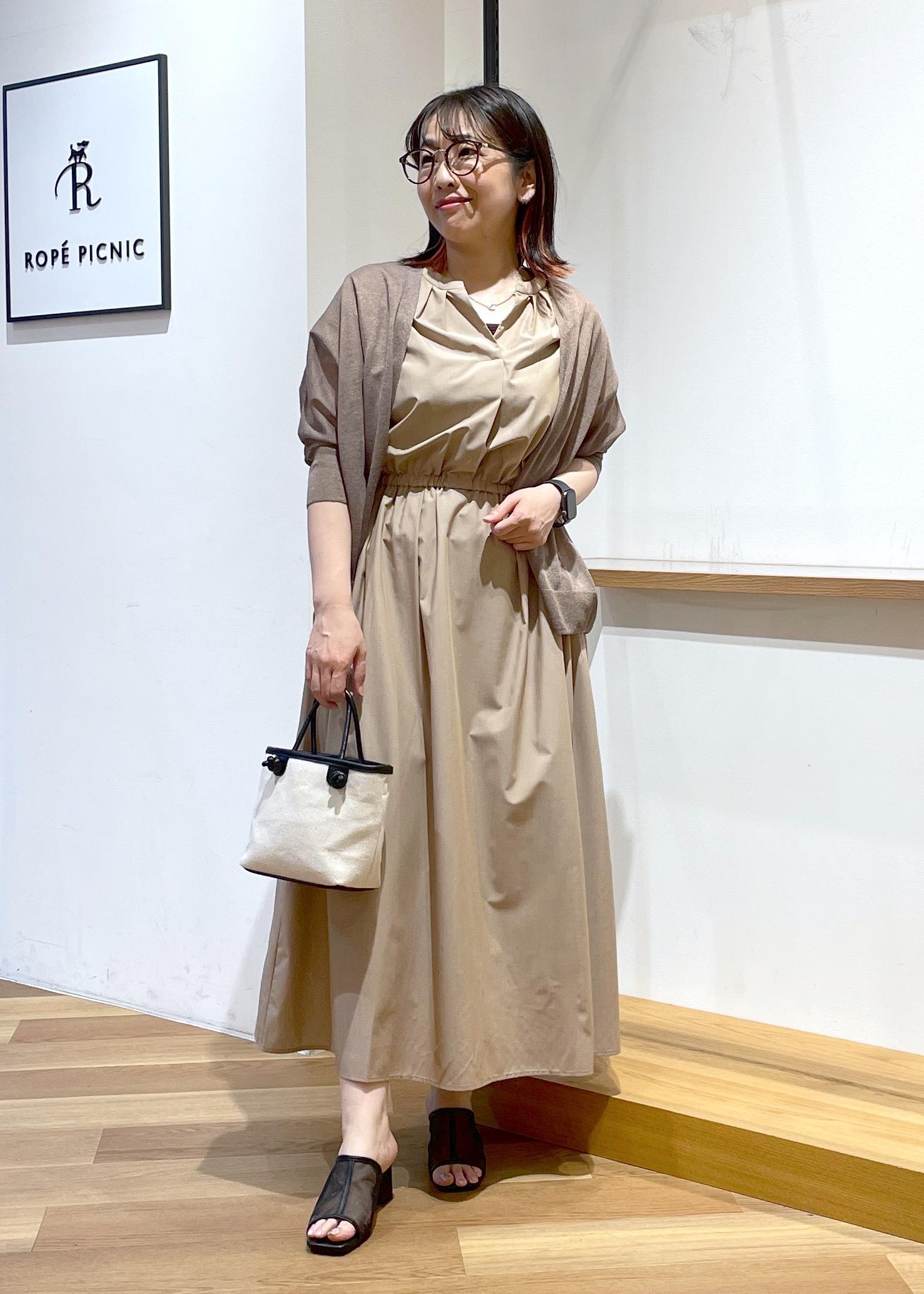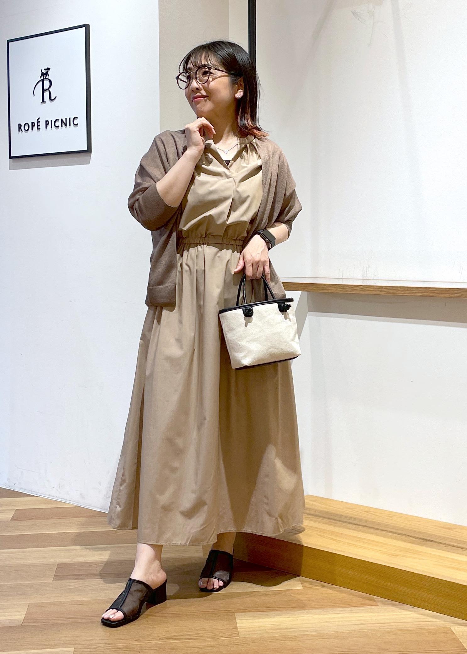 張り感のある素材で首元スッキリのスキッパーワンピです。ウエストにはゴムが入っていてスカートのラインがより綺麗に見えます○