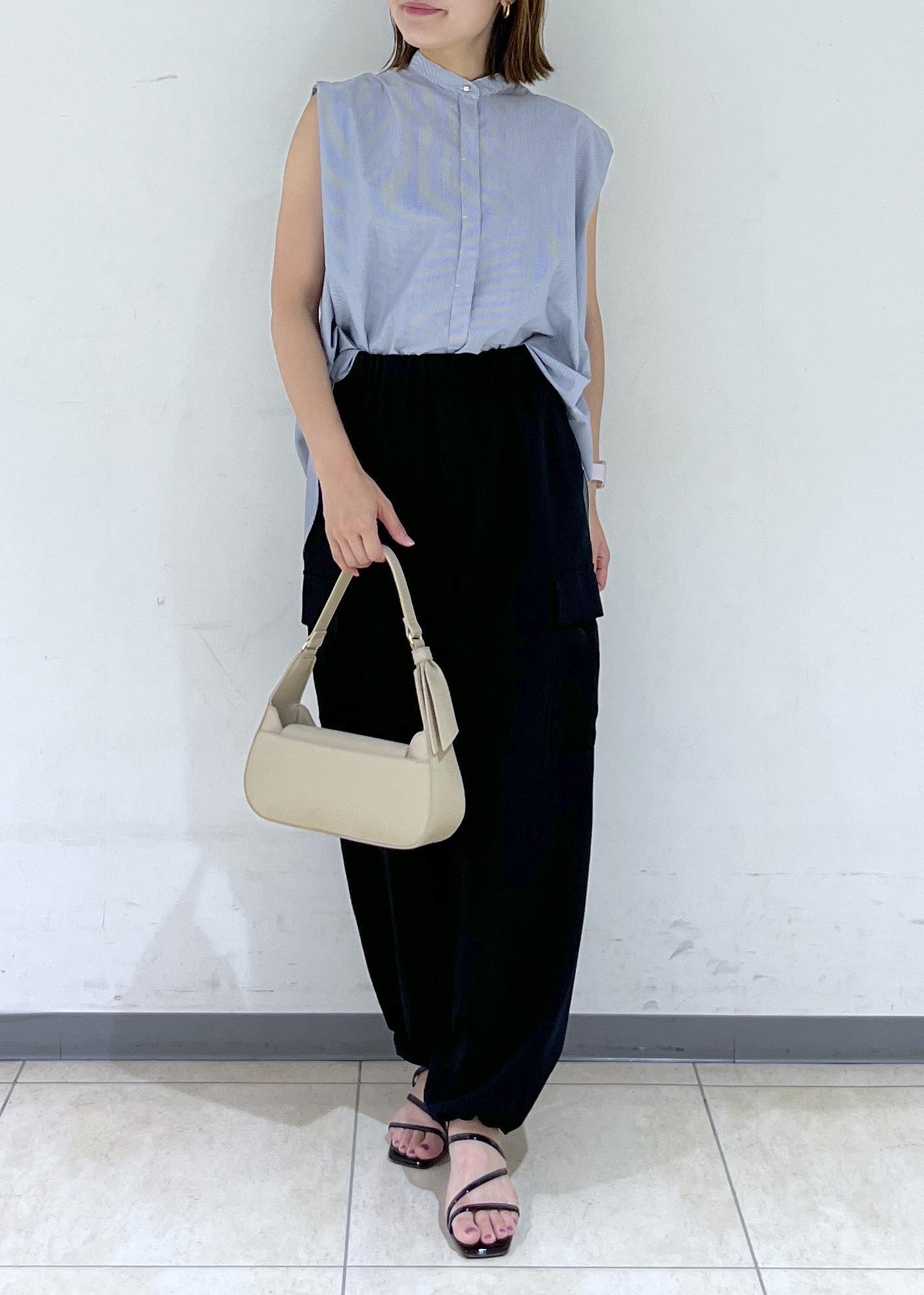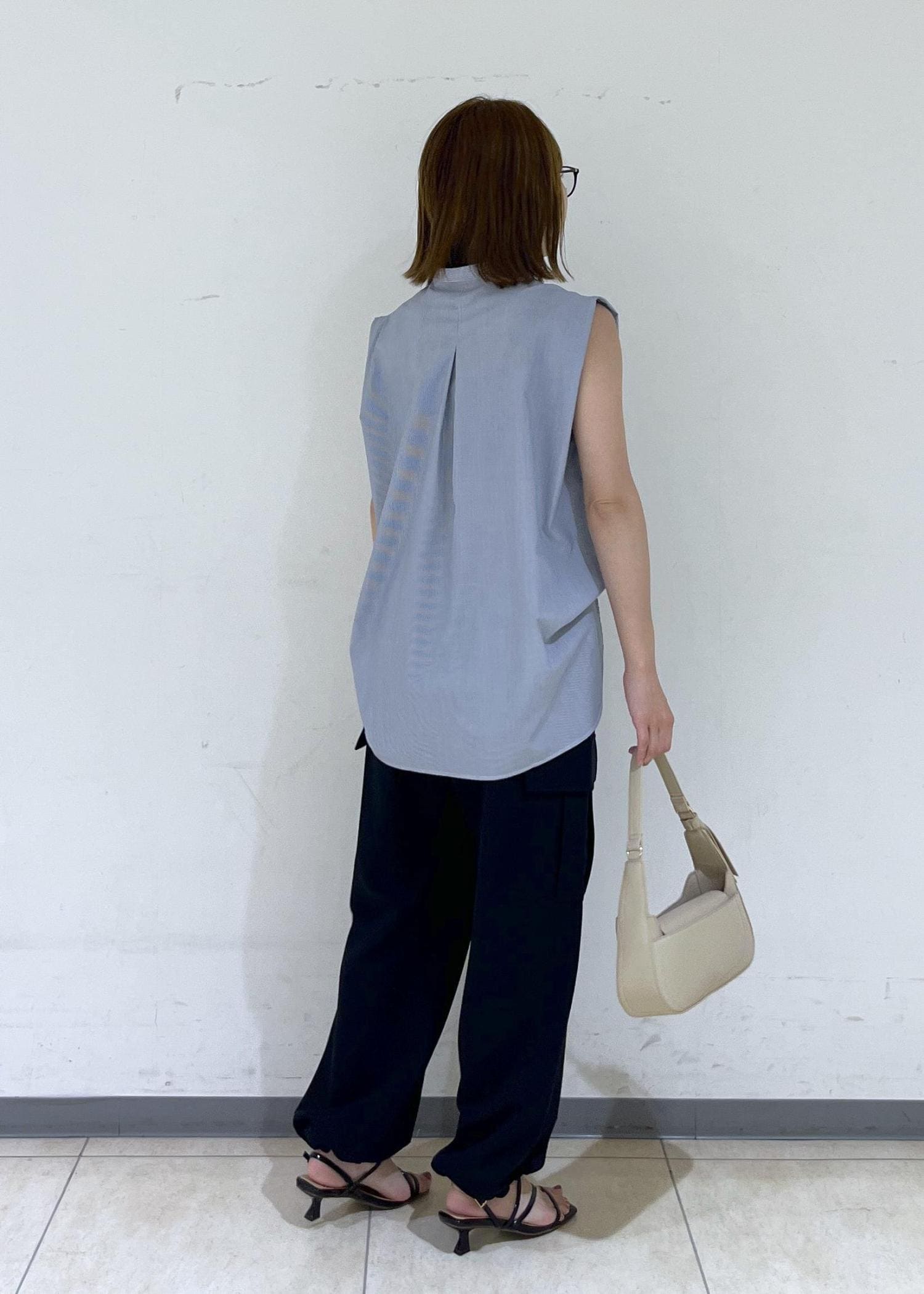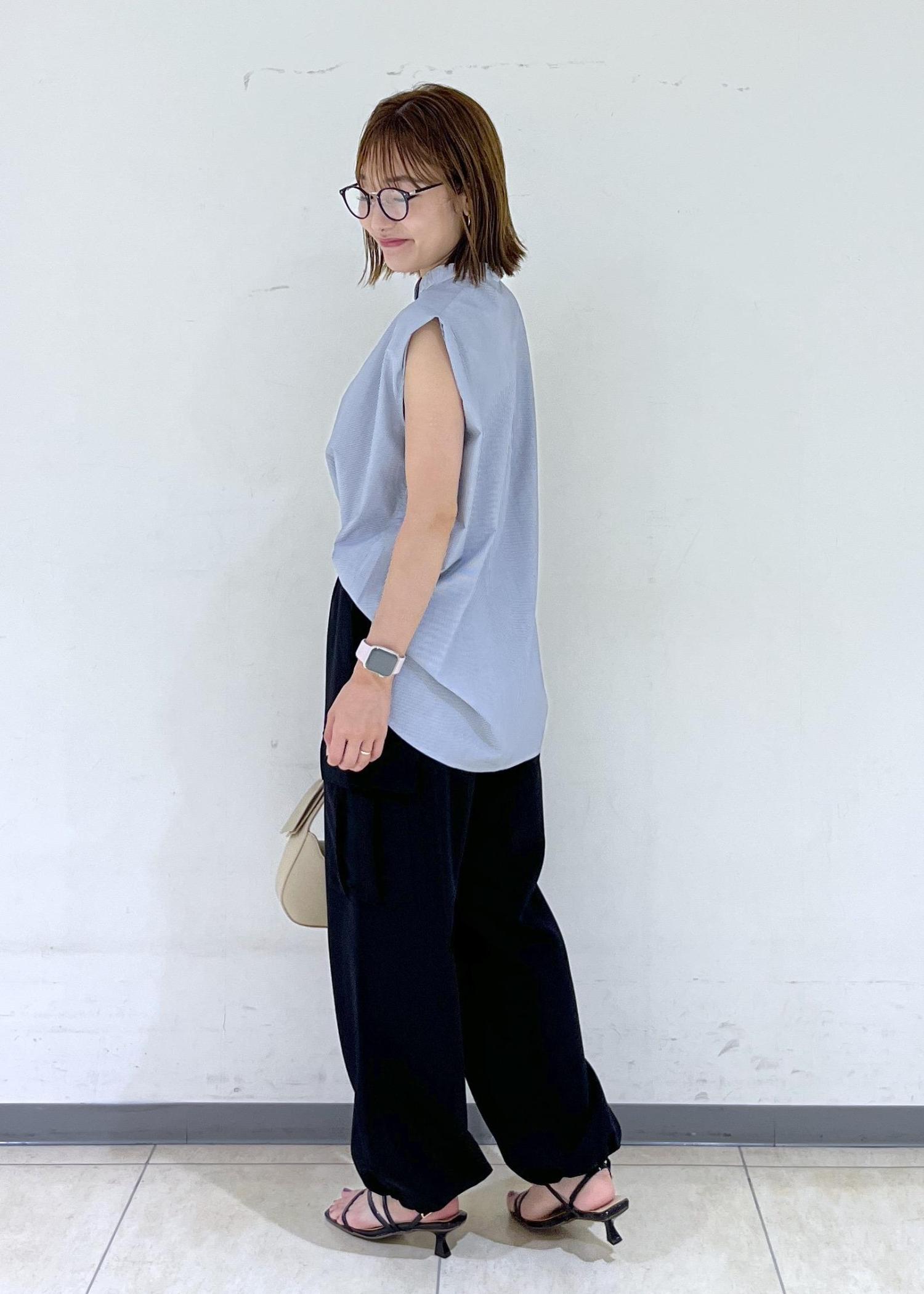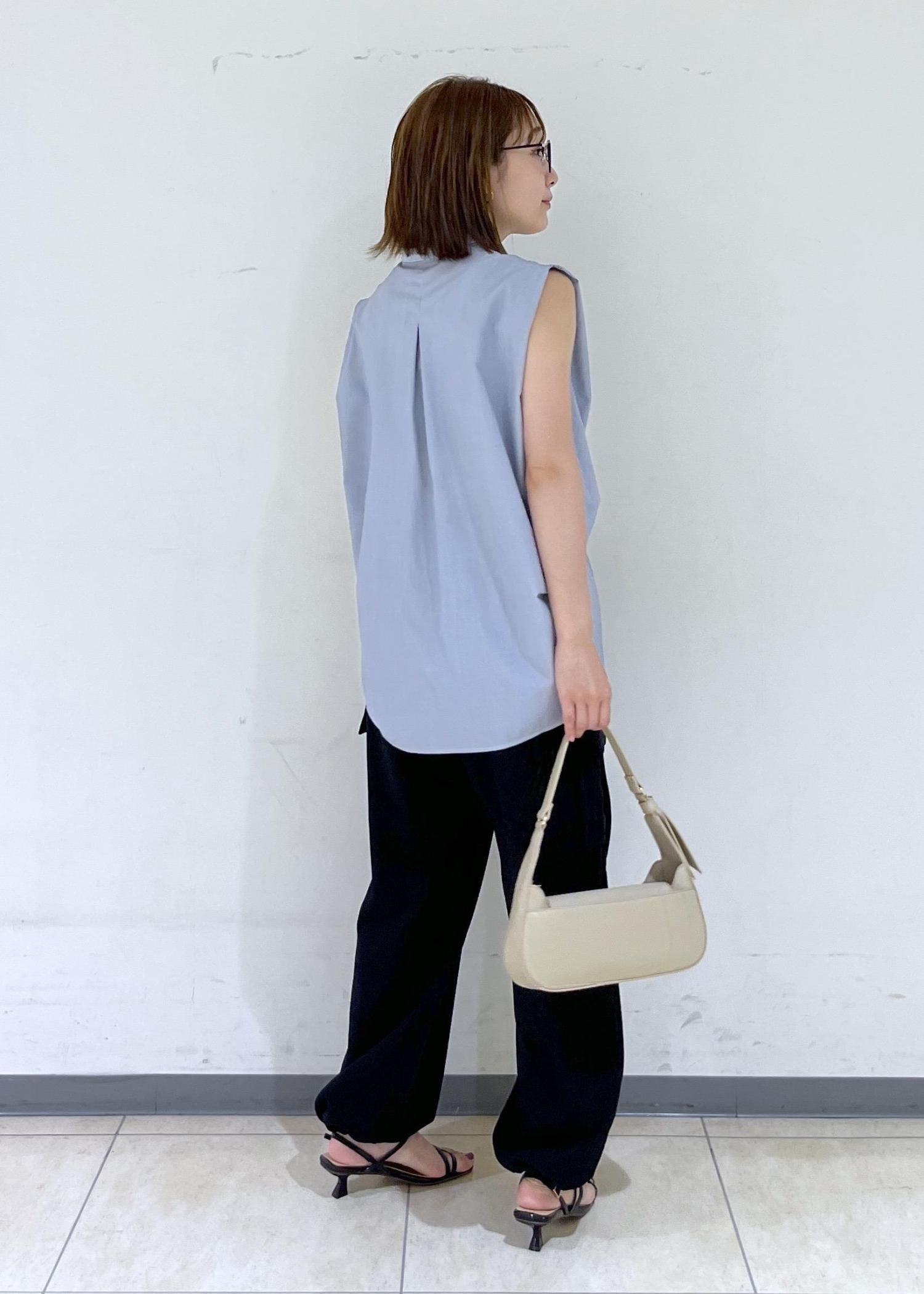 ノースリーブシャツはサラッとした生地感なので夏のお出かけコーデにもおすすめです!