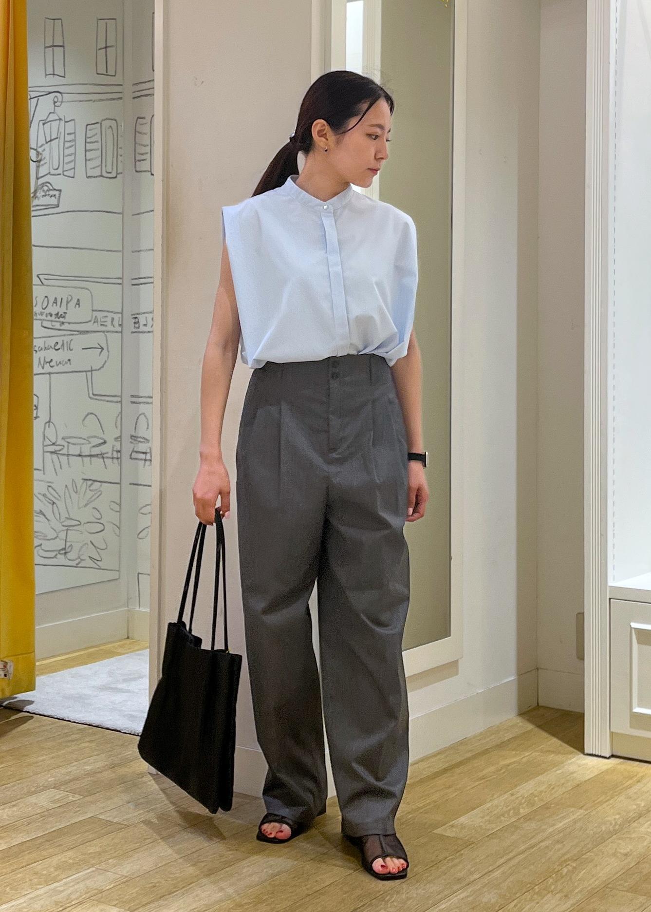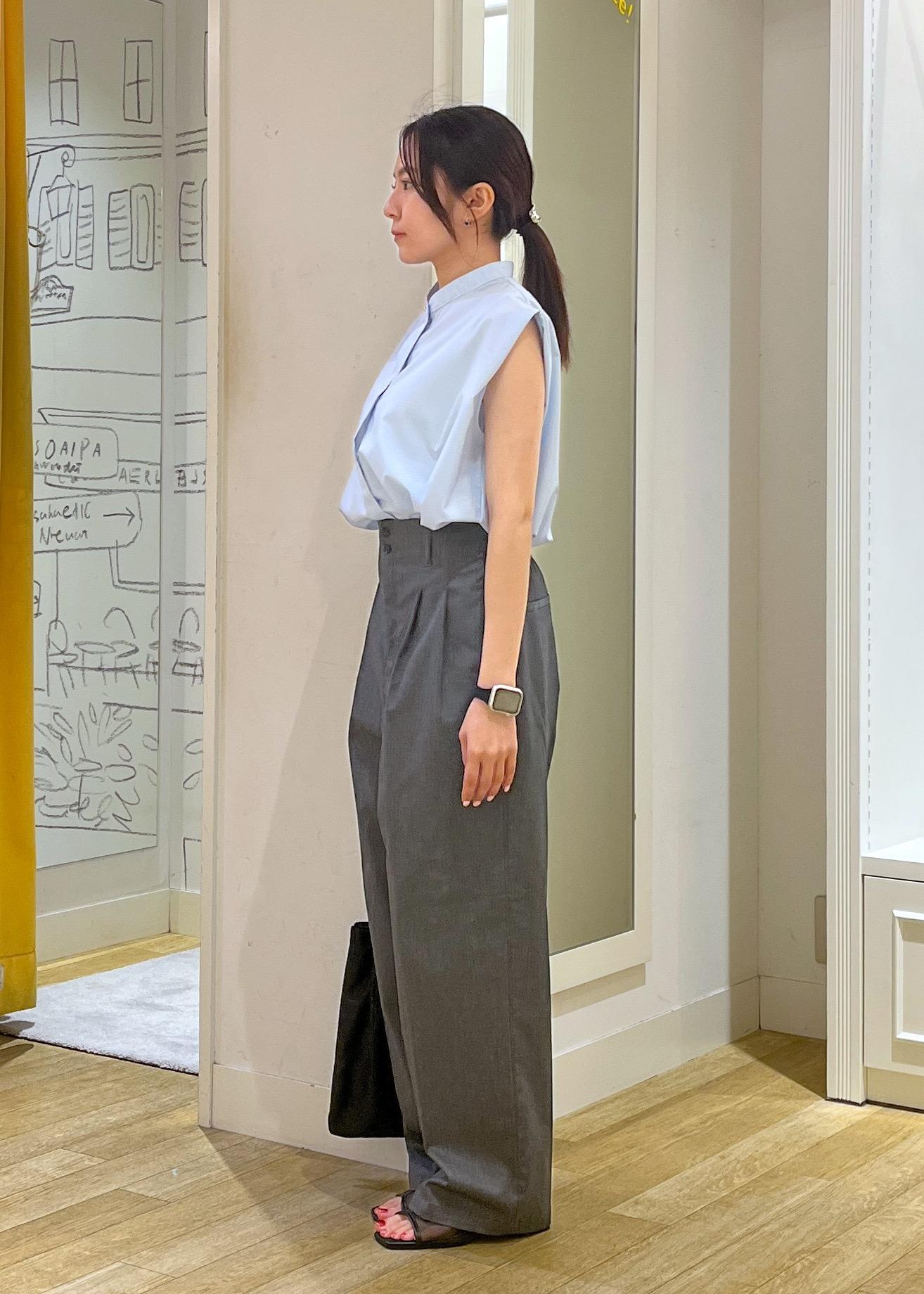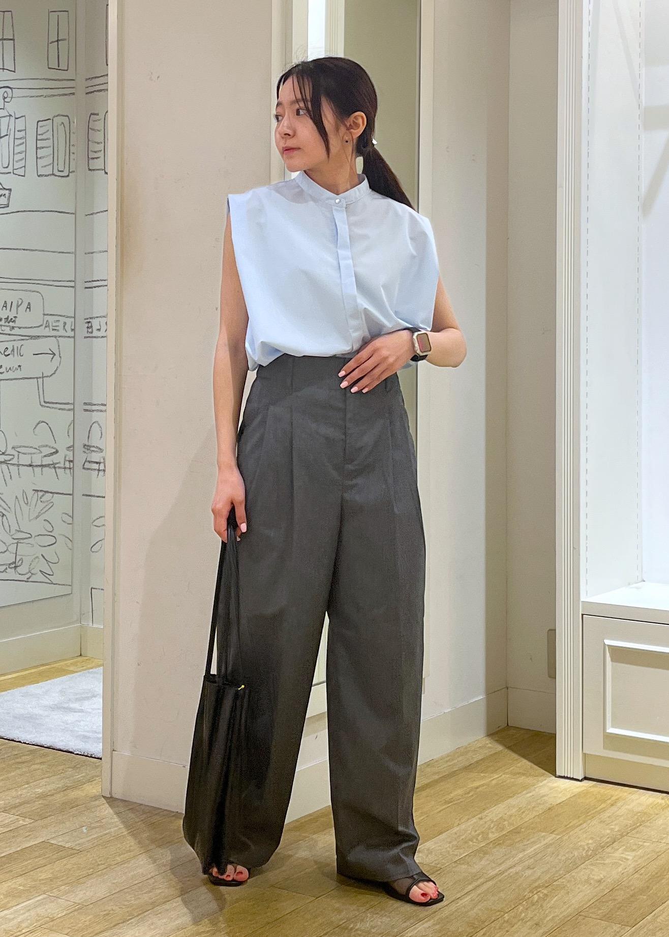 私は身長が低いので、シャツをインしてハイウェストパンツで脚長効果を!