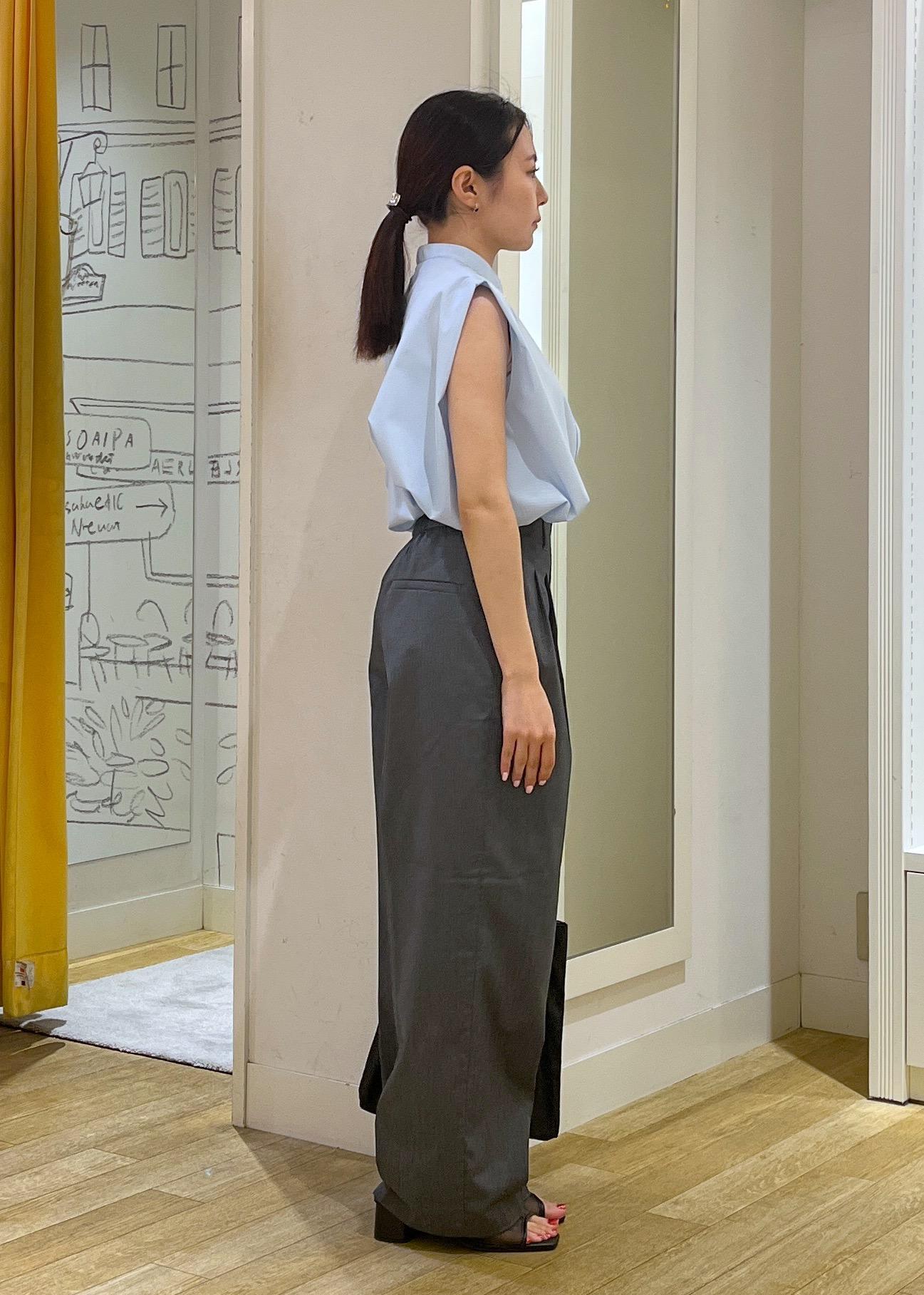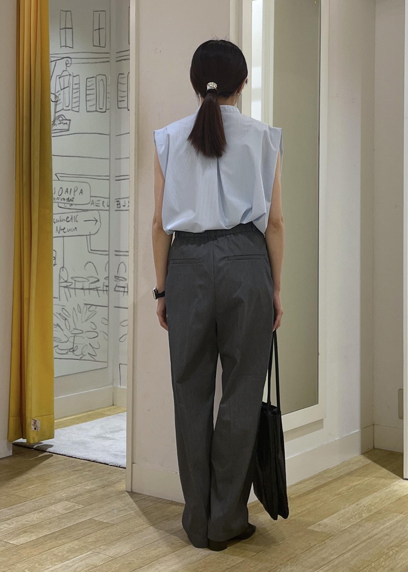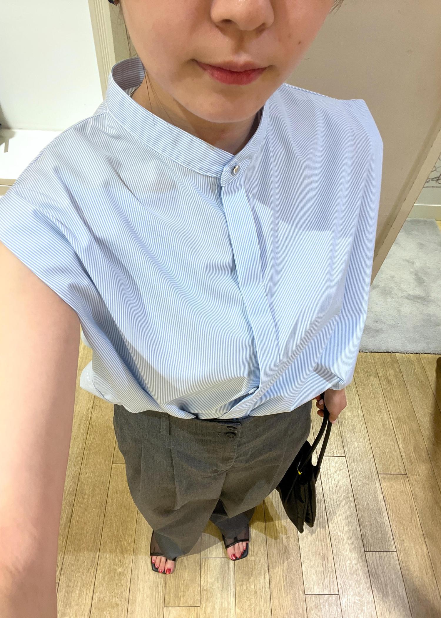 私は身長が低いので、シャツをインしてハイウェストパンツで脚長効果を!