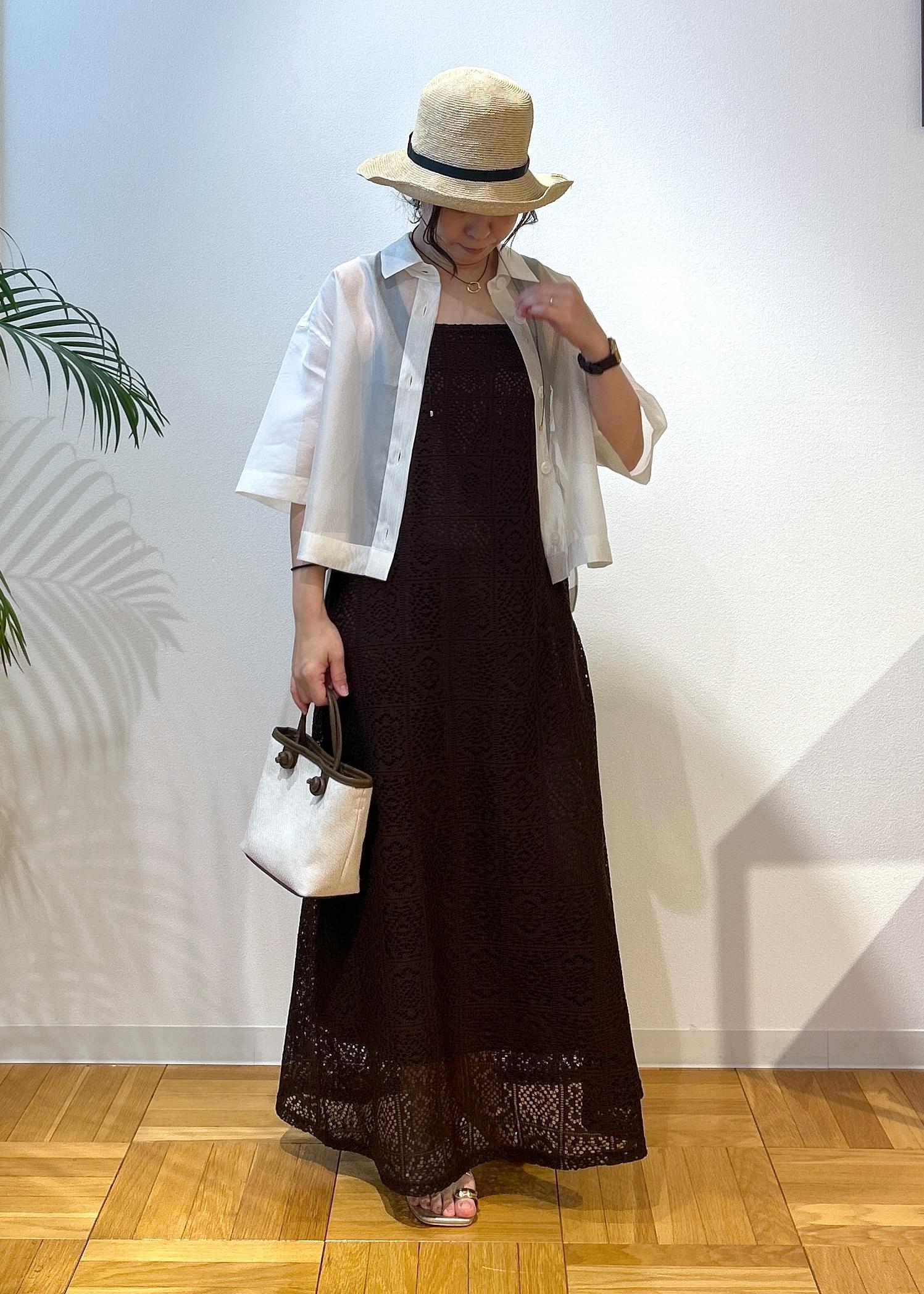 ナチュラルカラーでまとめて落ち着いた雰囲気に合わせにしました。ワンピースでシワも気にならないタイプなので旅行にはぴったりの動きやすくて涼しく楽なスタリングにしてみました。