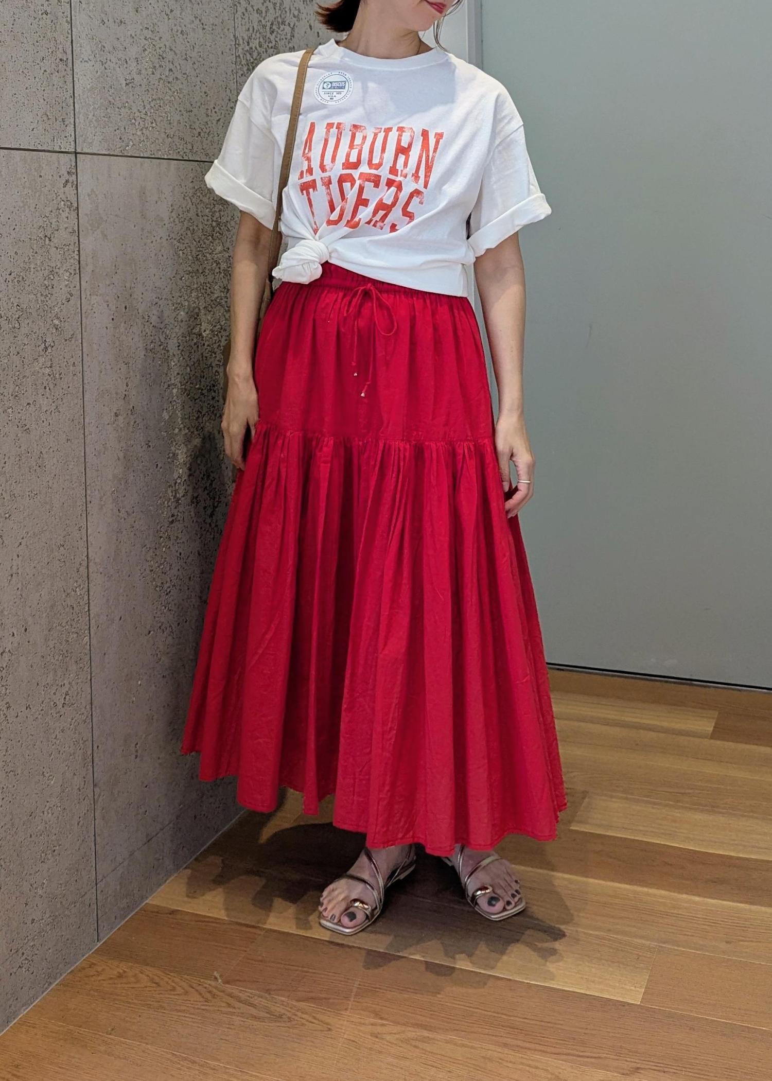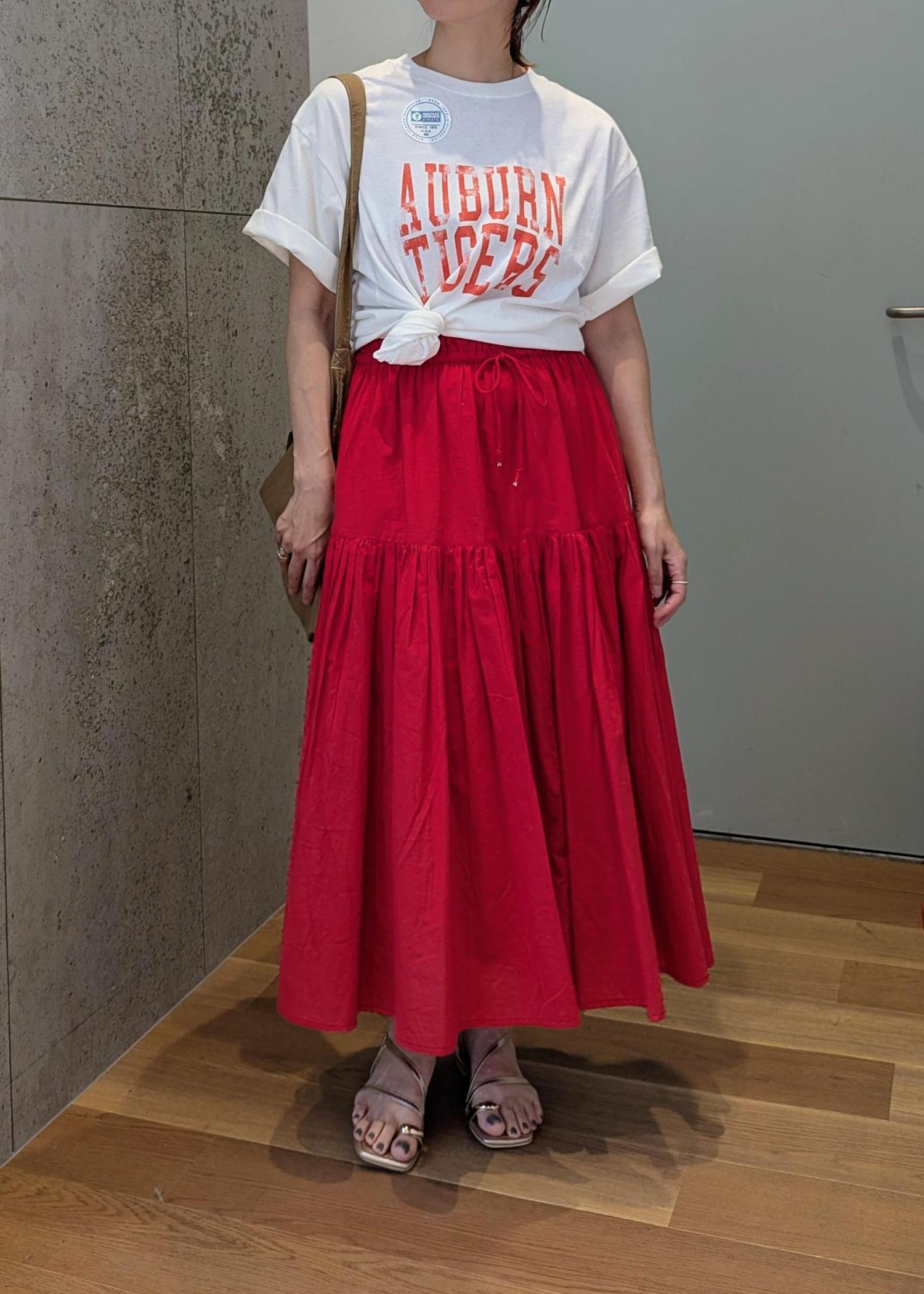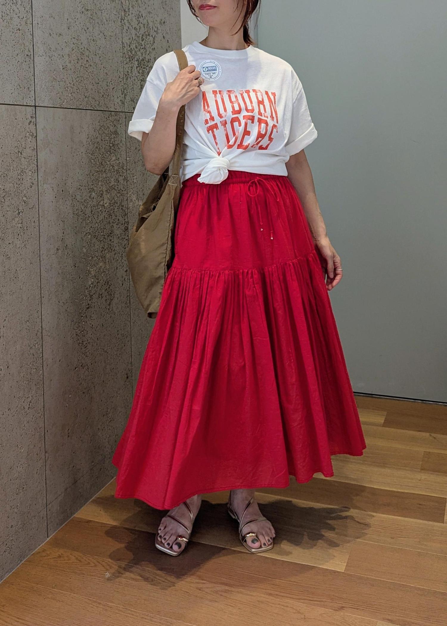 ROPÉ PICNICコットンボイルティアードワンピースレッド / 38¥6,490レビュー肌触りも柔らかく透け感もあまりないので1枚で着やすいです。ボトム部分はボリュームがありますが、ウエスト切り替えで絞れるのでフェミニンなシルエットで着ぶくれしにくいです。ポケット付きなのも便利です。