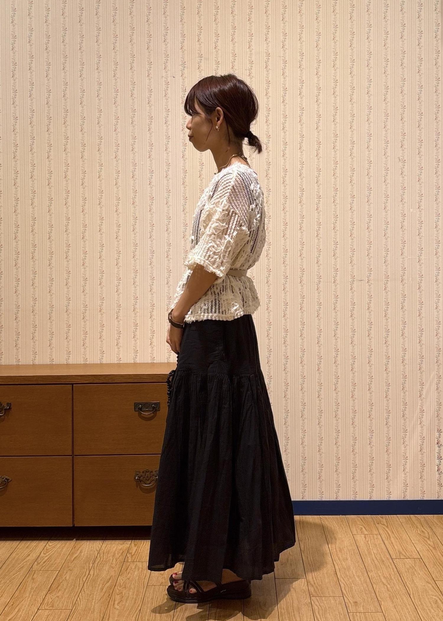 ボリュームが出過ぎないよう裾広がりのAラインシルエットで