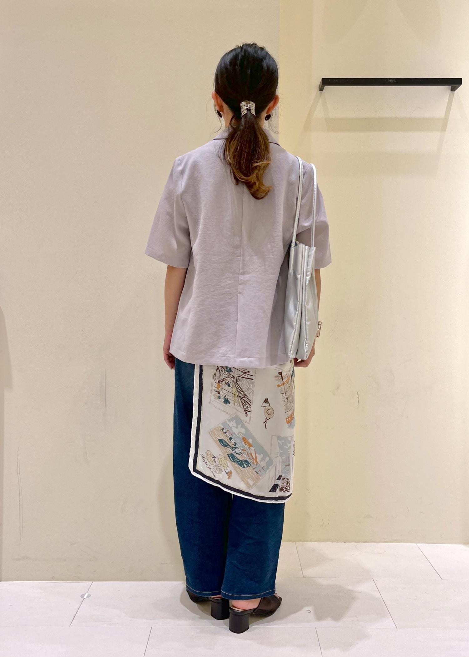 同素材でテーパードパンツとワイドパンツも展開があるので夏のオフィスコーデにも◎ -