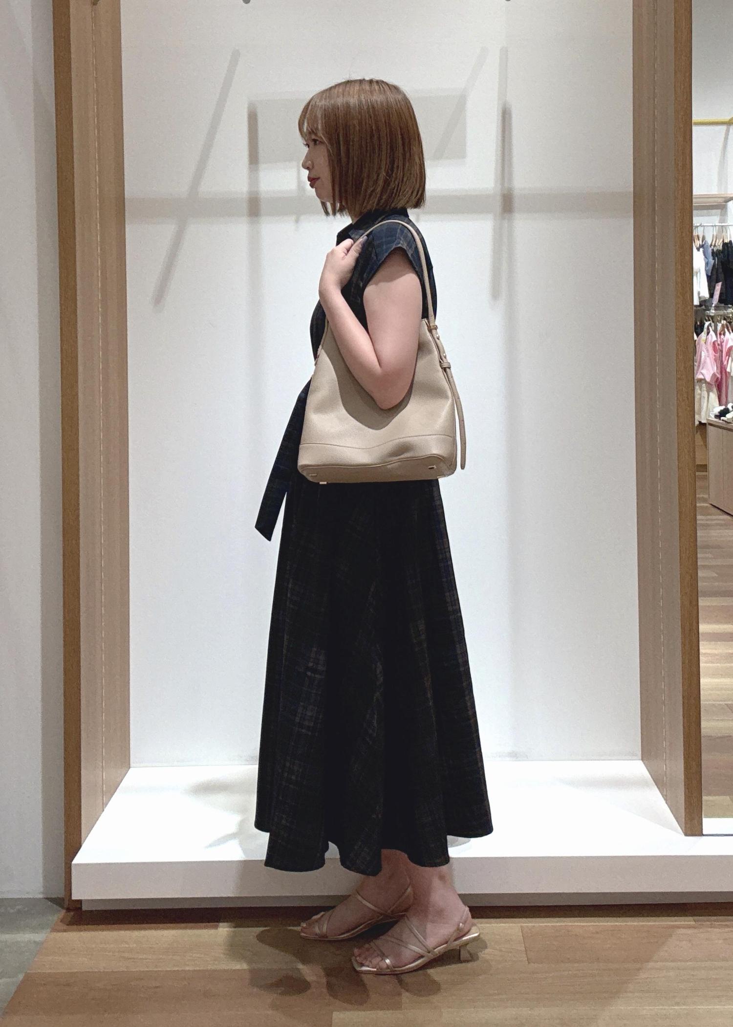 サラッとした素材感で暑い時期からでも秋を取り入れるワンピです。