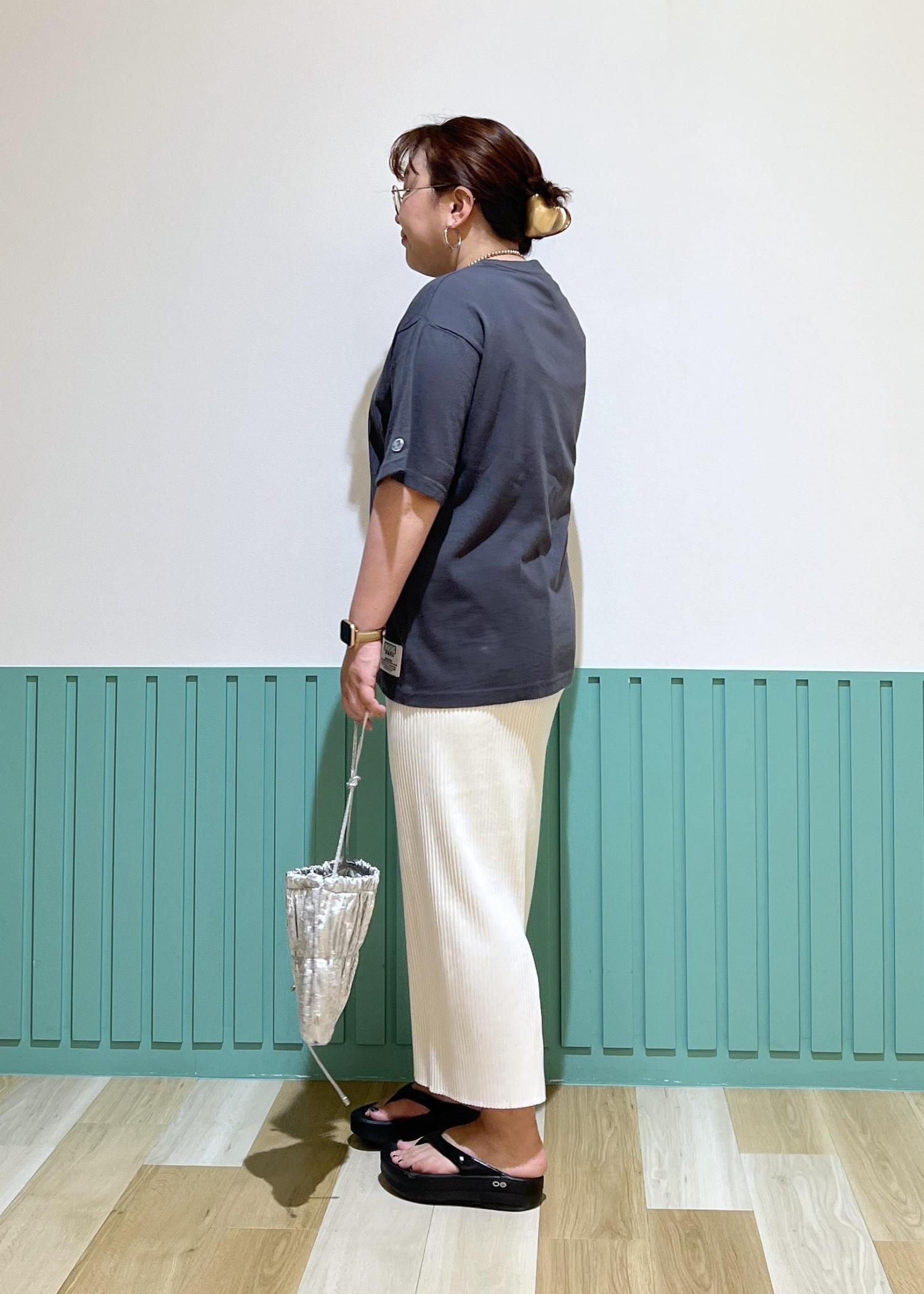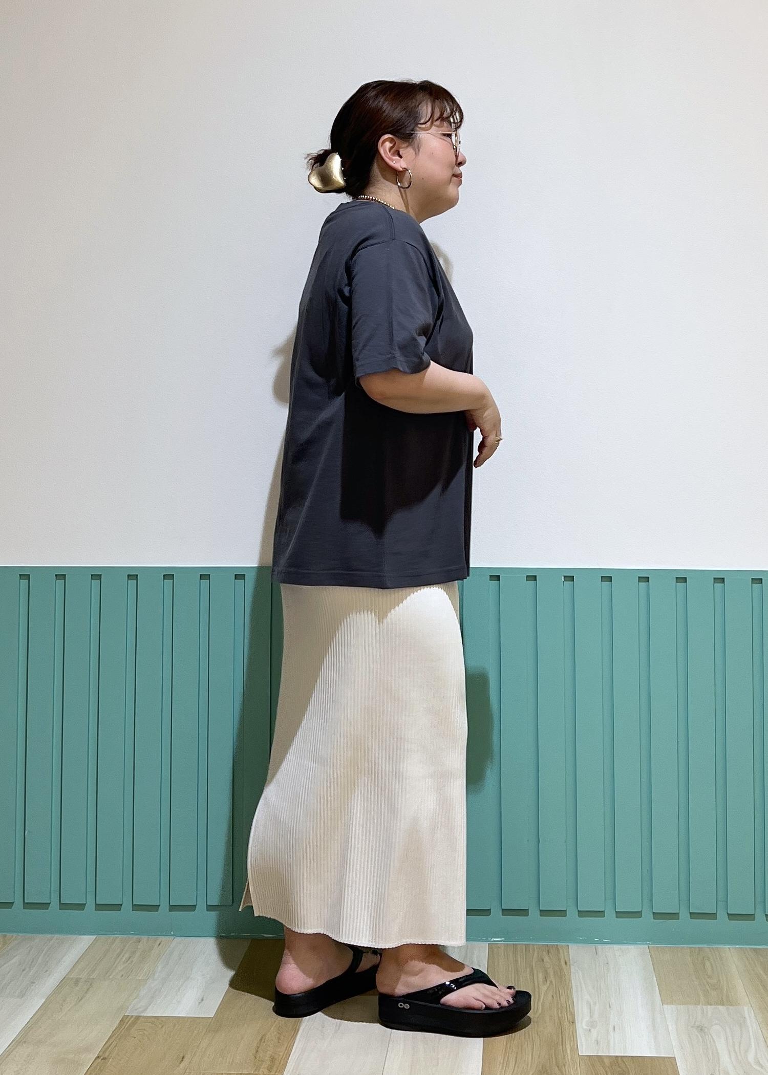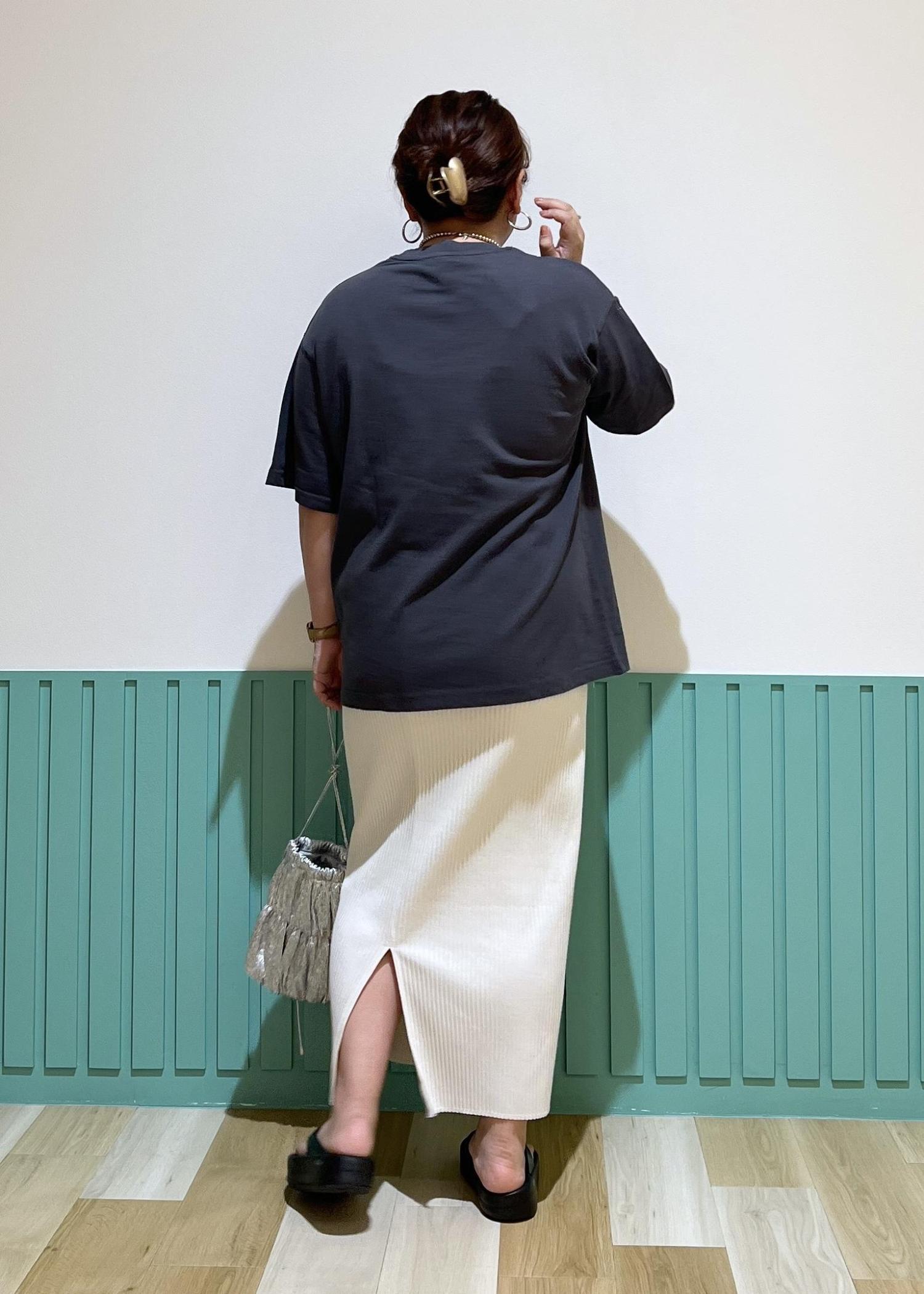 ゆったりとしたTシャツにタイトスカートを合わせた