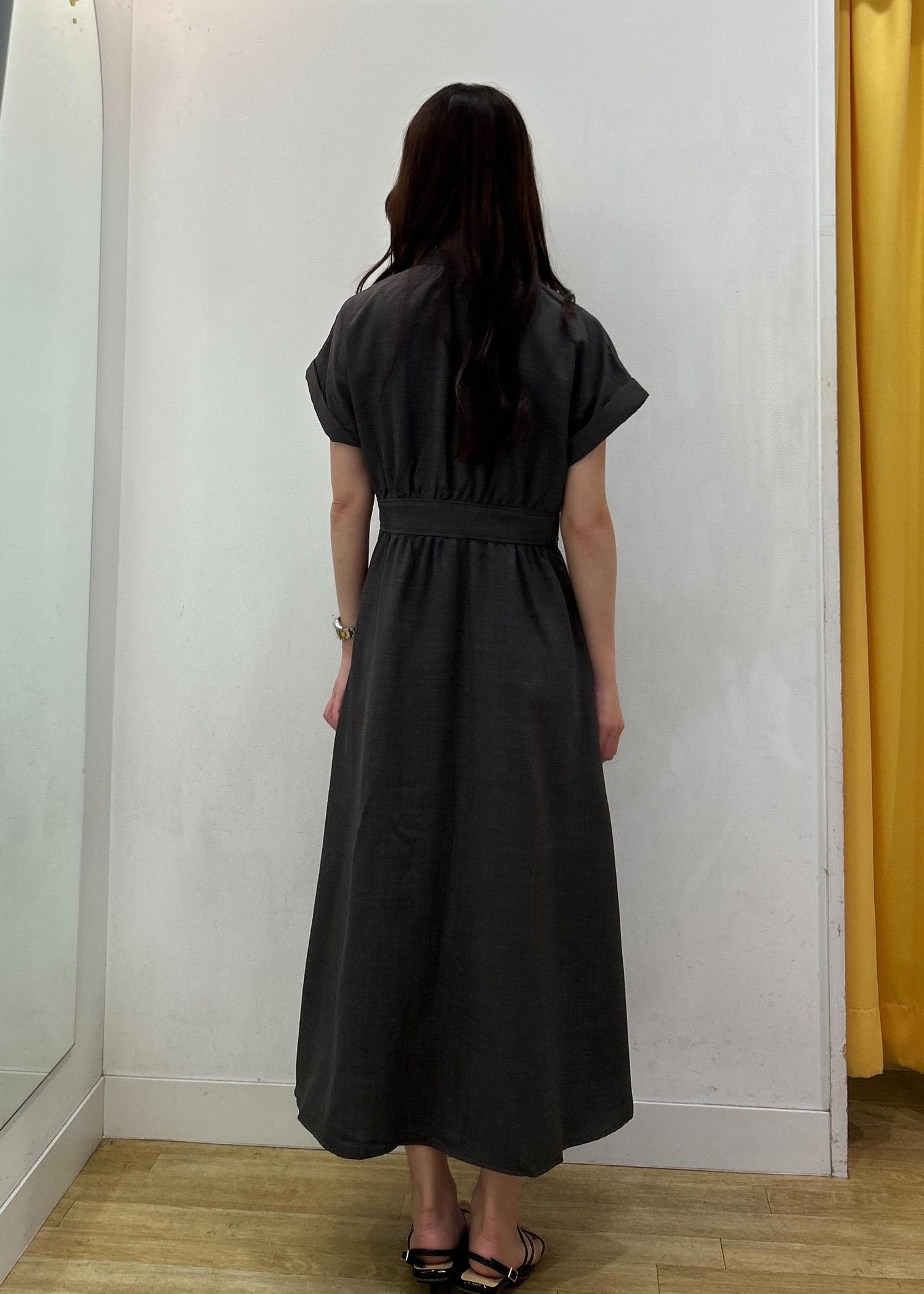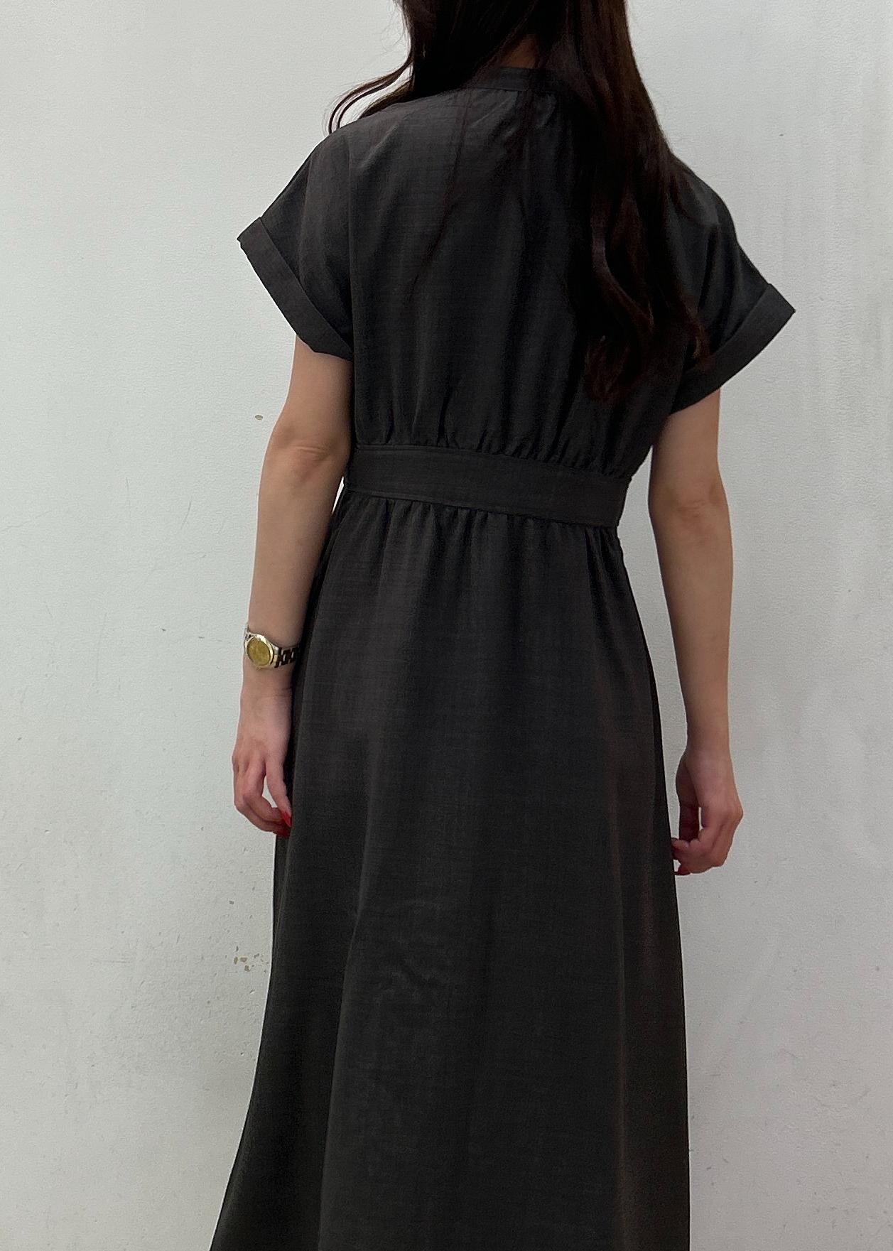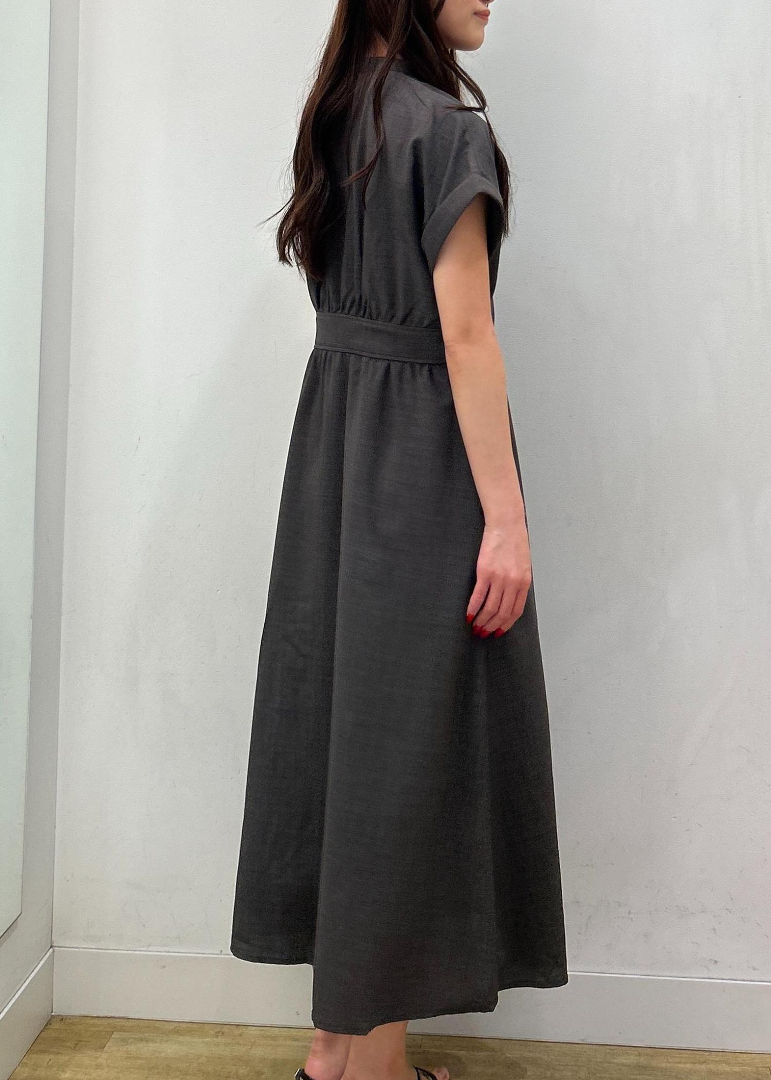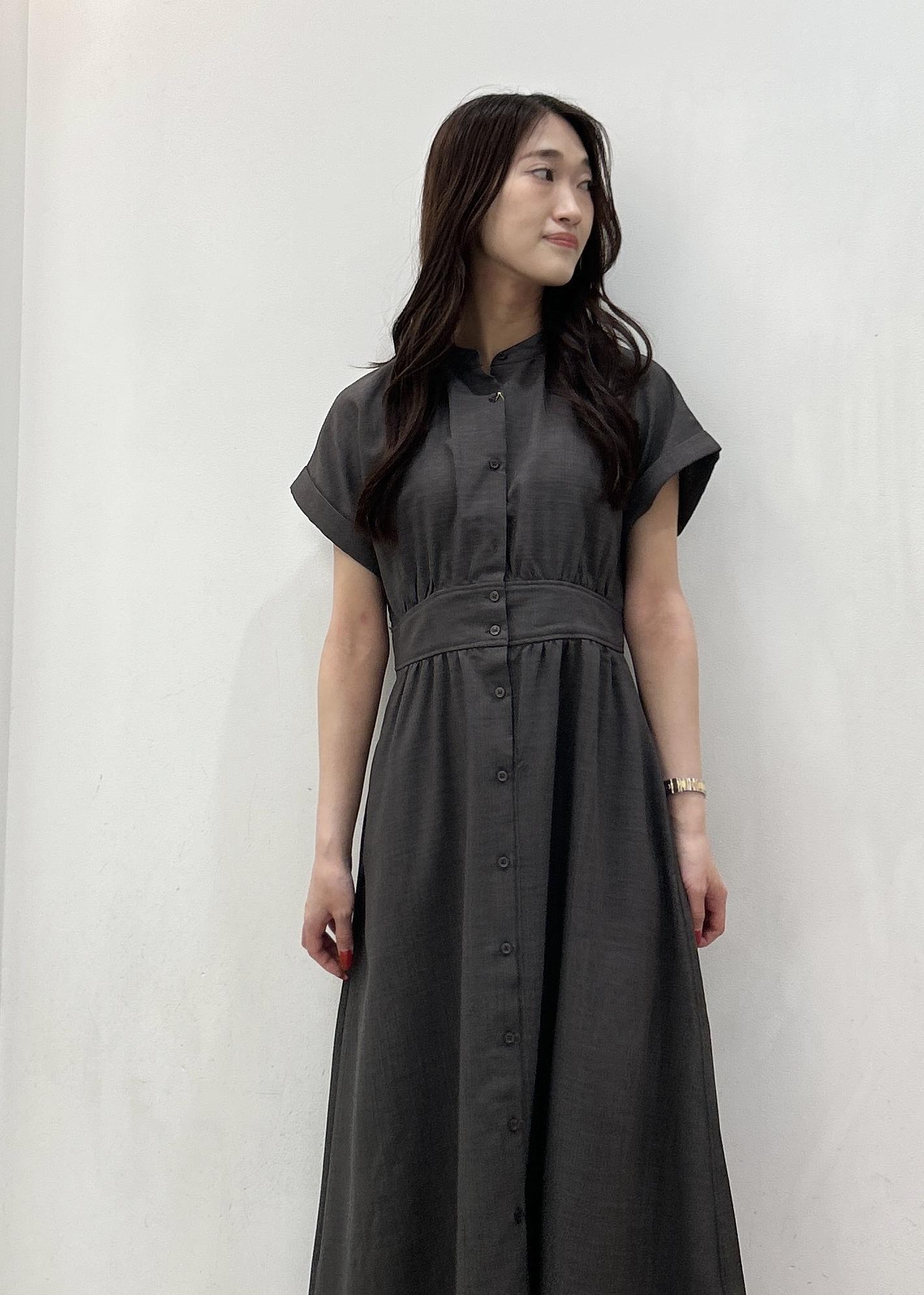 二の腕が隠れる袖感で着丈は長めで足首が見えます。