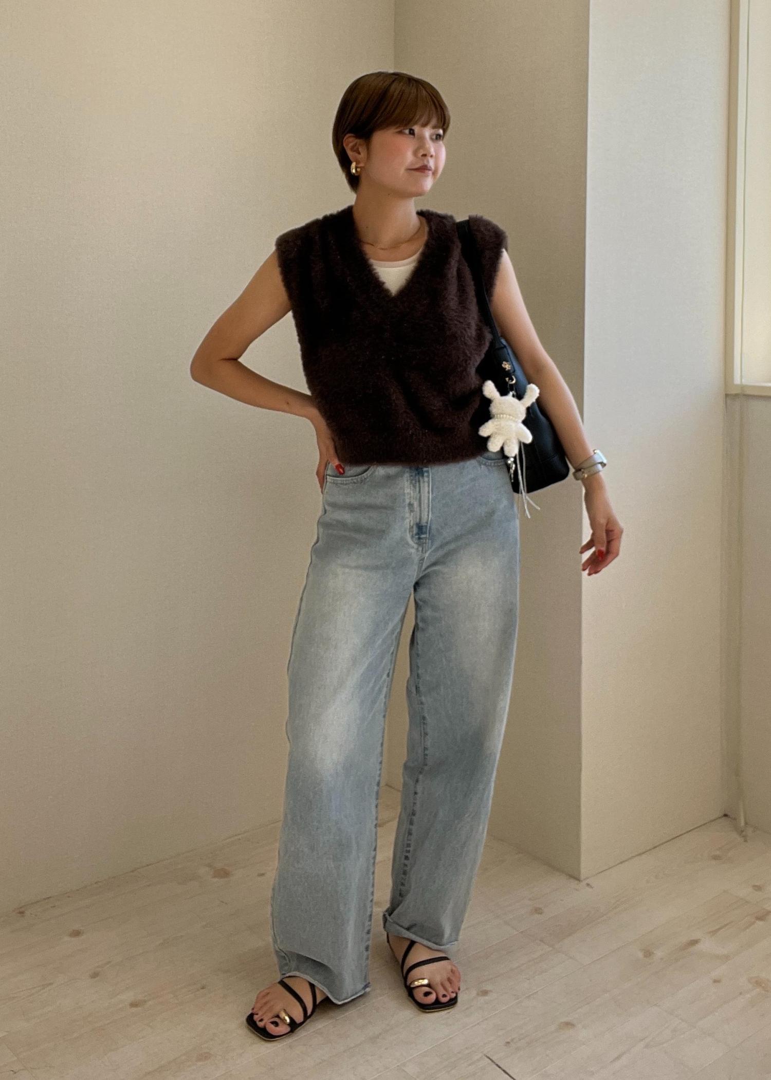 【フェザーニットベストコーデ】