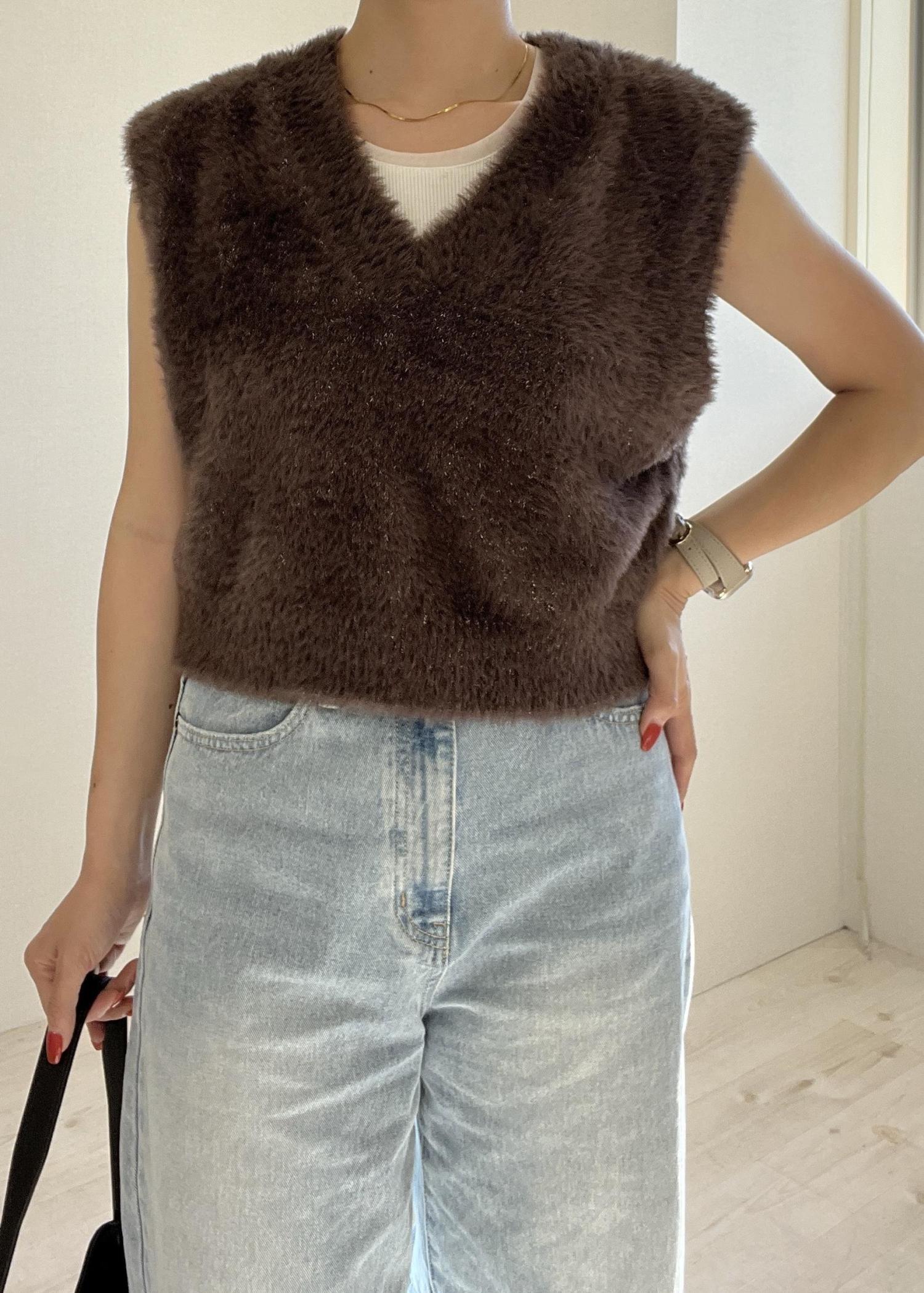 ROPÉ PICNICショートフェザーニットベストダークブラウン / F¥3,993レビュー柔らかな素材感で伸縮性のある素材。