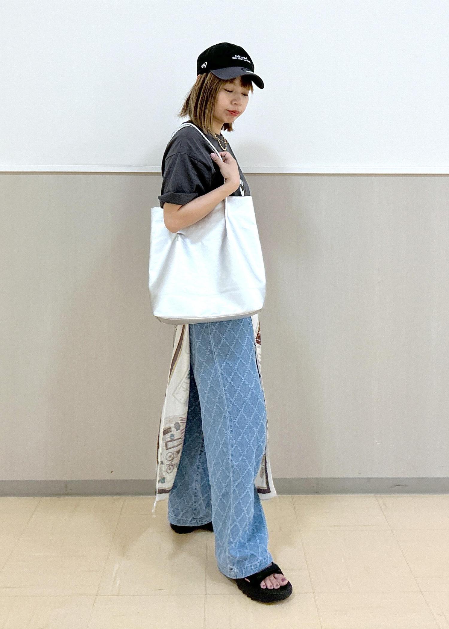 Tシャツ×デニムの定番スタイルですが、一つ一つ個性あるアイテムをチョイスして存在感あるスタイリングに!