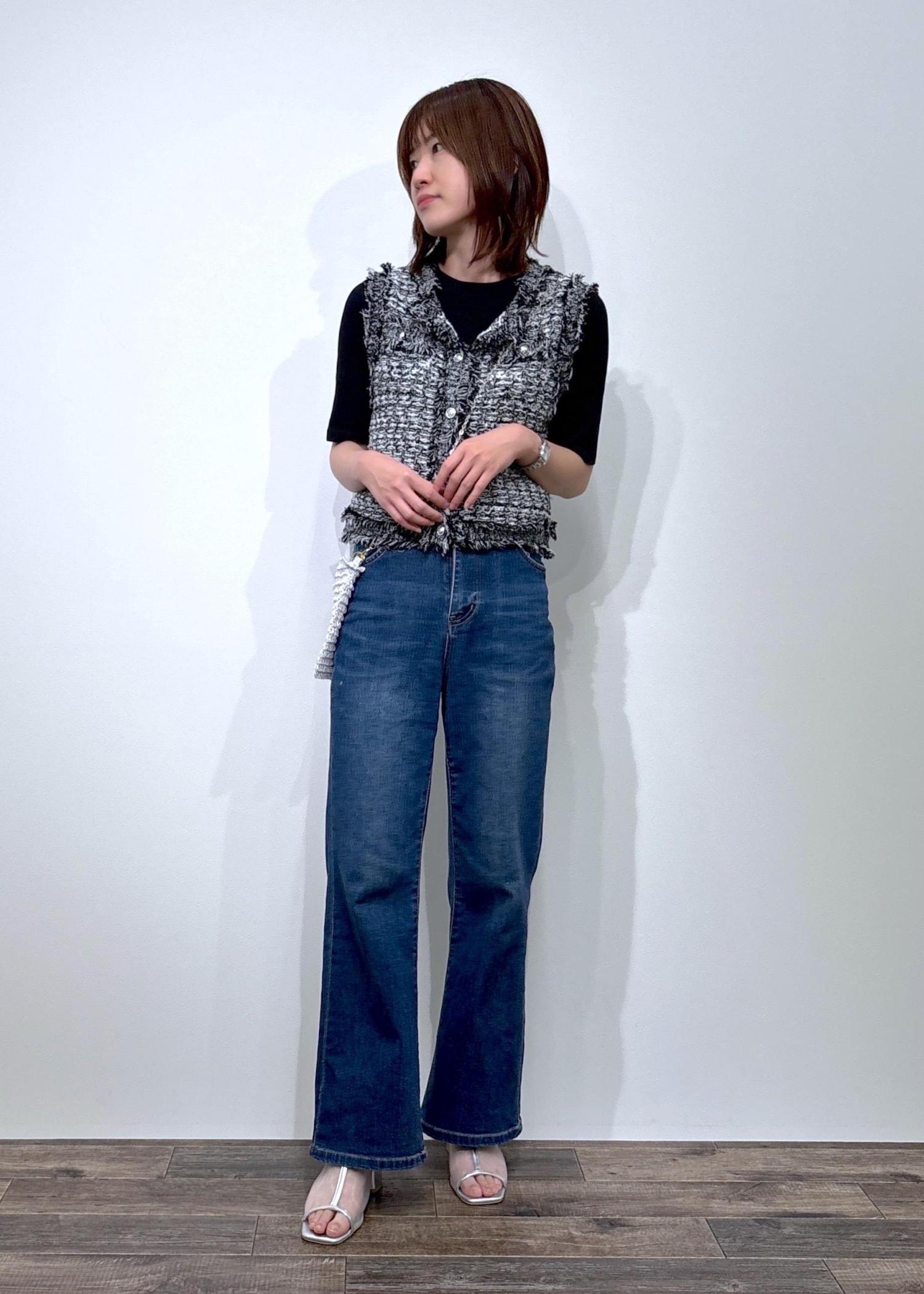 取り入れるだけで着映えするツイードを取り入れたスタイリング。