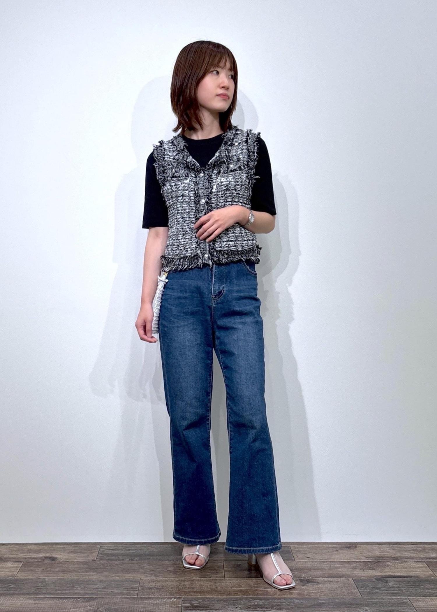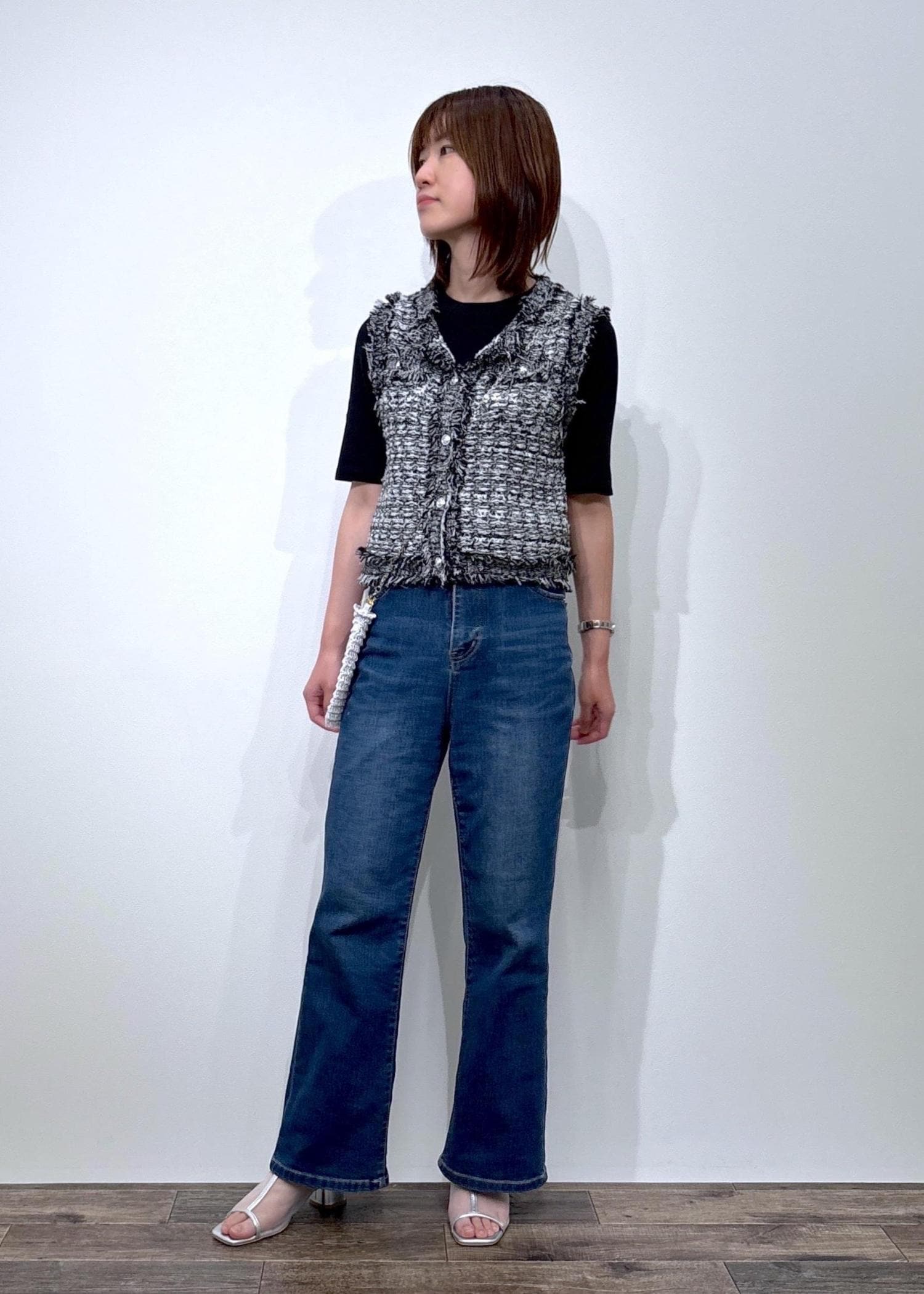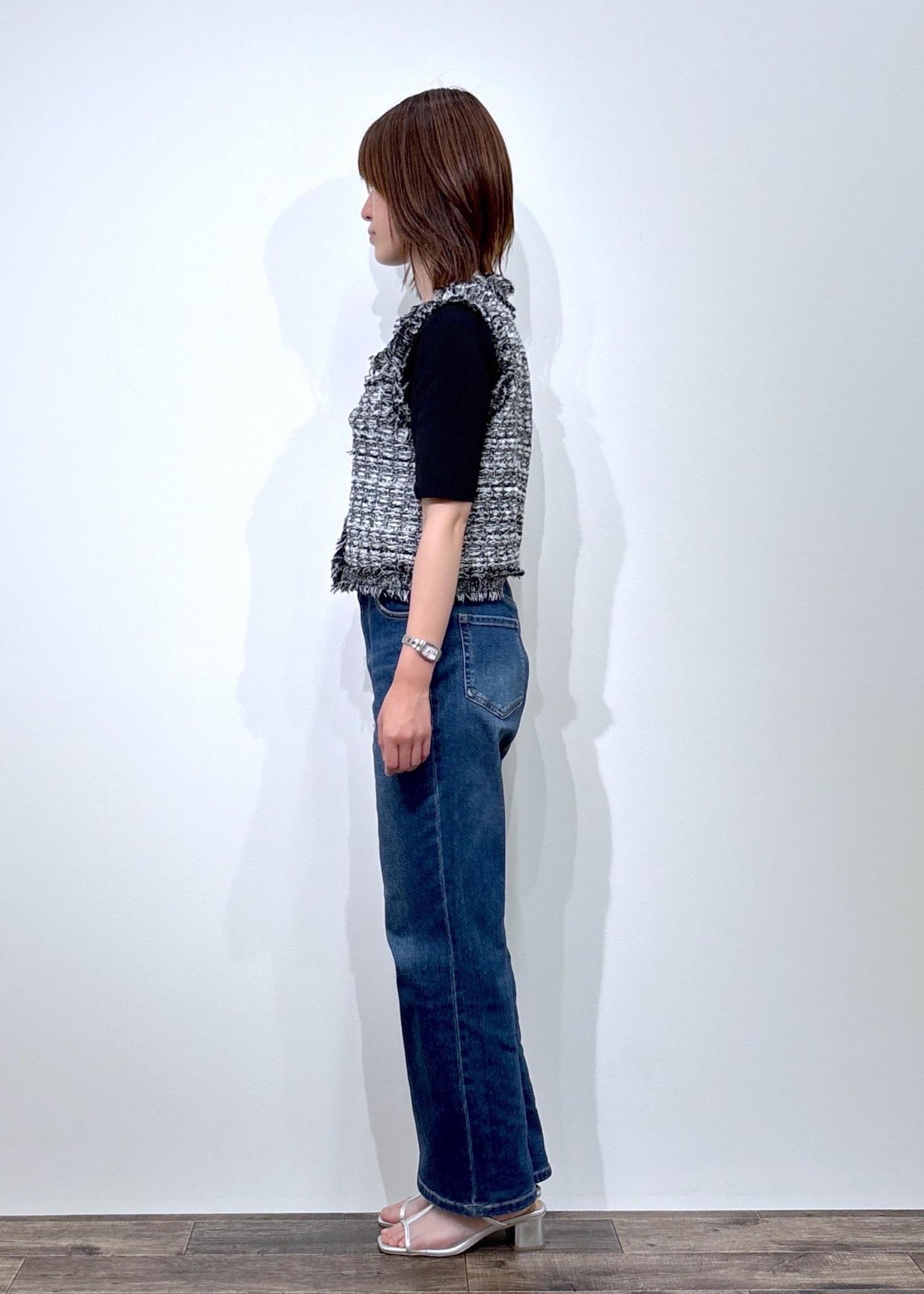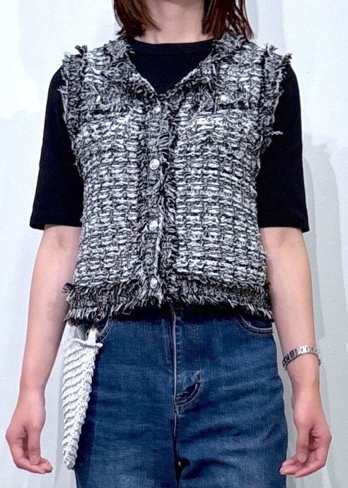 【WEB限定カラー】【サマー・ツイード】着丈が選べるジレベスト/スリーブレスカーディガン