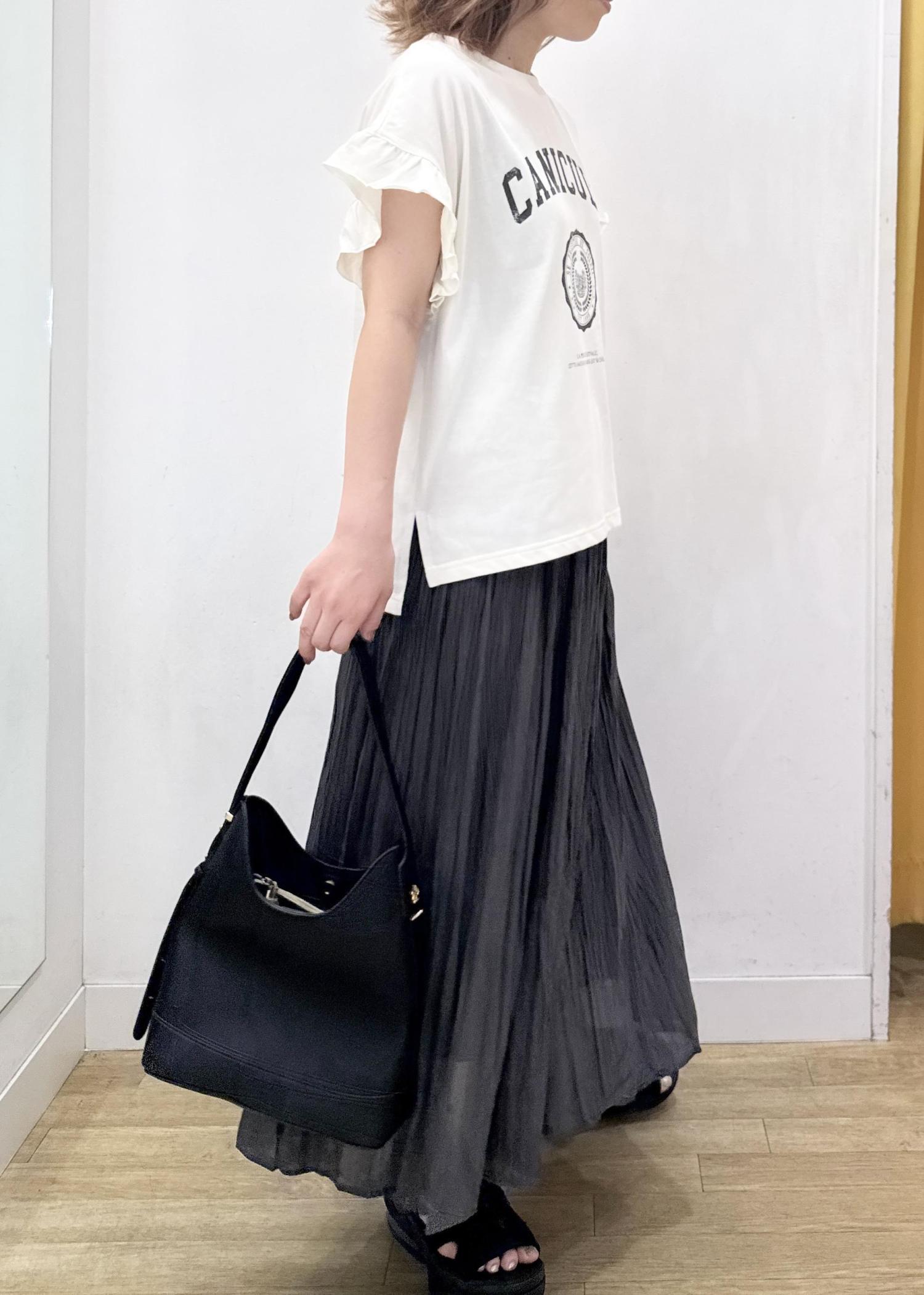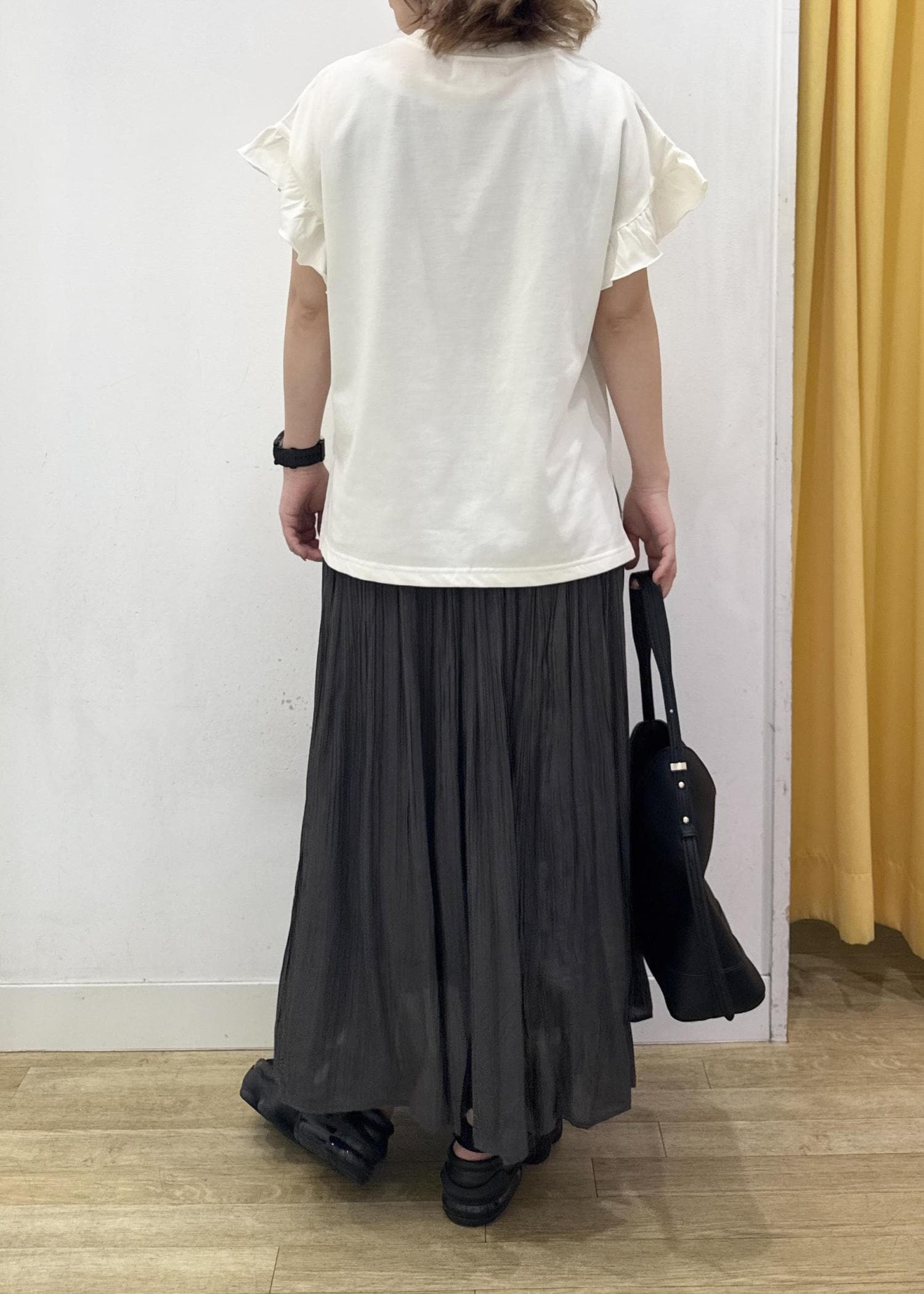 袖フリルデザインのTシャツがコーディネートのポイントに☺︎