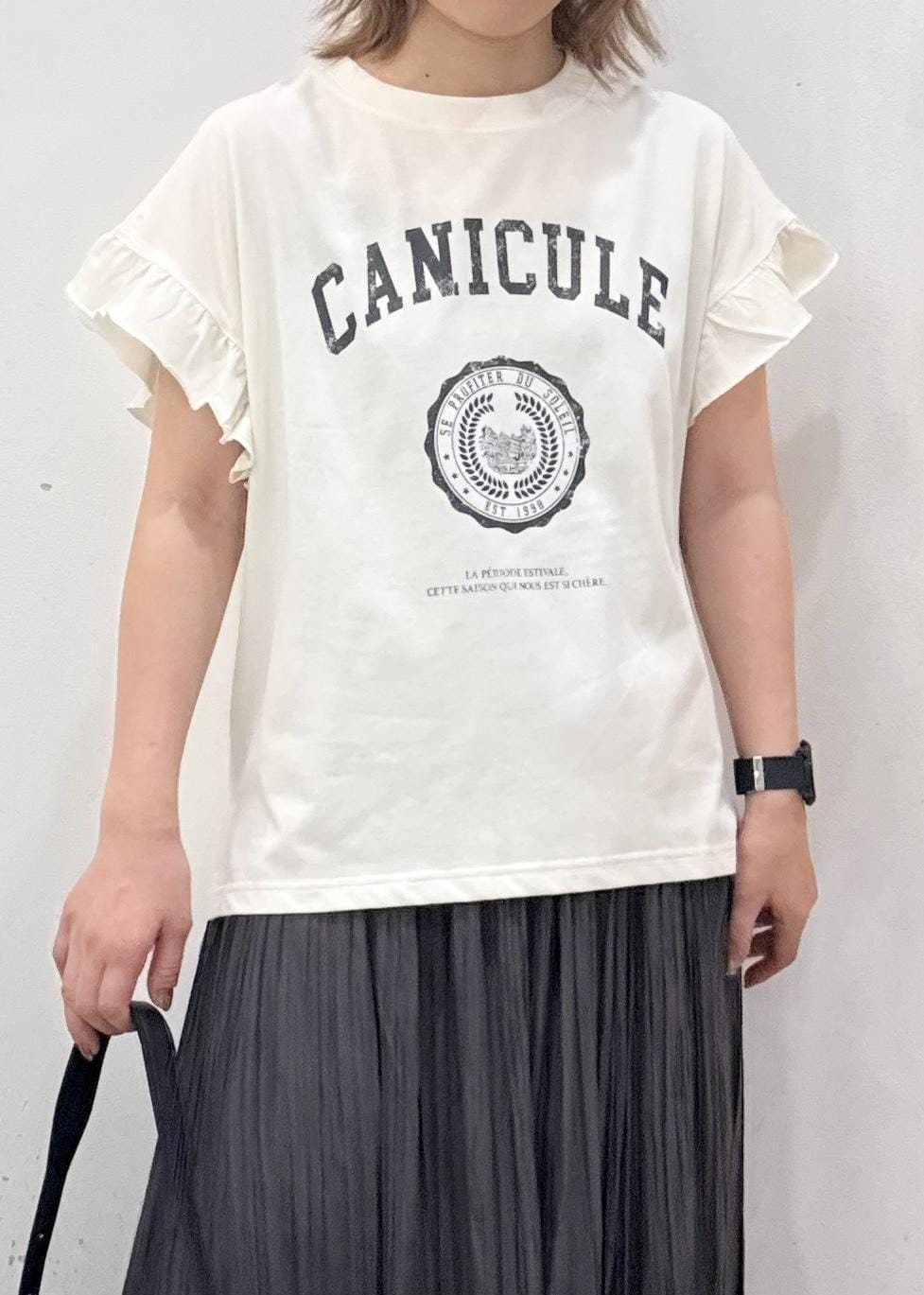 ロゴTシャツはシンプルでカジュアルになりがちですが、お袖のフリルデザインが可愛さをプラスしてくれるので1枚でオシャレに