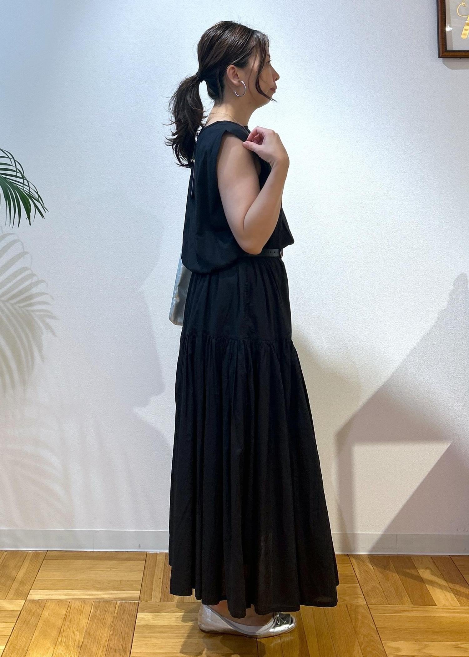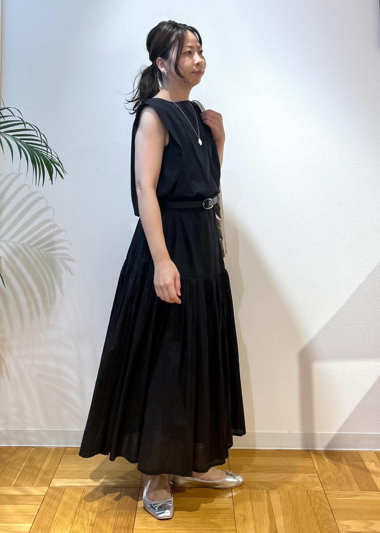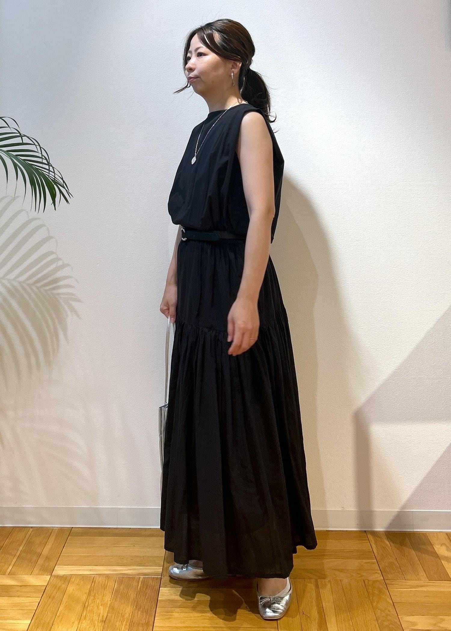 綿素材なのでさらっとしてて肌に優しさを感じます。ウエストに紐がついているので調節可能です。上半身のシルエットが肩のところにタックが入っていることでゆったりとした感じでした。丈はくるぶしくらいの丁度いい長さでした。