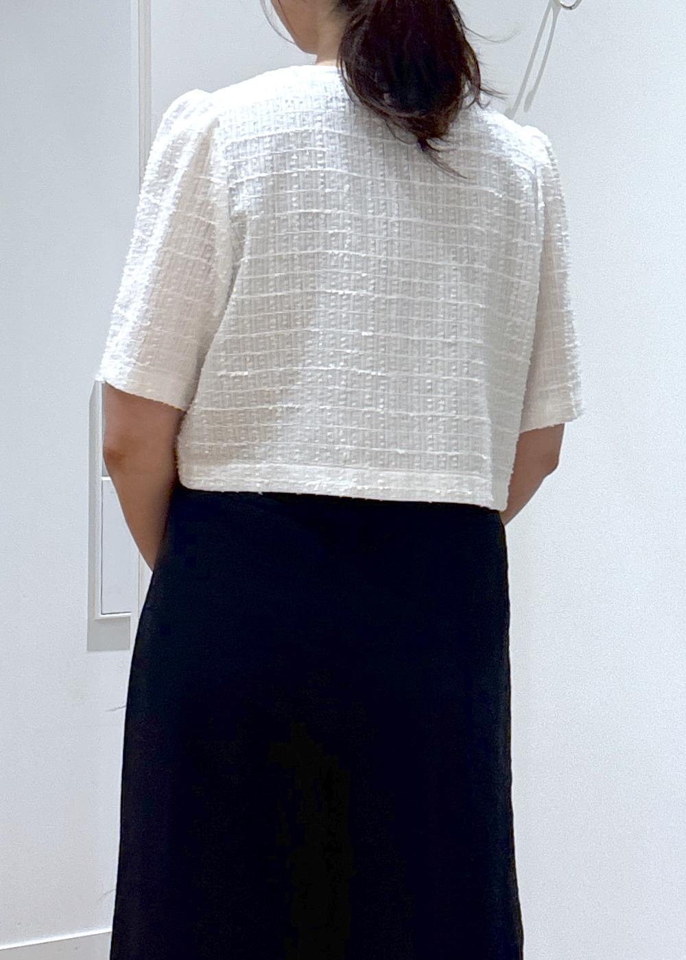コンパクトなシルエットと肩のギャザーが可愛いデザインです。カジュアルにもきちんとしても着用できるので、色々なシーンで着ていただけます。